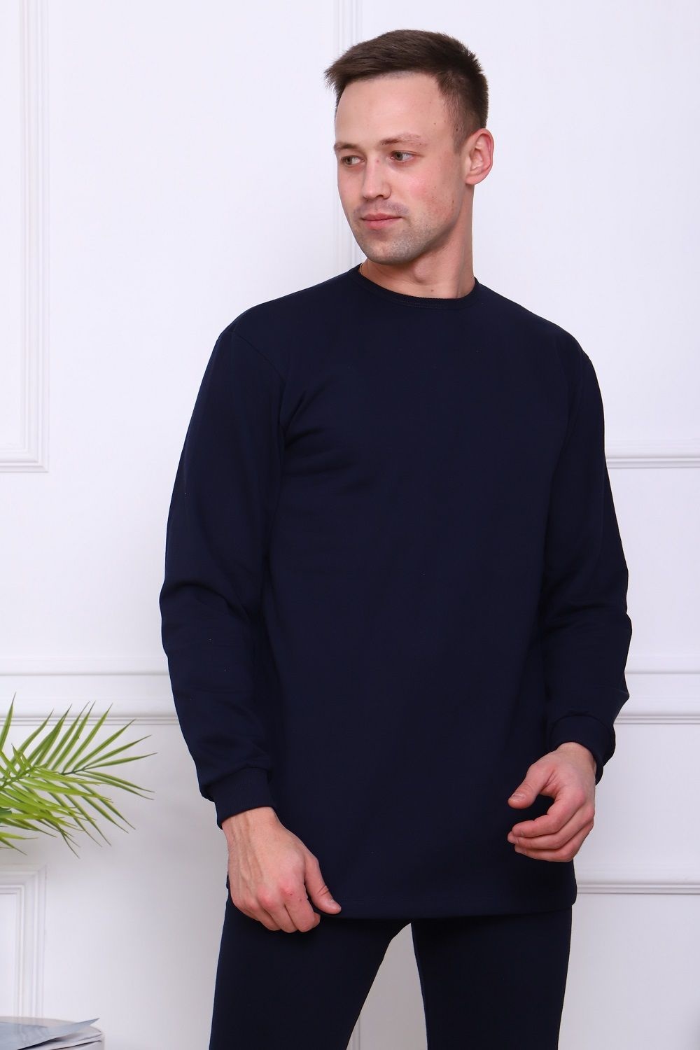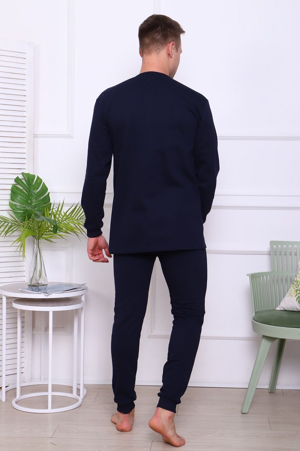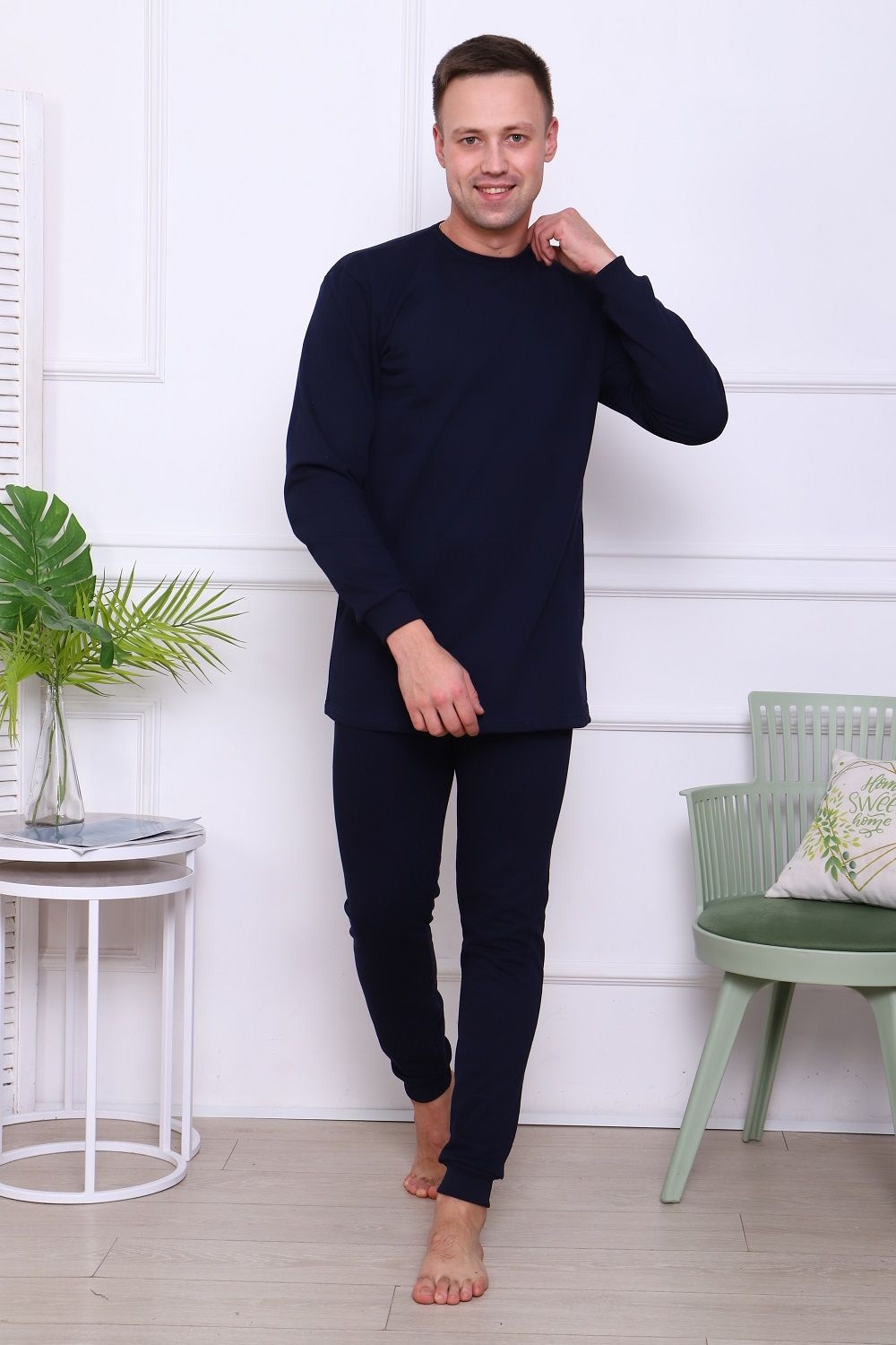 Костюм мужской домашний теплый. Футболка с длинным рукавом и штаны на эластичном поясе, с манжетами. Комфортный и уютный, из 100% хлопка, начёс на изнаночной стороне.