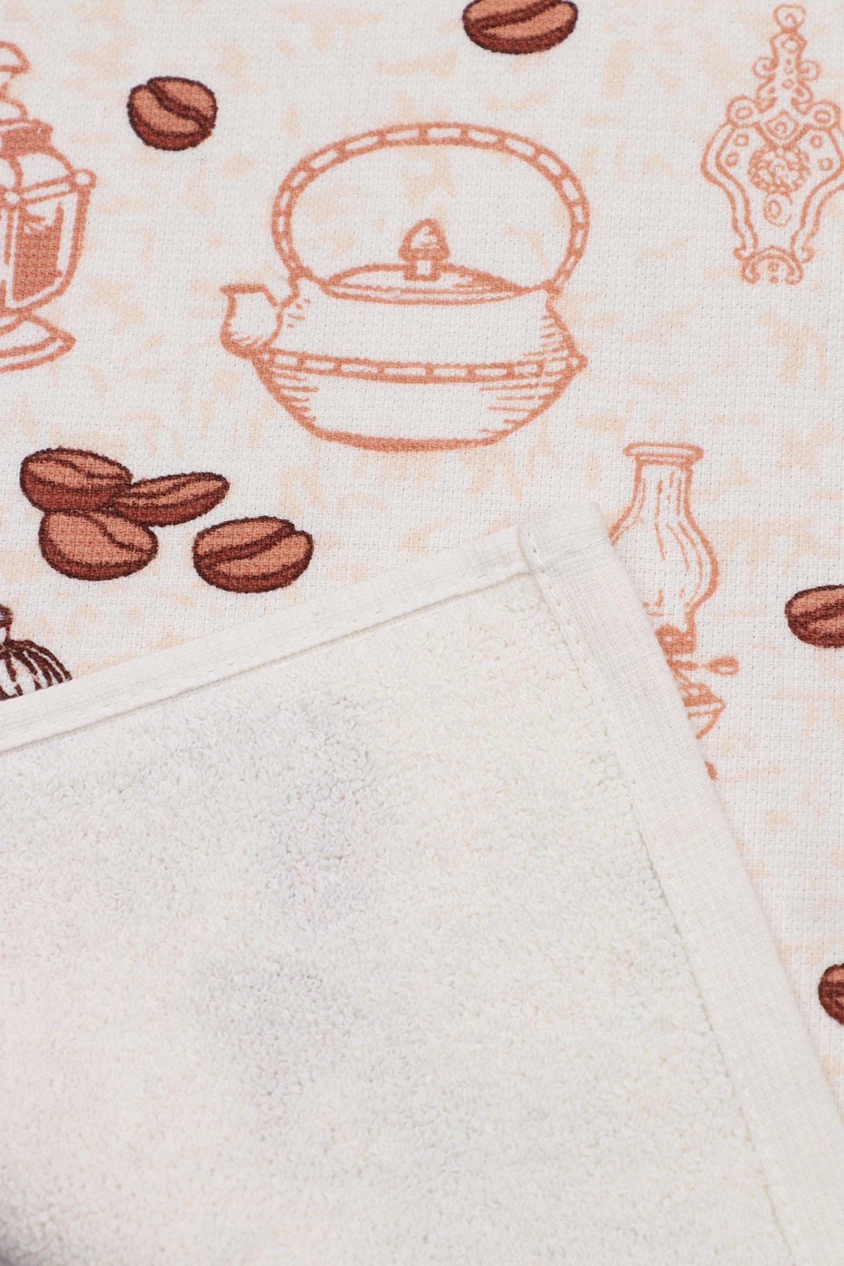 Полотенце из хлопка с одной стороны гладкое с рисунком, с другой - махровое без рисунка. Махровая ткань хорошо впитывает влагу и приятна к телу. Размер полотенца идеально подойдёт для вытирания рук и лица.
