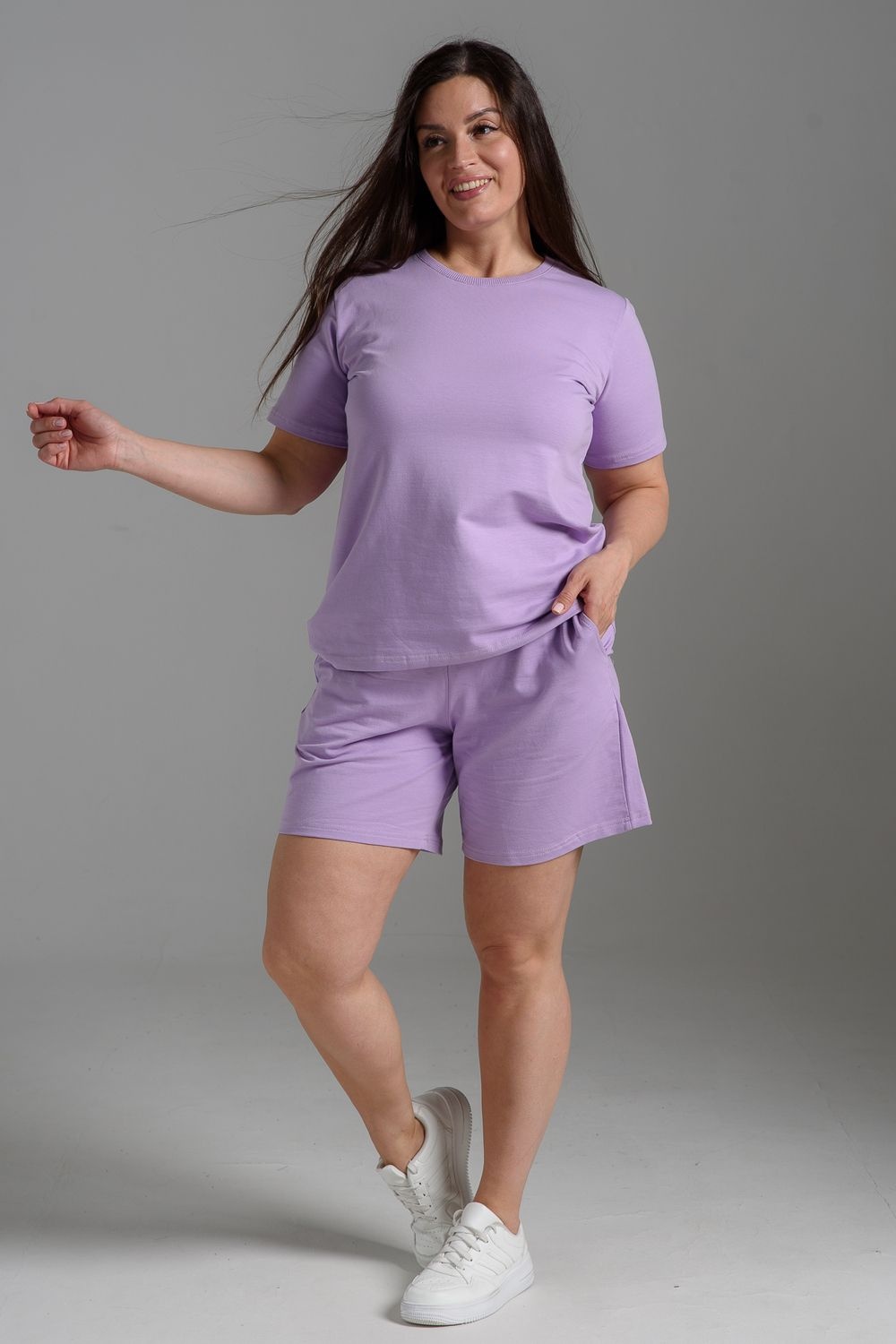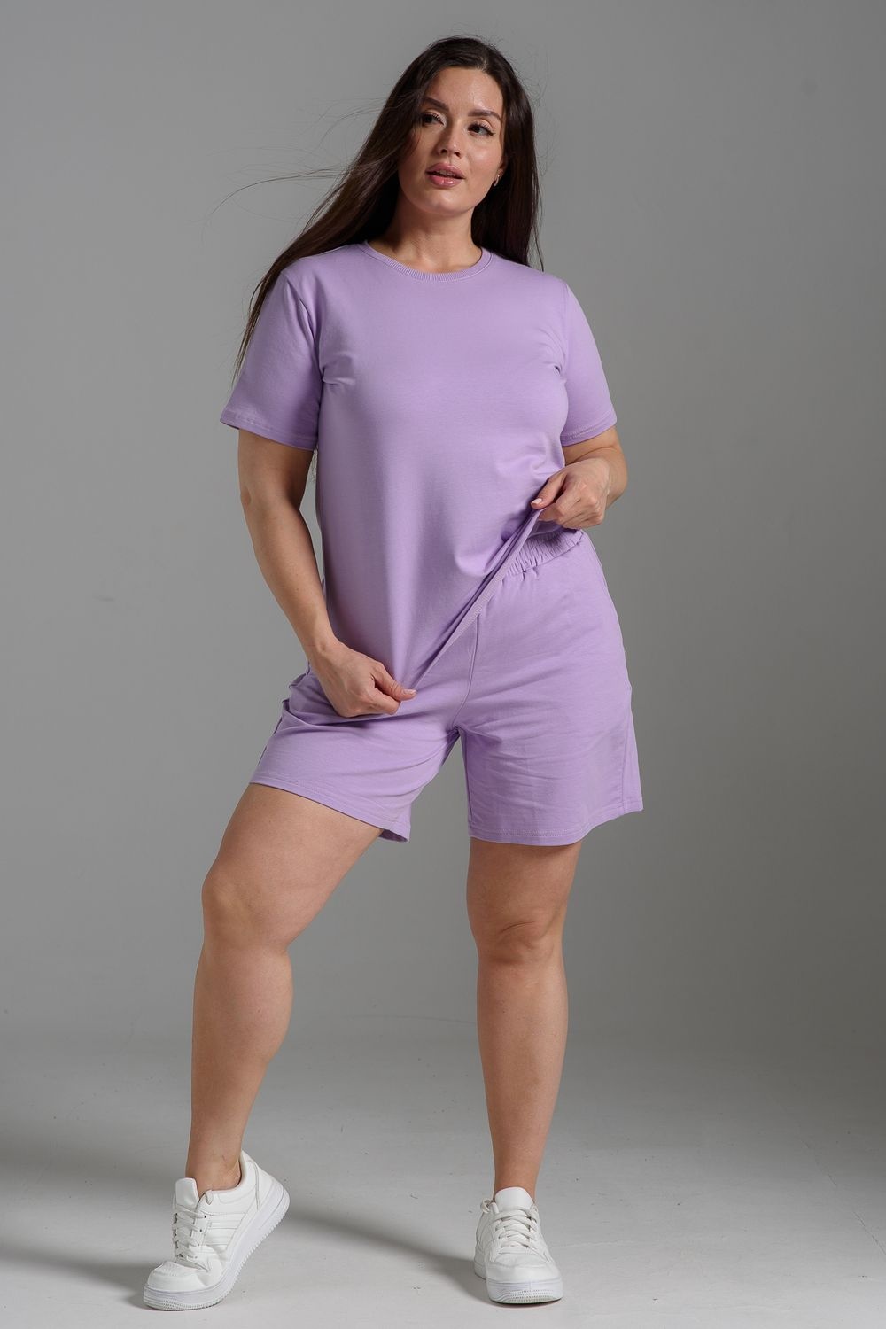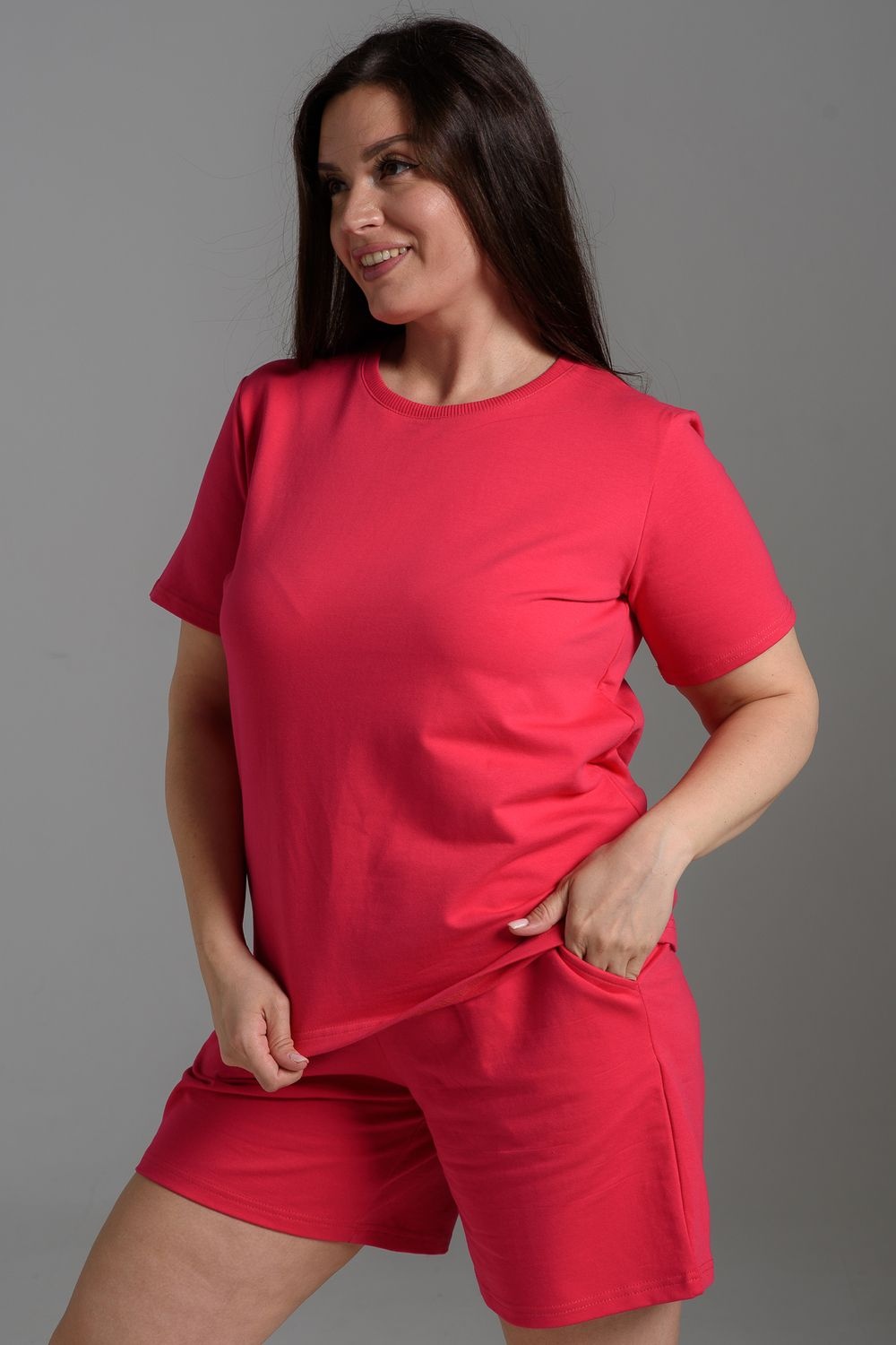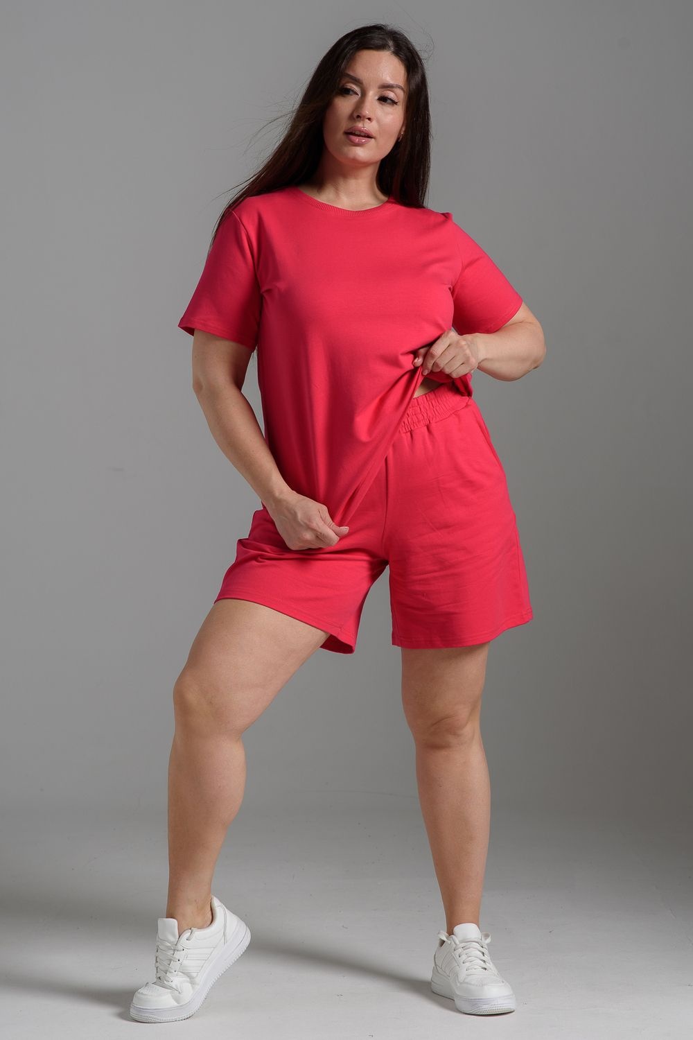 Женский летний костюм из футера 2-х нитки – комфорт, лёгкость и стиль каждый день! Оцените идеальное сочетание уюта и трендов с нашим костюмом двойкой от бренда НАТАЛИ! В комплект входит свободная футболка оверсайз и шорты с боковыми карманами – универсальный фасон для дома, прогулок, спорта и отдыха. Модель подойдёт для девушек любого роста и комплекции, включая подростков и plus size.