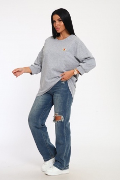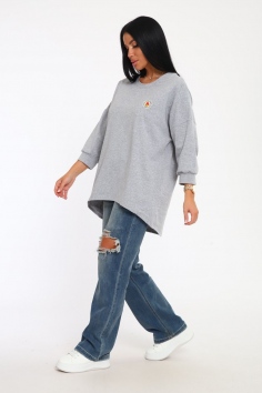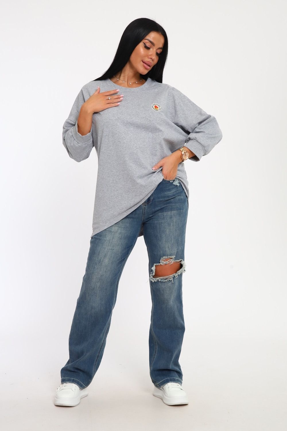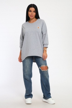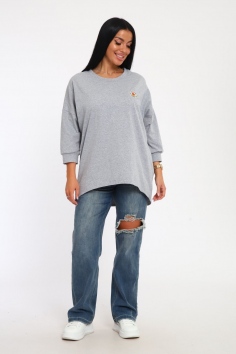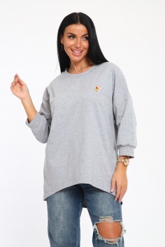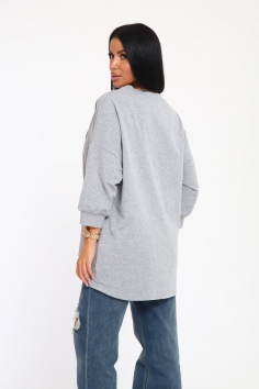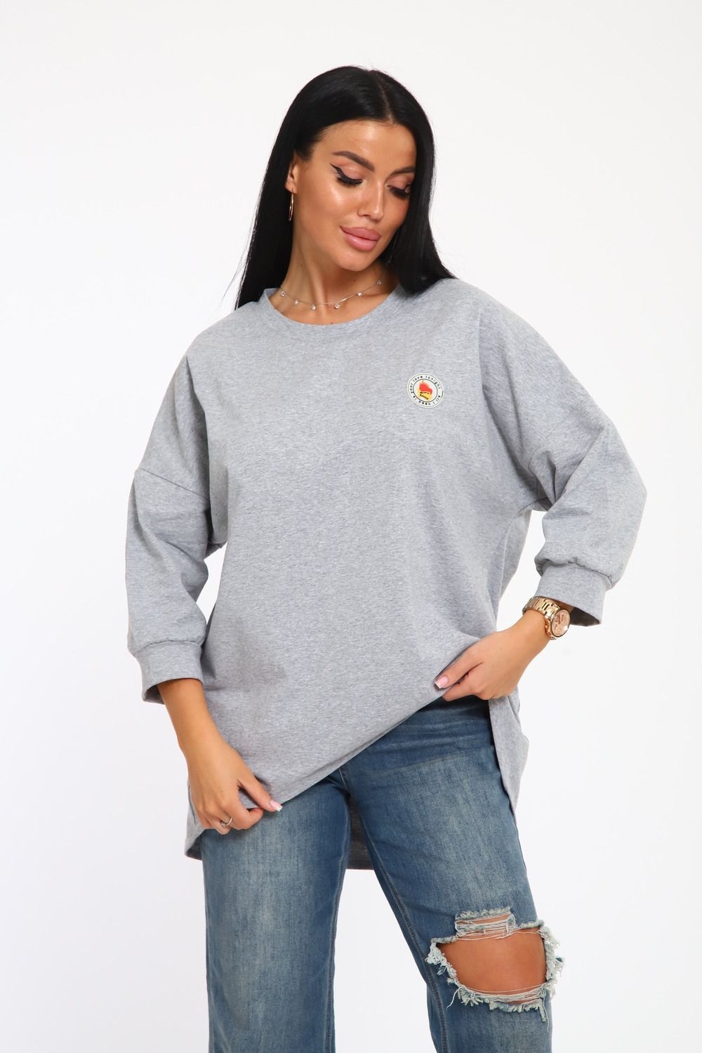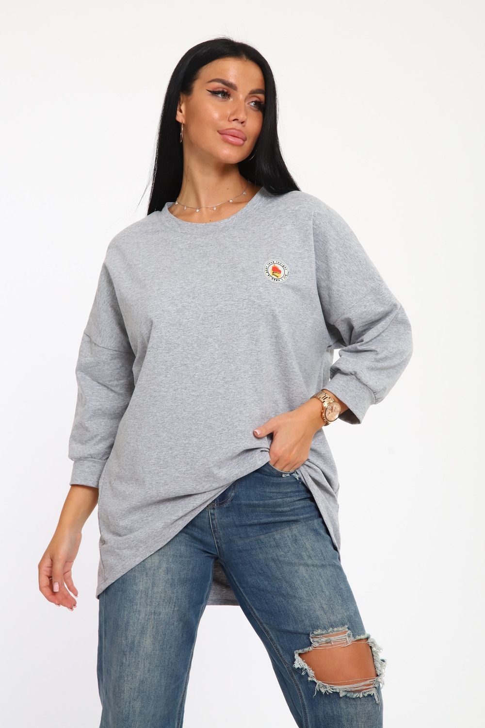 Джемпер удлиненный с лейблом - серый,белый №Н-24414