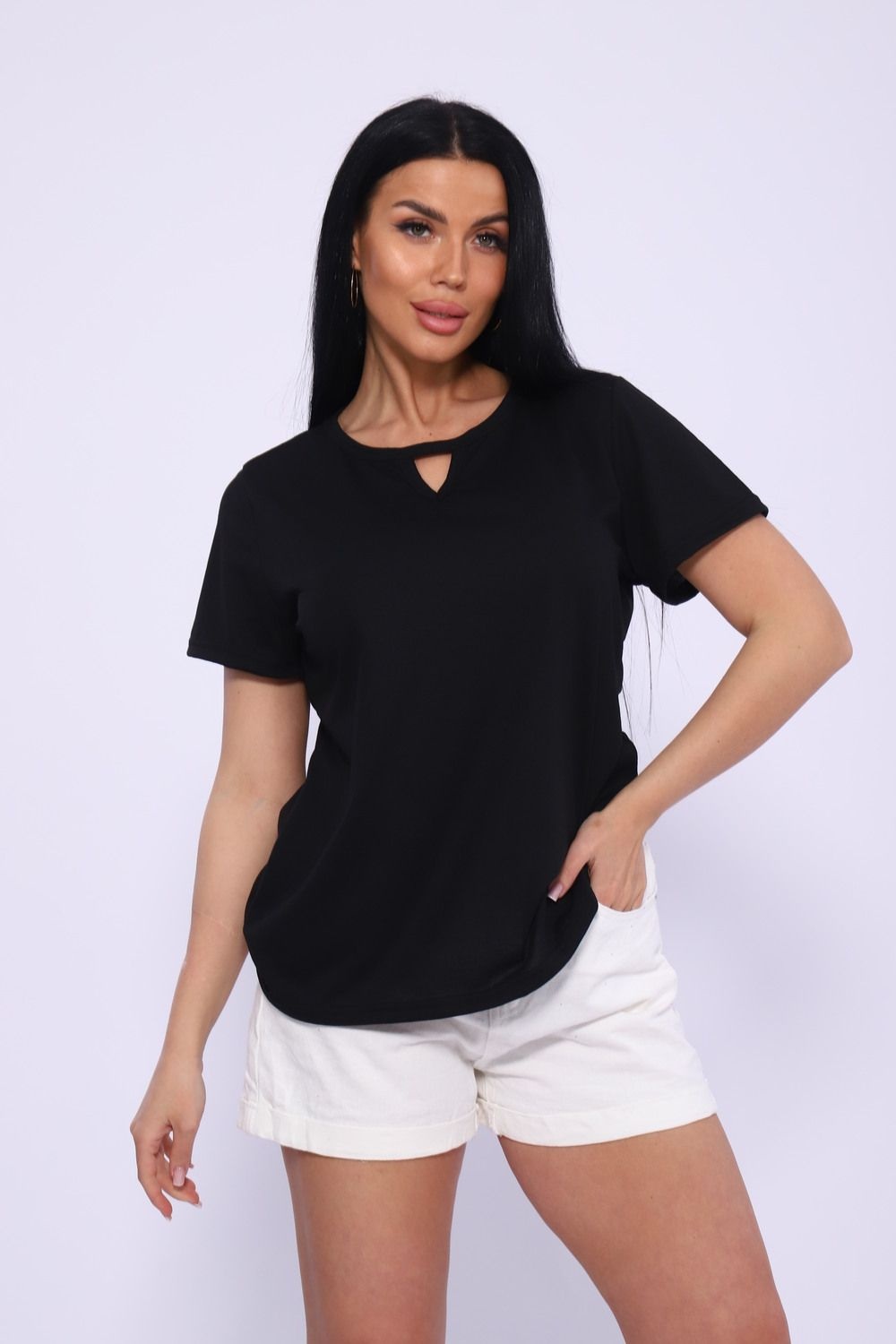 Легкая и удобная женская хлопковая футболка. Округлая горловина, небольшой декоративный вырез.