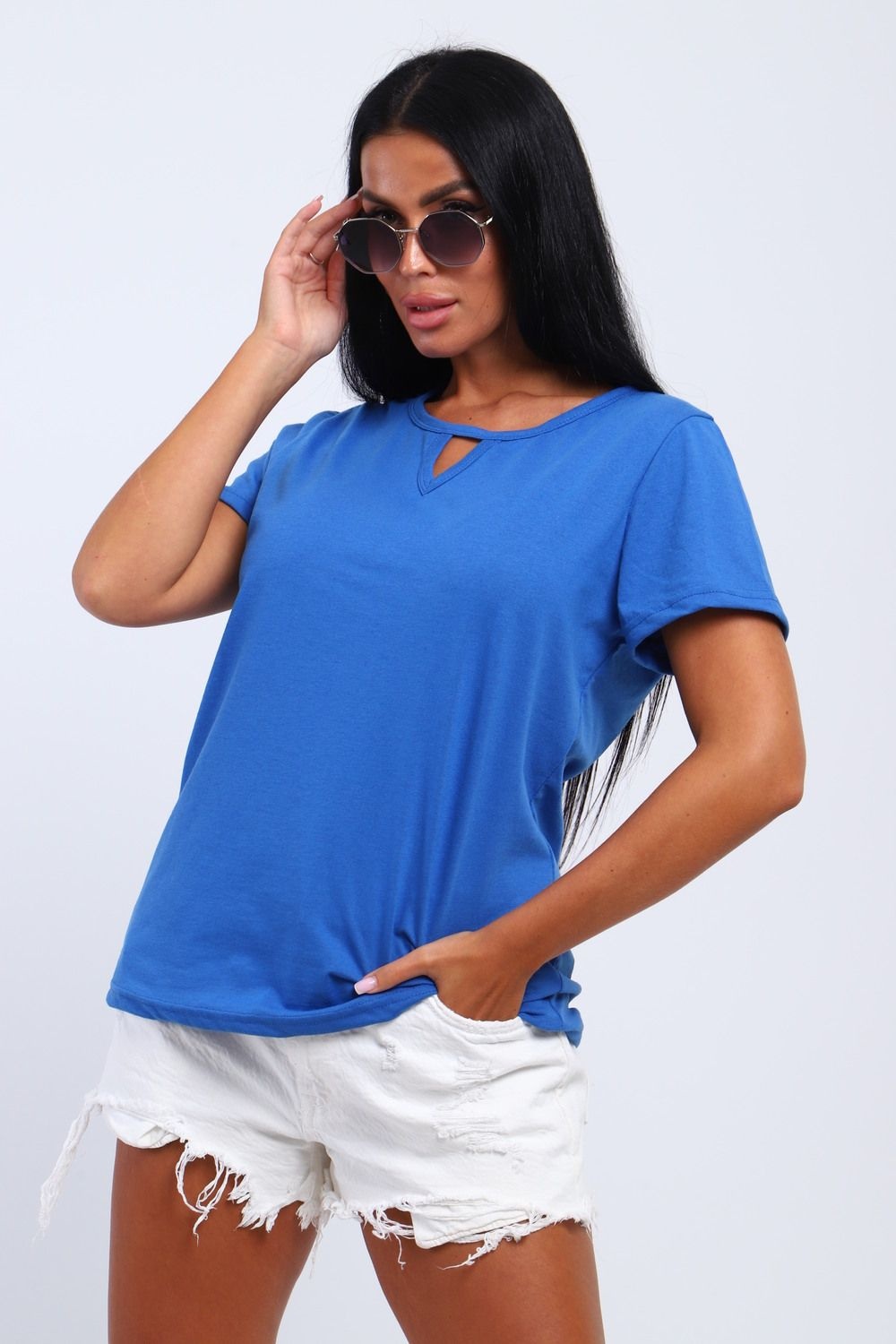 Легкая и удобная женская хлопковая футболка. Округлая горловина, небольшой декоративный вырез.