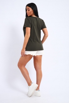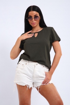 Легкая и удобная женская хлопковая футболка. Округлая горловина, небольшой декоративный вырез.