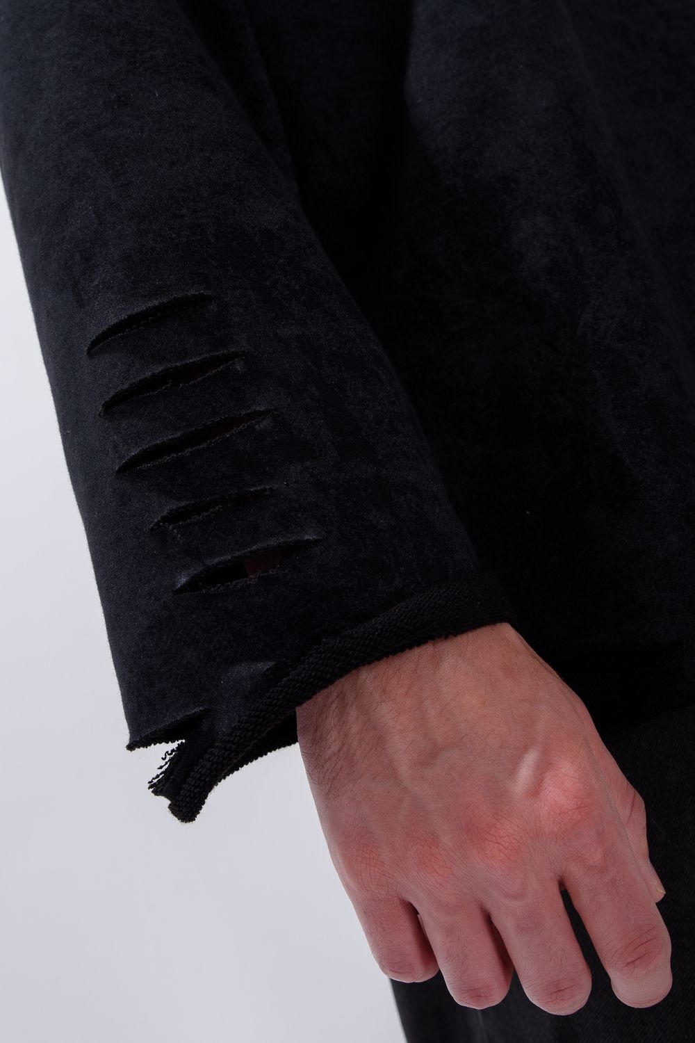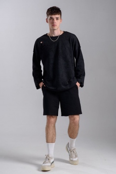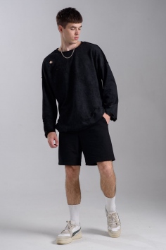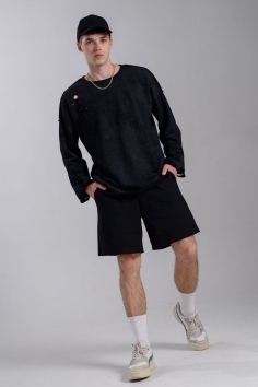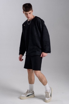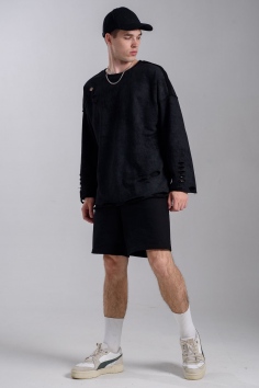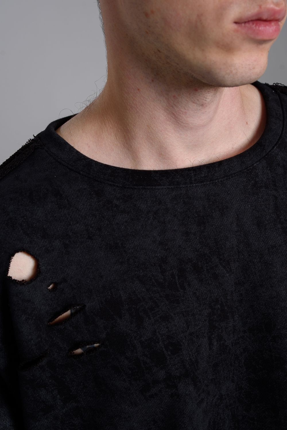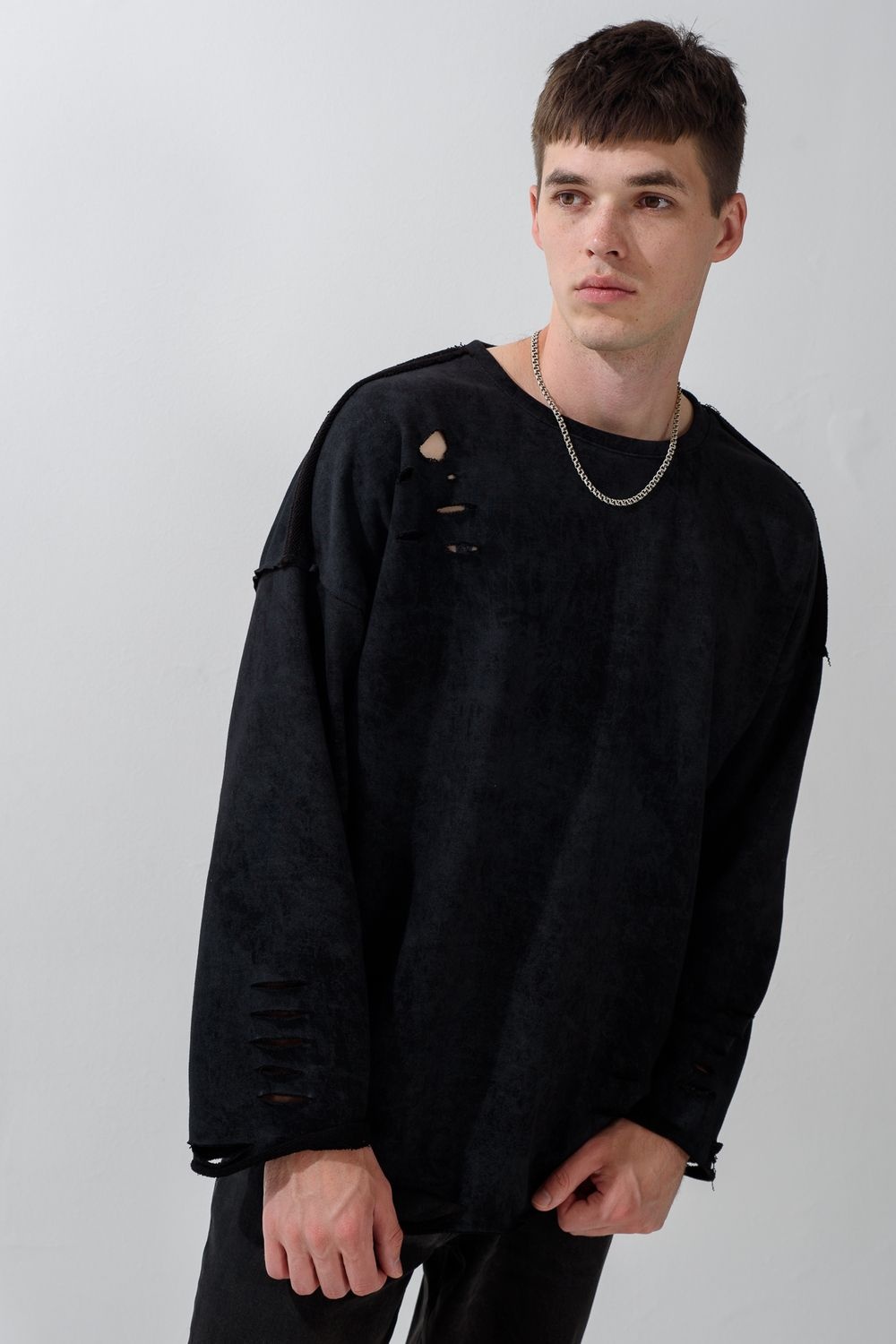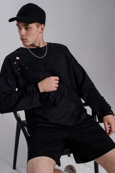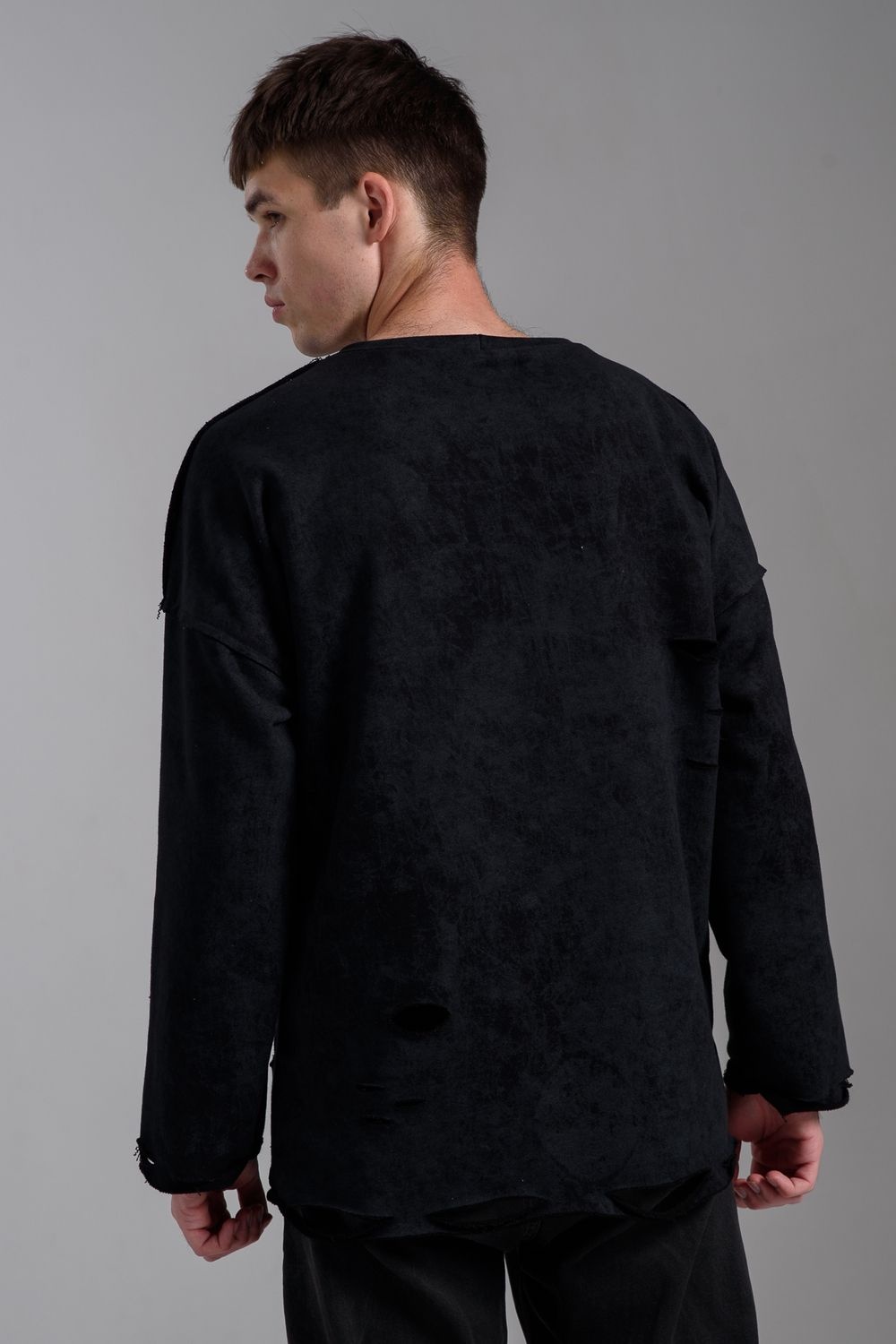 Стильный мужской свитшот в современном дизайне станет отличным дополнением к вашему гардеробу. Изготовлен из мягкого трикотажа, обеспечивает комфорт и тепло прохладными летними вечерами и осенью. Отличается характерной рваной текстурой, что придает ему необычный и оригинальный вид. Легко сочетать с другими элементами одежды. Конструкция рваного свитшота с широкими спущенными плечами и свободным кроем создает расслабленный оверсайз силуэт, что идеально подходит для кэжуал образов. Вырез горловины выполнен в классическом стиле, добавляя простоты и элегантности. Детали дизайна включают в себя необычные прорези, которые подчеркивают гранжевую эстетику. Прекрасно подойдет как для мужчин, так и для женщин, благодаря своему унисекс крою. Также будет уместен в молодежной моде и станет отличным вариантом для создания парных образов.