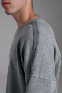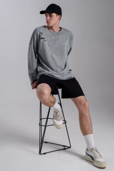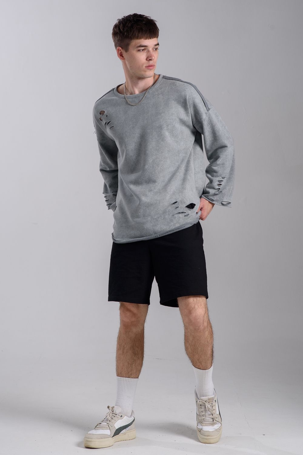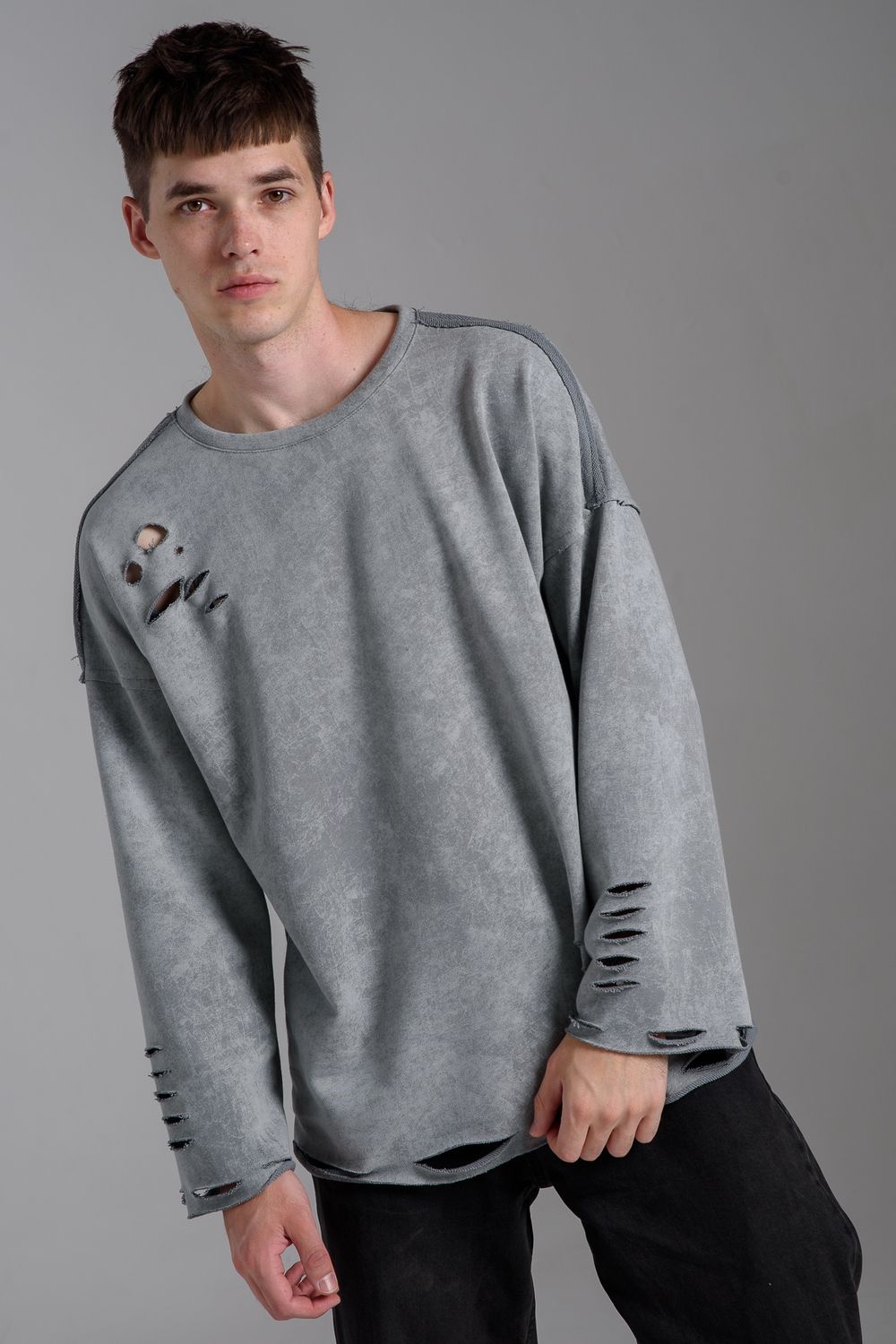 Стильный мужской свитшот в современном дизайне станет отличным дополнением к вашему гардеробу. Изготовлен из мягкого трикотажа, обеспечивает комфорт и тепло прохладными летними вечерами и осенью. Отличается характерной рваной текстурой, что придает ему необычный и оригинальный вид. Легко сочетать с другими элементами одежды. Конструкция рваного свитшота с широкими спущенными плечами и свободным кроем создает расслабленный оверсайз силуэт, что идеально подходит для кэжуал образов. Вырез горловины выполнен в классическом стиле, добавляя простоты и элегантности. Детали дизайна включают в себя необычные прорези, которые подчеркивают гранжевую эстетику. Прекрасно подойдет как для мужчин, так и для женщин, благодаря своему унисекс крою. Также будет уместен в молодежной моде и станет отличным вариантом для создания парных образов.
