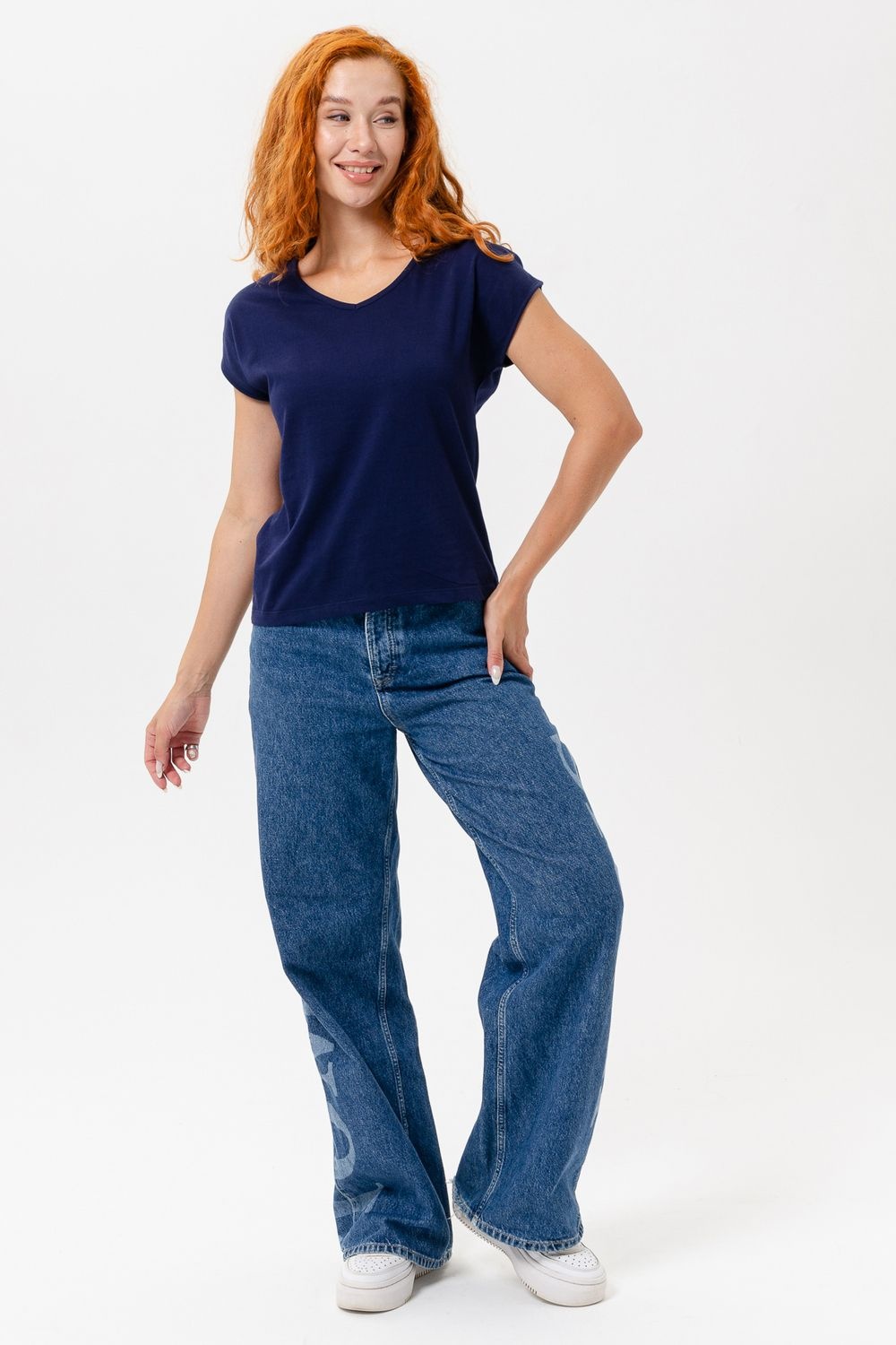 7158-1 однотон футболка женская - темно-синий №Н-71581