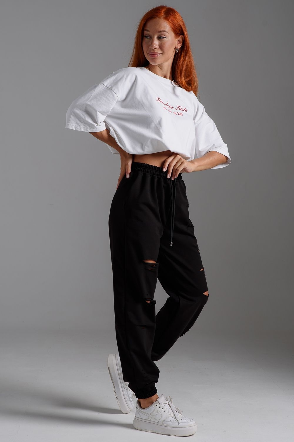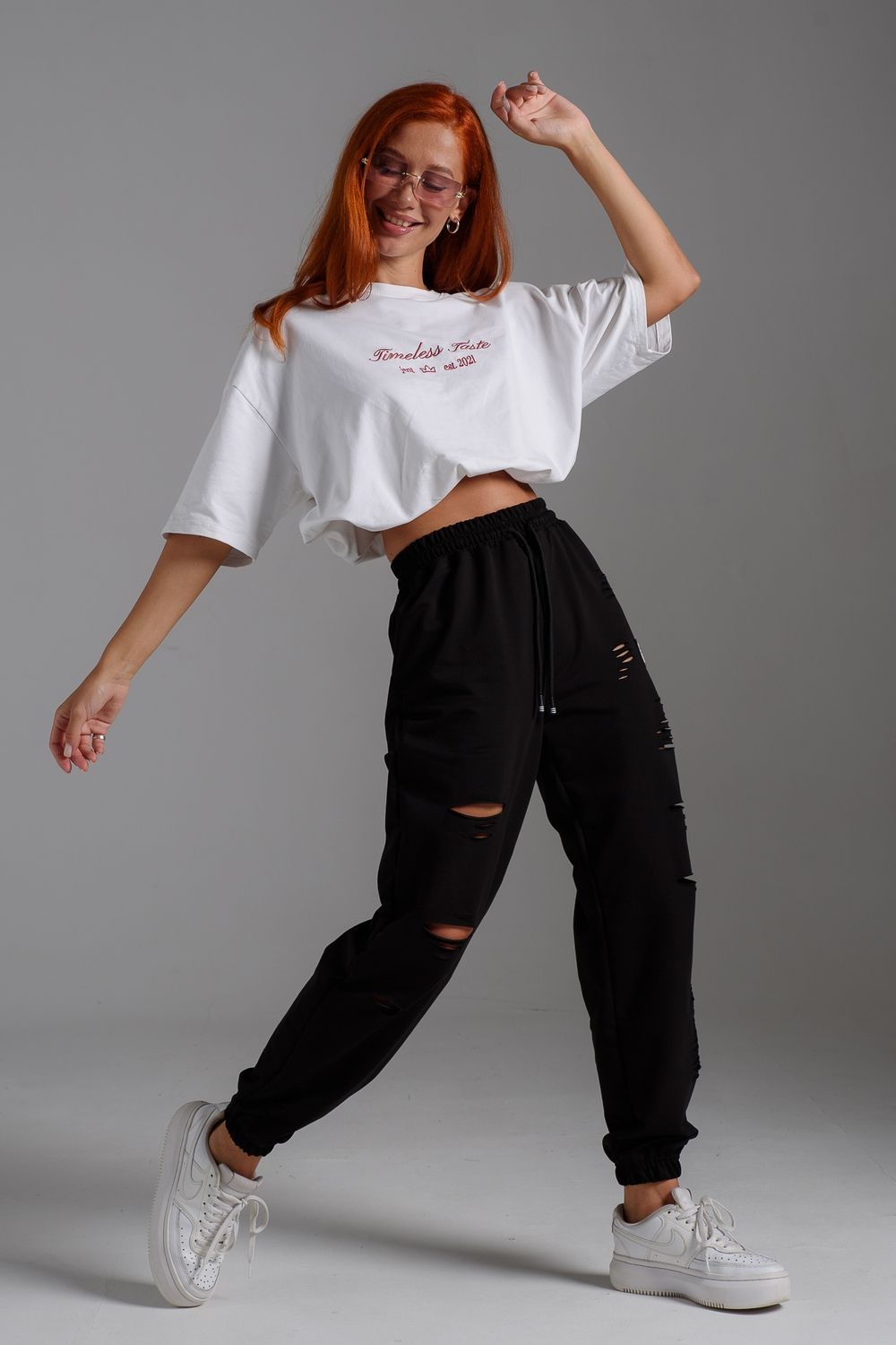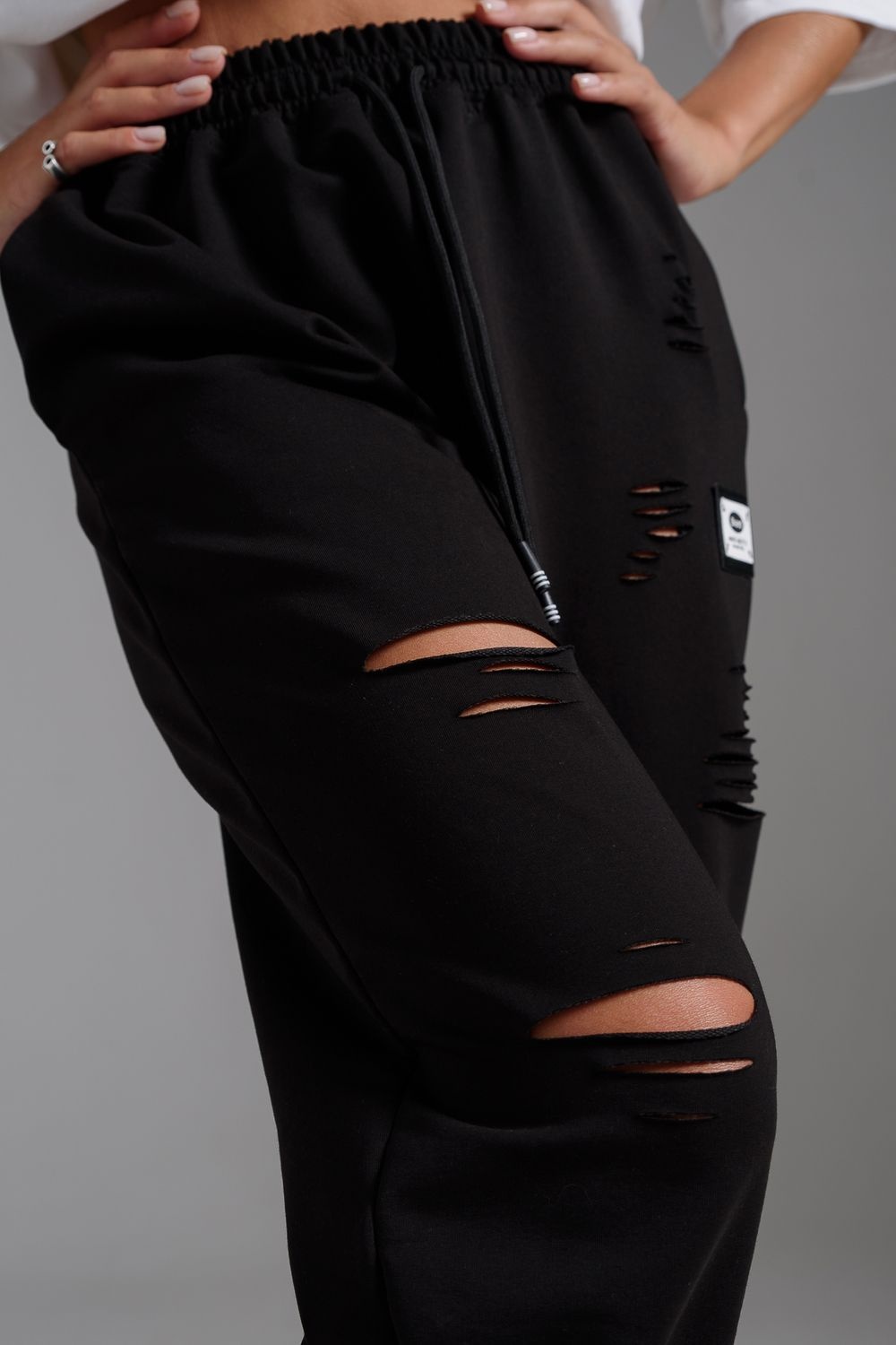 Стильные женские спортивные штаны с прорезями в уличном стиле. Штаны на резинке с комфортной посадкой созданы для ярких девушек, ценящих удобство и моду. Идеально подходят для прогулок, дома и активного отдыха. Легкие трикотажные джоггеры с карманами — тренд сезона. Рваные детали добавляют дерзости образу, а свободный крой гарантирует комфорт на каждый день. Багги, карго, бананы и слоучи — все, что нужно для модного гардероба! Оверсайз штаны на резинке с манжетами идеально подойдут как для подростков, так и для женщин высокого и невысокого роста. Создай модный лук с хлопковыми кэжуал брюками. Необычные широкие дырявые джоггры с высокой талией подчеркнут твою индивидуальность. Выбери casual штаны с гранж акцентами для танцев или фитнеса — будь всегда на пике тренда. Стильная спортивка с прорезями для девушек отличный выбор для демисезона и весенних прогулок. Почувствуй свободу движения!