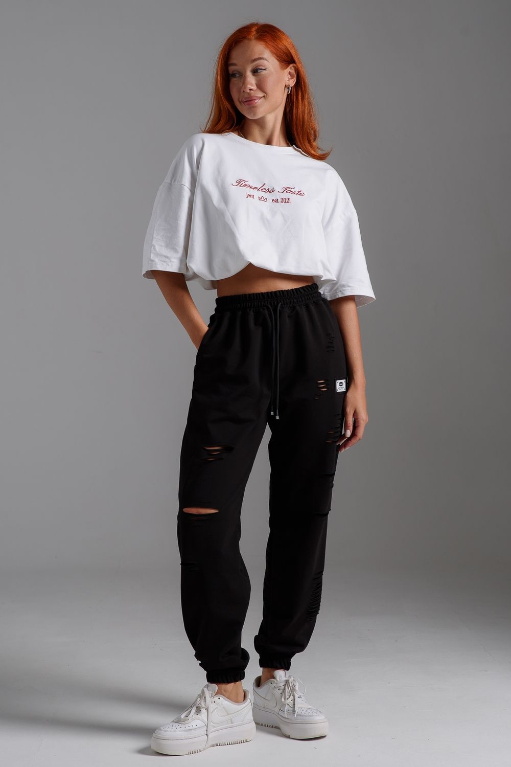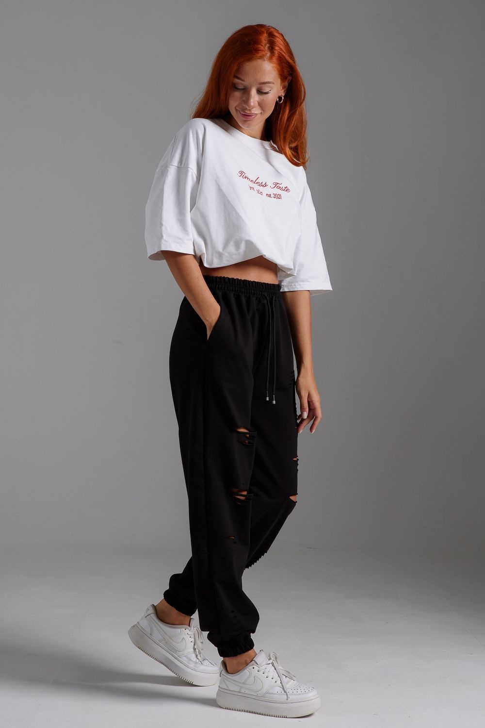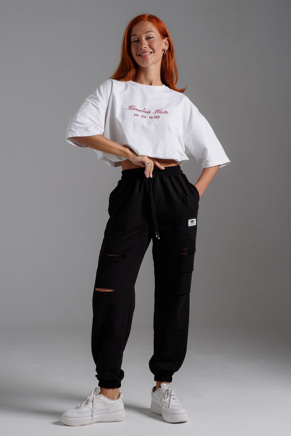 Стильные женские спортивные штаны с прорезями в уличном стиле. Штаны на резинке с комфортной посадкой созданы для ярких девушек, ценящих удобство и моду. Идеально подходят для прогулок, дома и активного отдыха. Легкие трикотажные джоггеры с карманами — тренд сезона. Рваные детали добавляют дерзости образу, а свободный крой гарантирует комфорт на каждый день. Багги, карго, бананы и слоучи — все, что нужно для модного гардероба! Оверсайз штаны на резинке с манжетами идеально подойдут как для подростков, так и для женщин высокого и невысокого роста. Создай модный лук с хлопковыми кэжуал брюками. Необычные широкие дырявые джоггры с высокой талией подчеркнут твою индивидуальность. Выбери casual штаны с гранж акцентами для танцев или фитнеса — будь всегда на пике тренда. Стильная спортивка с прорезями для девушек отличный выбор для демисезона и весенних прогулок. Почувствуй свободу движения!