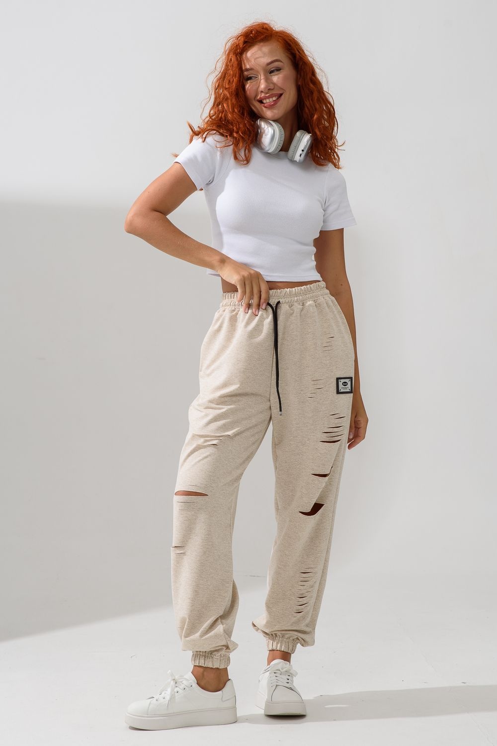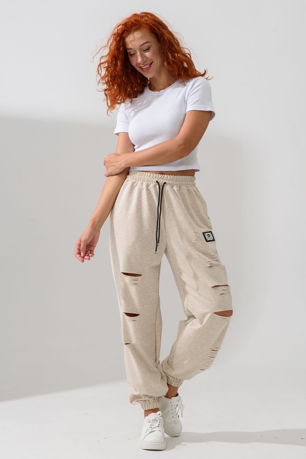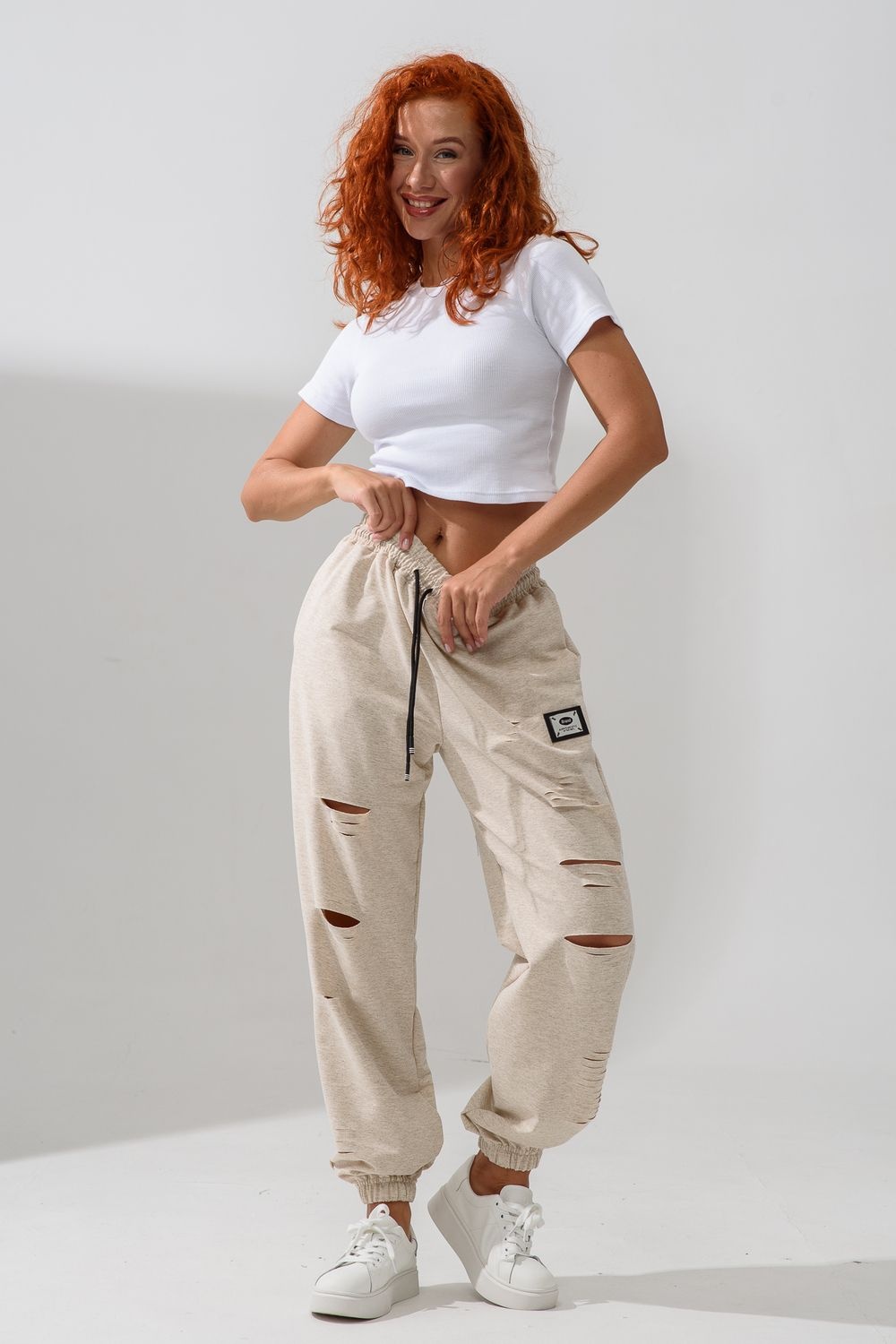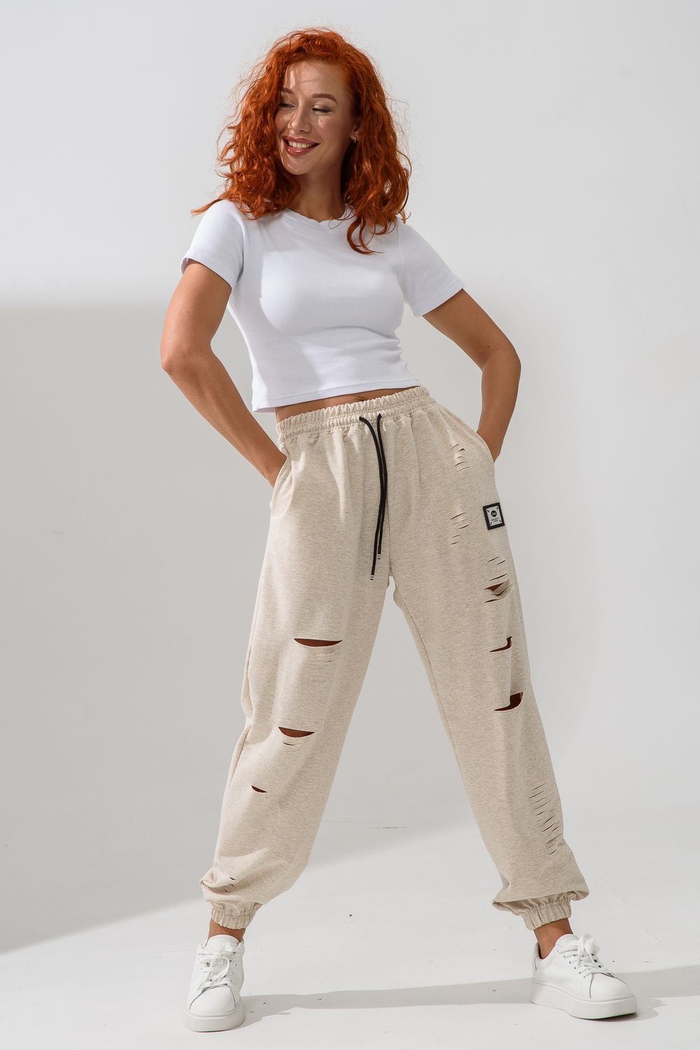 Стильные женские спортивные штаны с прорезями в уличном стиле. Штаны на резинке с комфортной посадкой созданы для ярких девушек, ценящих удобство и моду. Идеально подходят для прогулок, дома и активного отдыха. Легкие трикотажные джоггеры с карманами — тренд сезона. Рваные детали добавляют дерзости образу, а свободный крой гарантирует комфорт на каждый день. Багги, карго, бананы и слоучи — все, что нужно для модного гардероба! Оверсайз штаны на резинке с манжетами идеально подойдут как для подростков, так и для женщин высокого и невысокого роста. Создай модный лук с хлопковыми кэжуал брюками. Необычные широкие дырявые джоггры с высокой талией подчеркнут твою индивидуальность. Выбери casual штаны с гранж акцентами для танцев или фитнеса — будь всегда на пике тренда. Стильная спортивка с прорезями для девушек отличный выбор для демисезона и весенних прогулок. Почувствуй свободу движения!