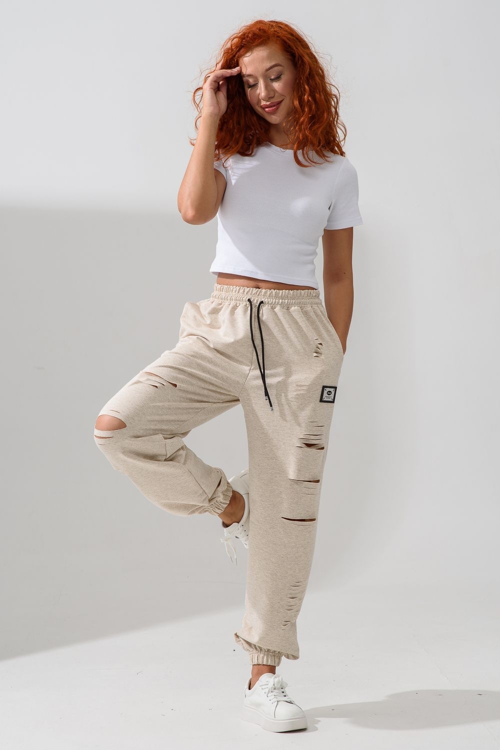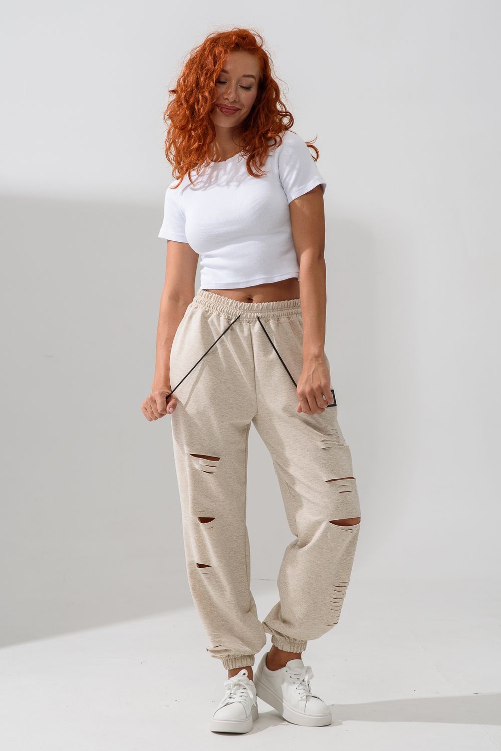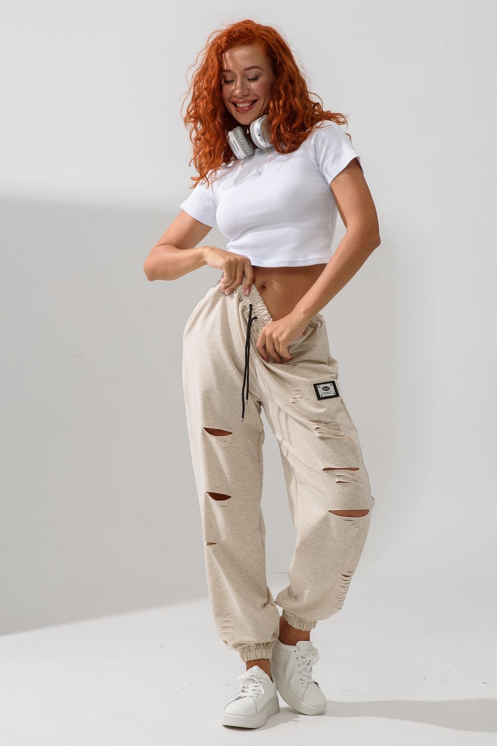 Стильные женские спортивные штаны с прорезями в уличном стиле. Штаны на резинке с комфортной посадкой созданы для ярких девушек, ценящих удобство и моду. Идеально подходят для прогулок, дома и активного отдыха. Легкие трикотажные джоггеры с карманами — тренд сезона. Рваные детали добавляют дерзости образу, а свободный крой гарантирует комфорт на каждый день. Багги, карго, бананы и слоучи — все, что нужно для модного гардероба! Оверсайз штаны на резинке с манжетами идеально подойдут как для подростков, так и для женщин высокого и невысокого роста. Создай модный лук с хлопковыми кэжуал брюками. Необычные широкие дырявые джоггры с высокой талией подчеркнут твою индивидуальность. Выбери casual штаны с гранж акцентами для танцев или фитнеса — будь всегда на пике тренда. Стильная спортивка с прорезями для девушек отличный выбор для демисезона и весенних прогулок. Почувствуй свободу движения!