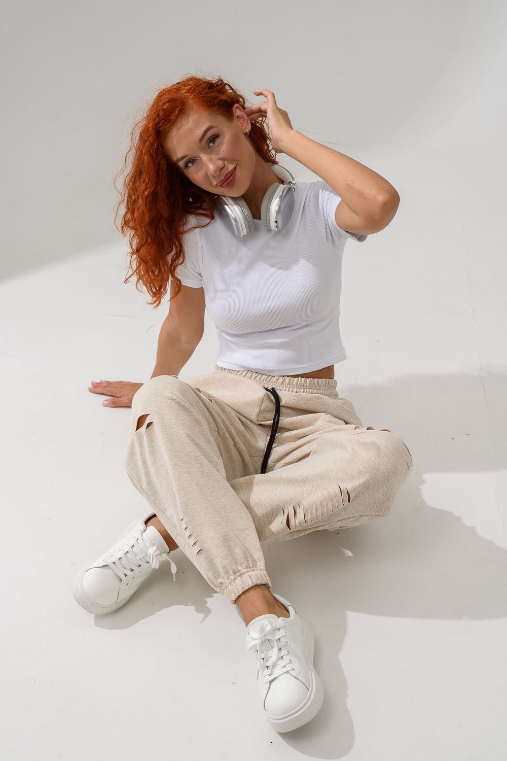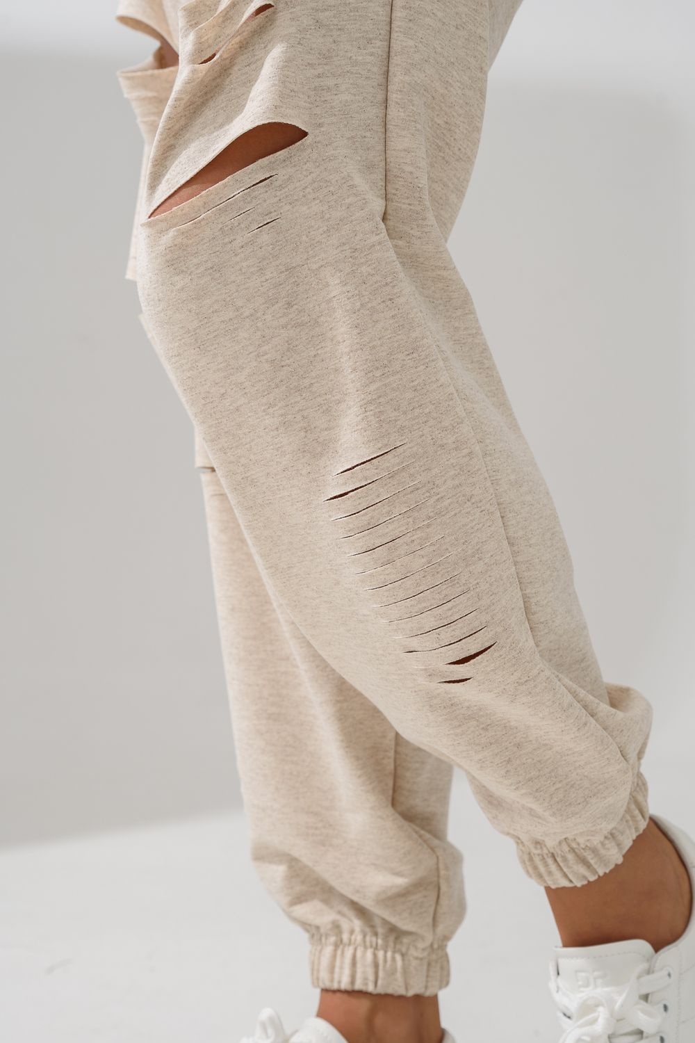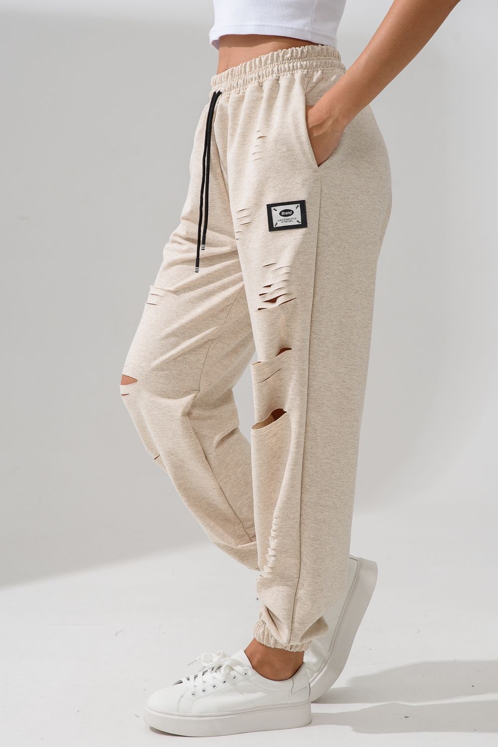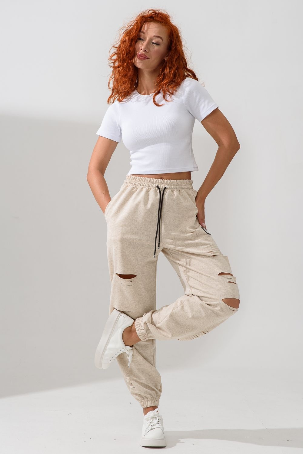 Стильные женские спортивные штаны с прорезями в уличном стиле. Штаны на резинке с комфортной посадкой созданы для ярких девушек, ценящих удобство и моду. Идеально подходят для прогулок, дома и активного отдыха. Легкие трикотажные джоггеры с карманами — тренд сезона. Рваные детали добавляют дерзости образу, а свободный крой гарантирует комфорт на каждый день. Багги, карго, бананы и слоучи — все, что нужно для модного гардероба! Оверсайз штаны на резинке с манжетами идеально подойдут как для подростков, так и для женщин высокого и невысокого роста. Создай модный лук с хлопковыми кэжуал брюками. Необычные широкие дырявые джоггры с высокой талией подчеркнут твою индивидуальность. Выбери casual штаны с гранж акцентами для танцев или фитнеса — будь всегда на пике тренда. Стильная спортивка с прорезями для девушек отличный выбор для демисезона и весенних прогулок. Почувствуй свободу движения!
