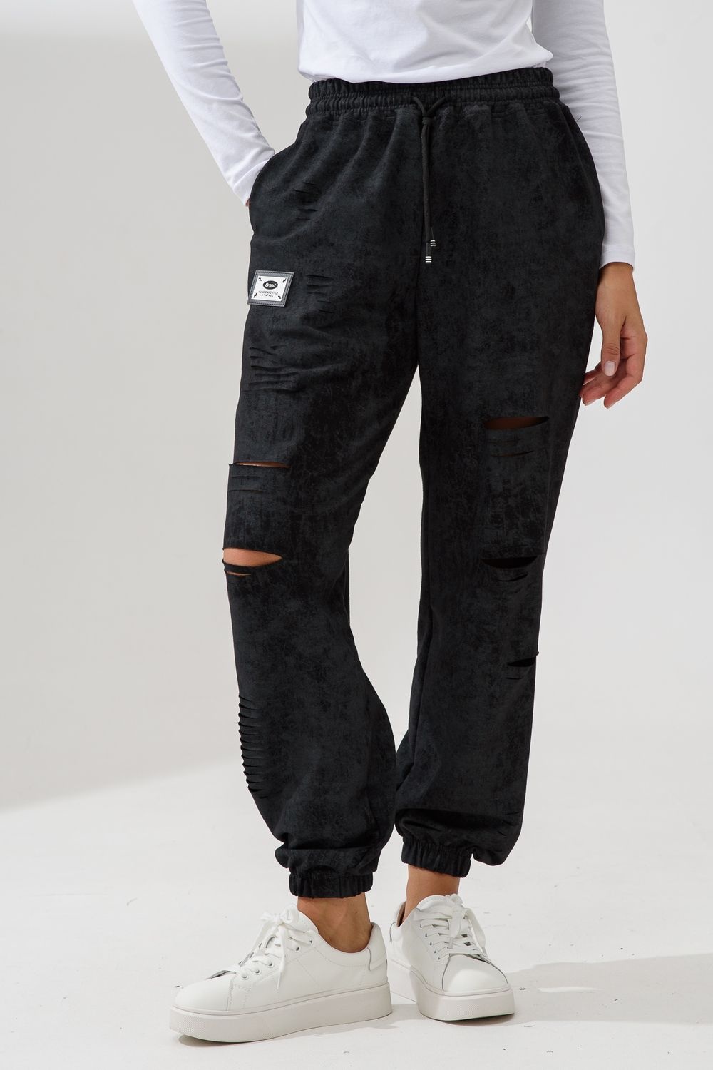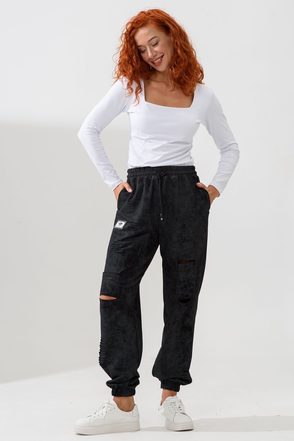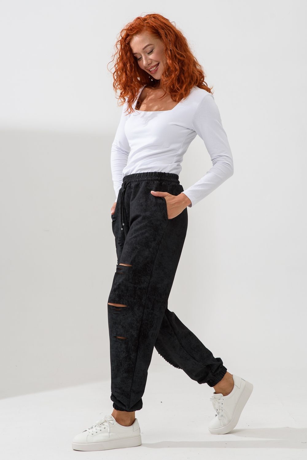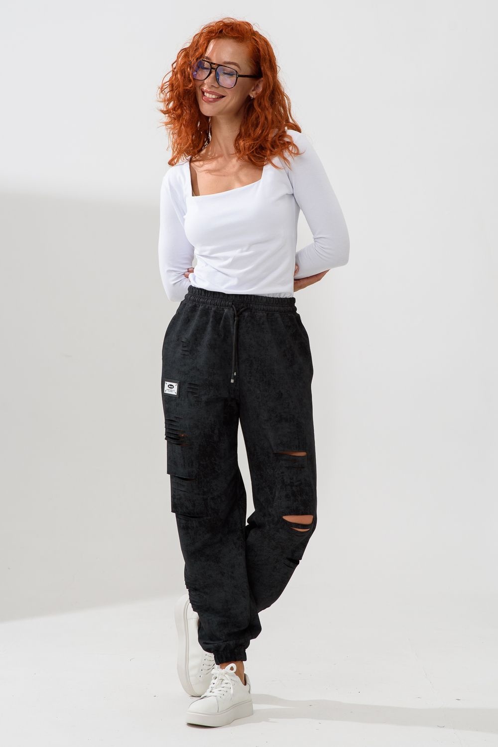 Стильные женские спортивные штаны с прорезями в уличном стиле. Штаны на резинке с комфортной посадкой созданы для ярких девушек, ценящих удобство и моду. Идеально подходят для прогулок, дома и активного отдыха. Легкие трикотажные джоггеры с карманами — тренд сезона. Рваные детали добавляют дерзости образу, а свободный крой гарантирует комфорт на каждый день. Багги, карго, бананы и слоучи — все, что нужно для модного гардероба! Оверсайз штаны на резинке с манжетами идеально подойдут как для подростков, так и для женщин высокого и невысокого роста. Создай модный лук с хлопковыми кэжуал брюками. Необычные широкие дырявые джоггры с высокой талией подчеркнут твою индивидуальность. Выбери casual штаны с гранж акцентами для танцев или фитнеса — будь всегда на пике тренда. Стильная спортивка с прорезями для девушек отличный выбор для демисезона и весенних прогулок. Почувствуй свободу движения!