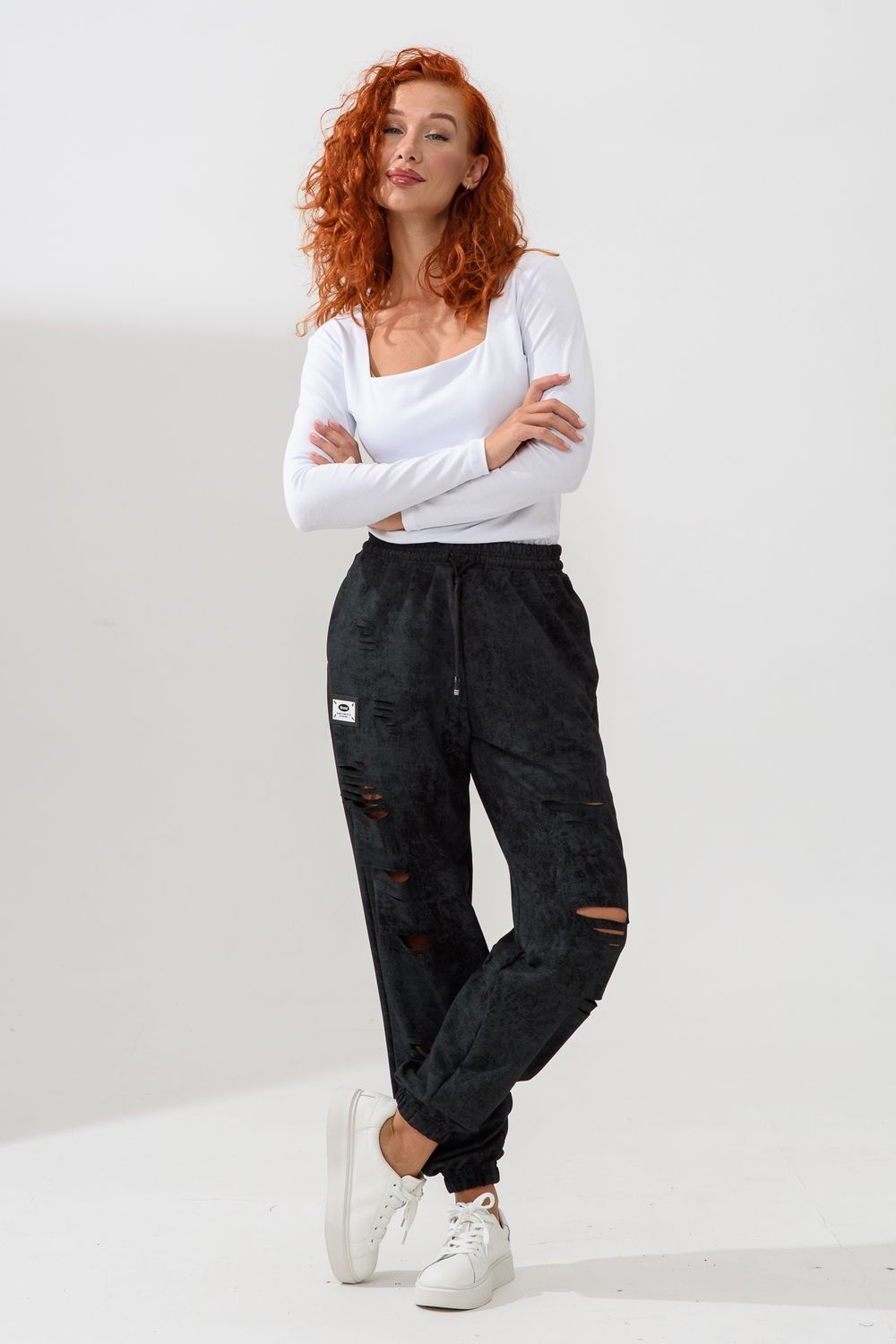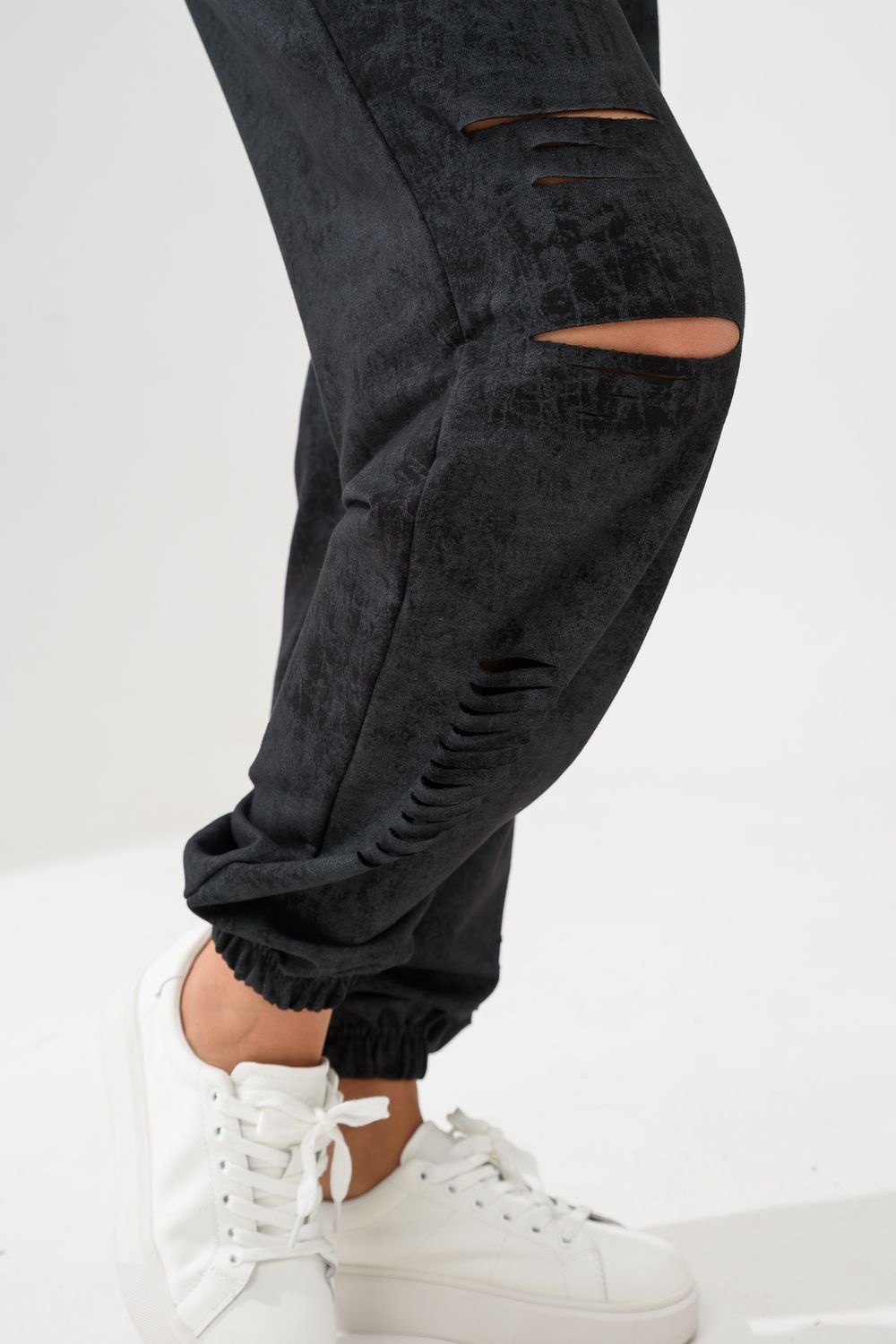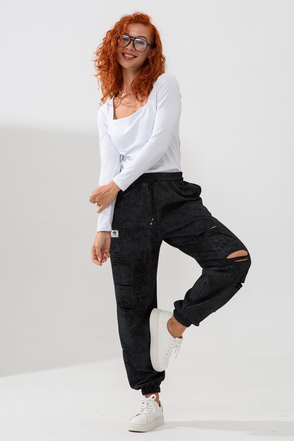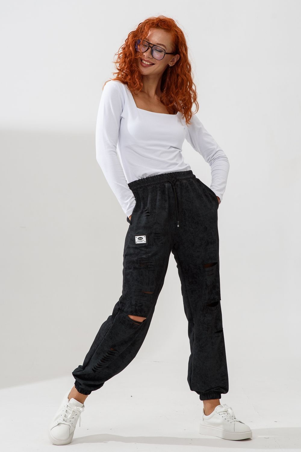 Стильные женские спортивные штаны с прорезями в уличном стиле. Штаны на резинке с комфортной посадкой созданы для ярких девушек, ценящих удобство и моду. Идеально подходят для прогулок, дома и активного отдыха. Легкие трикотажные джоггеры с карманами — тренд сезона. Рваные детали добавляют дерзости образу, а свободный крой гарантирует комфорт на каждый день. Багги, карго, бананы и слоучи — все, что нужно для модного гардероба! Оверсайз штаны на резинке с манжетами идеально подойдут как для подростков, так и для женщин высокого и невысокого роста. Создай модный лук с хлопковыми кэжуал брюками. Необычные широкие дырявые джоггры с высокой талией подчеркнут твою индивидуальность. Выбери casual штаны с гранж акцентами для танцев или фитнеса — будь всегда на пике тренда. Стильная спортивка с прорезями для девушек отличный выбор для демисезона и весенних прогулок. Почувствуй свободу движения!