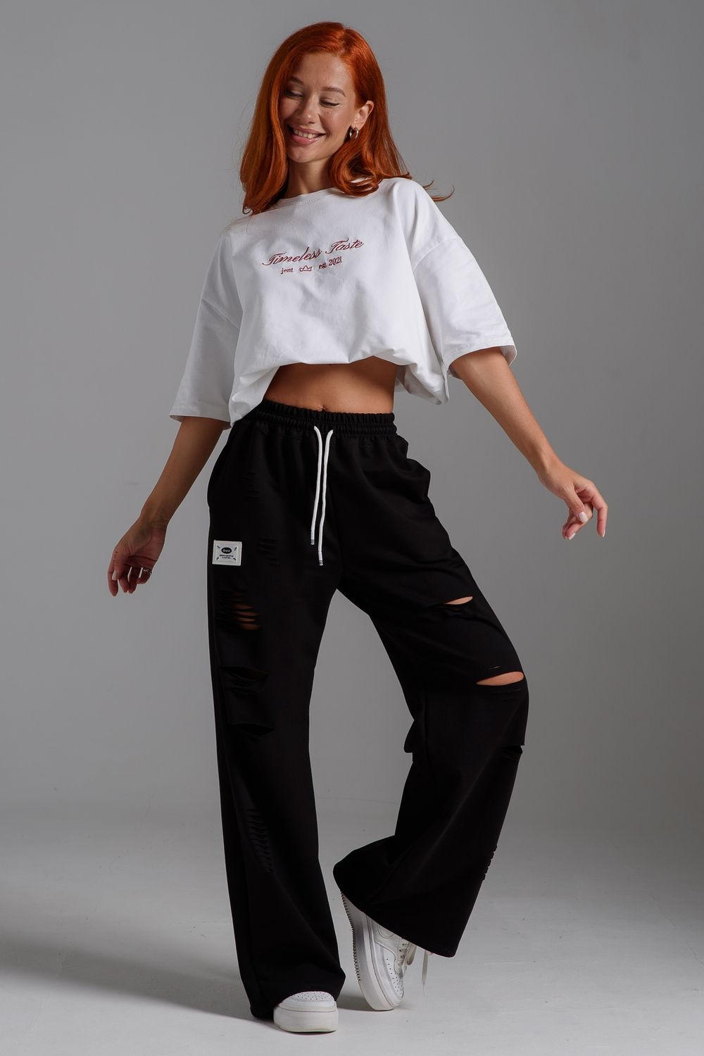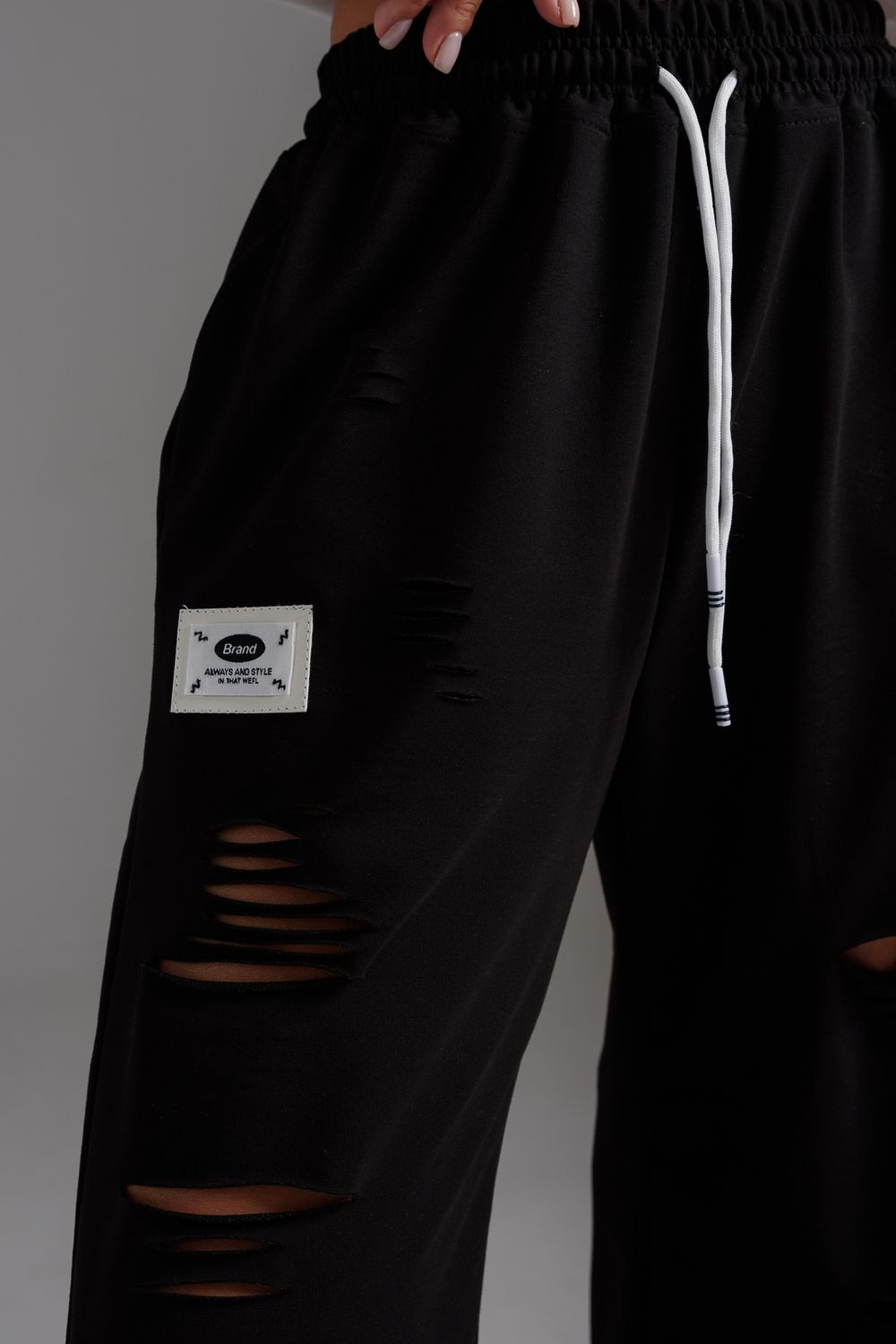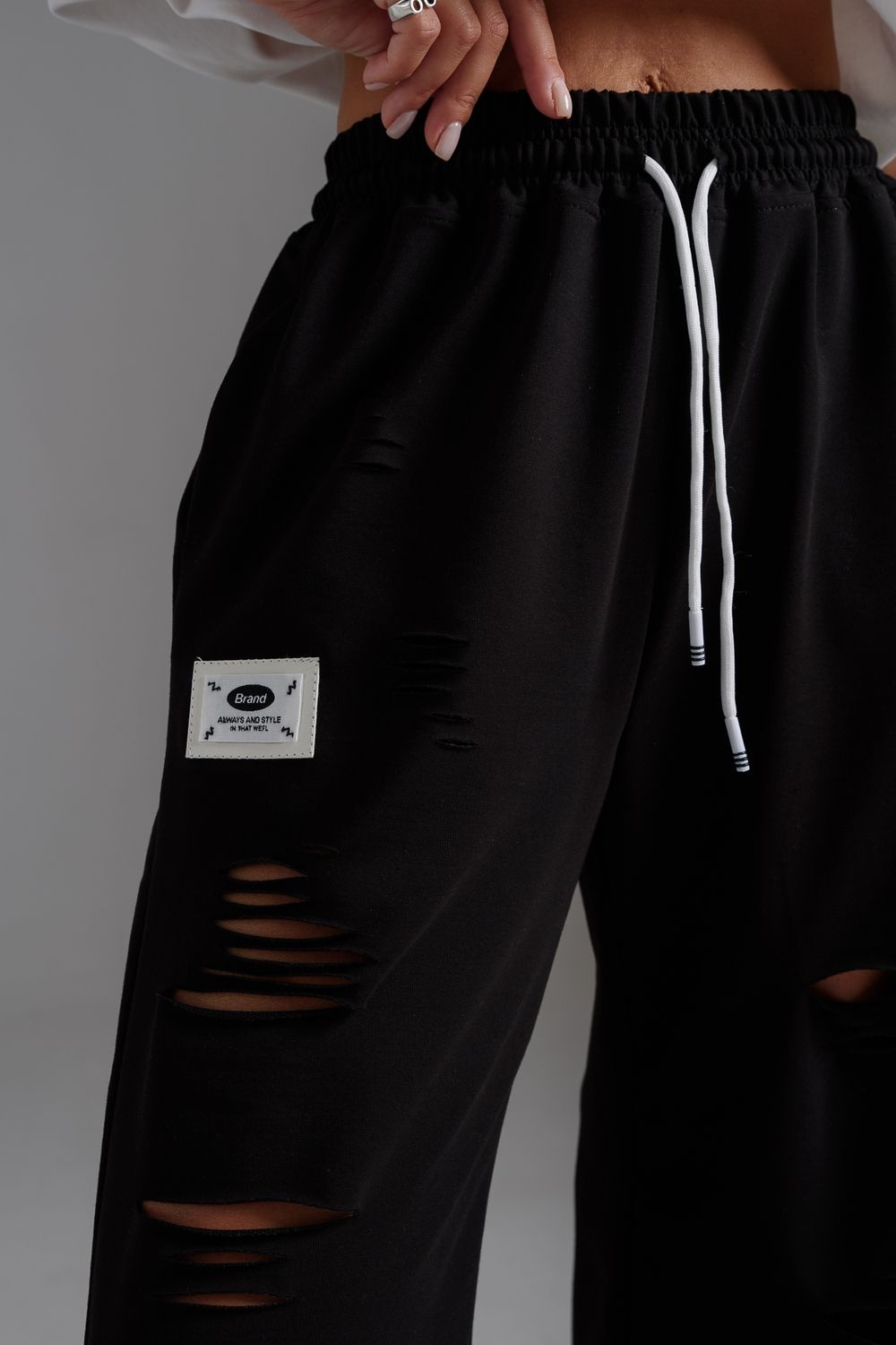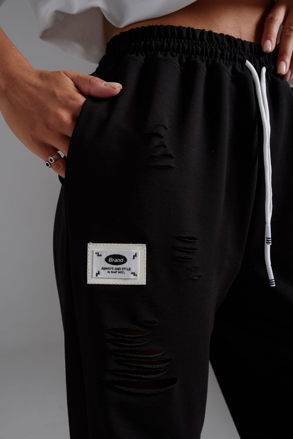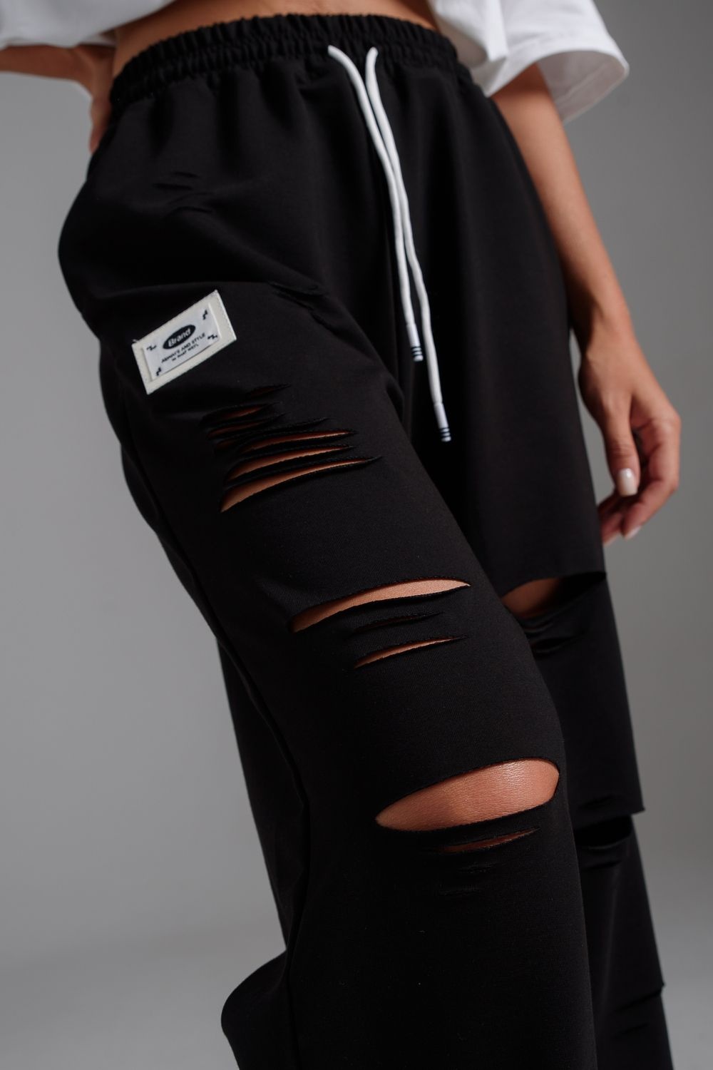 Стильные женские спортивные штаны с прорезями в уличном стиле. Штаны на резинке с комфортной посадкой созданы для ярких девушек, ценящих удобство и моду. Идеально подходят для прогулок, дома и активного отдыха. Рваные детали добавляют дерзости образу, а свободный крой гарантирует комфорт на каждый день. Карго - то, что нужно для модного гардероба! Оверсайз штаны на резинке идеально подойдут как для подростков, так и для женщин. Создай модный лук с хлопковыми кэжуал брюками. Необычные широкие дырявые джоггры с высокой талией подчеркнут твою индивидуальность. Выбери casual штаны с гранж акцентами для танцев или фитнеса — будь всегда на пике тренда. Стильная спортивка с прорезями для девушек отличный выбор для демисезона и весенних прогулок. Почувствуй свободу движения!