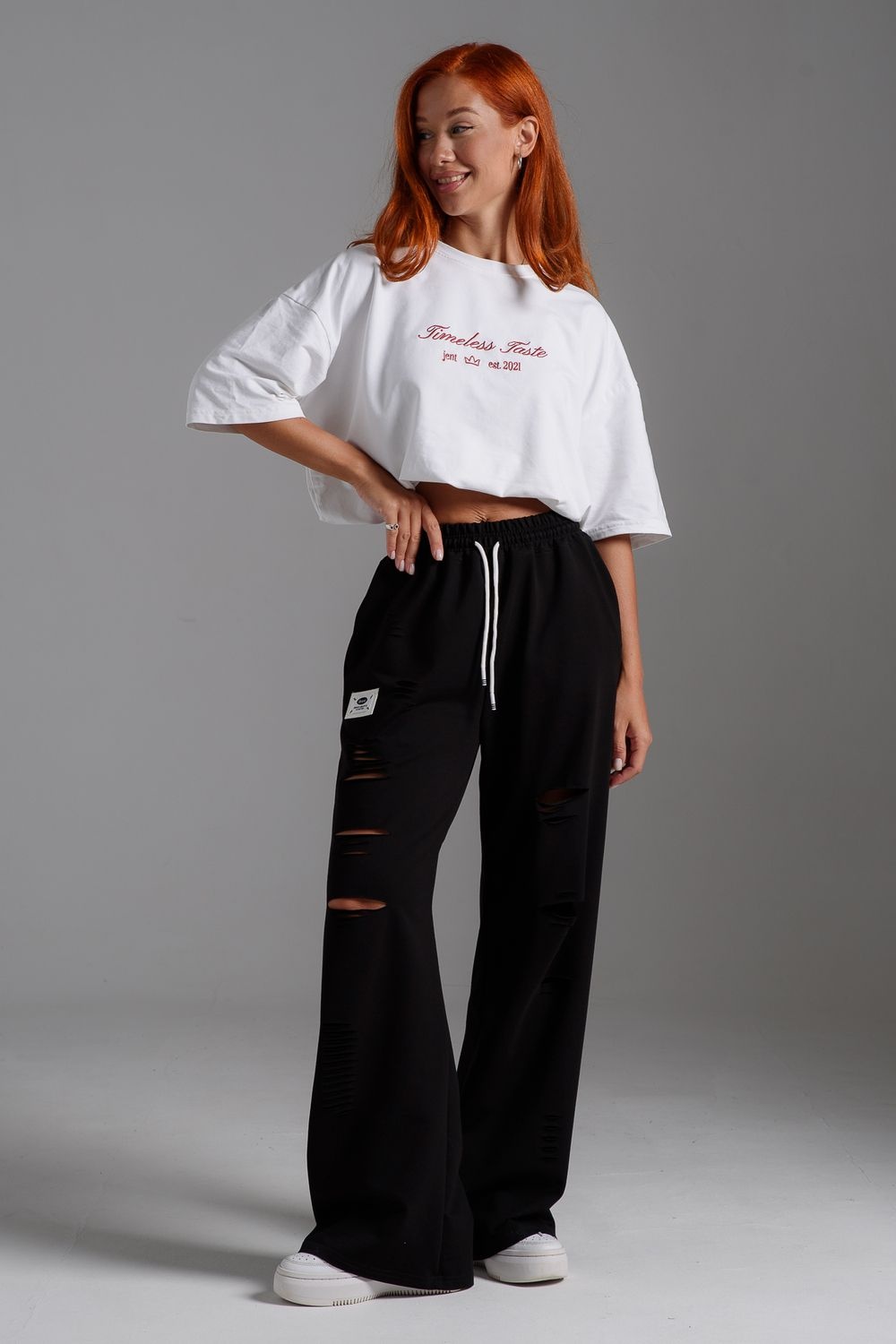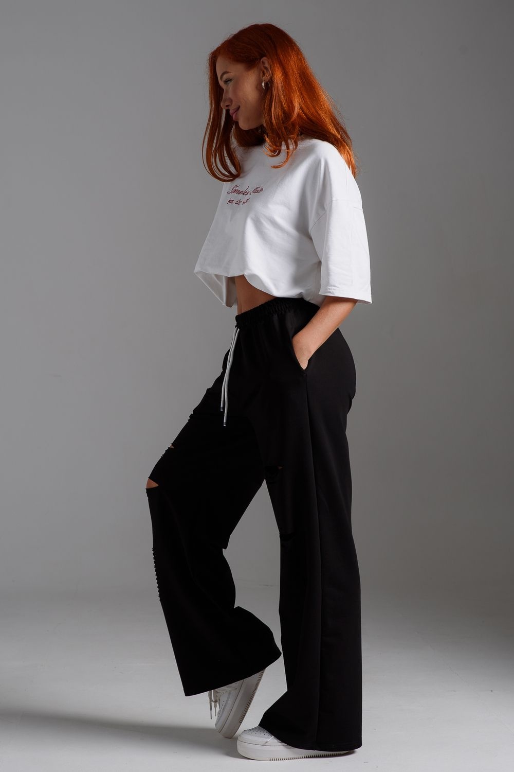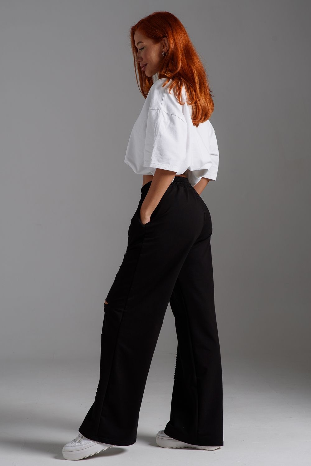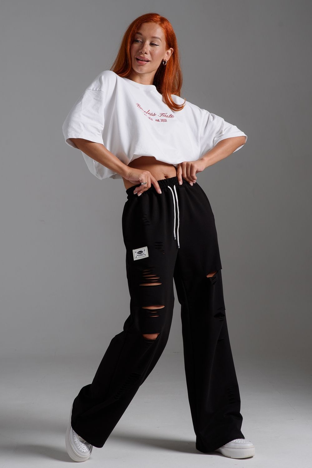 Стильные женские спортивные штаны с прорезями в уличном стиле. Штаны на резинке с комфортной посадкой созданы для ярких девушек, ценящих удобство и моду. Идеально подходят для прогулок, дома и активного отдыха. Рваные детали добавляют дерзости образу, а свободный крой гарантирует комфорт на каждый день. Карго - то, что нужно для модного гардероба! Оверсайз штаны на резинке идеально подойдут как для подростков, так и для женщин. Создай модный лук с хлопковыми кэжуал брюками. Необычные широкие дырявые джоггры с высокой талией подчеркнут твою индивидуальность. Выбери casual штаны с гранж акцентами для танцев или фитнеса — будь всегда на пике тренда. Стильная спортивка с прорезями для девушек отличный выбор для демисезона и весенних прогулок. Почувствуй свободу движения!