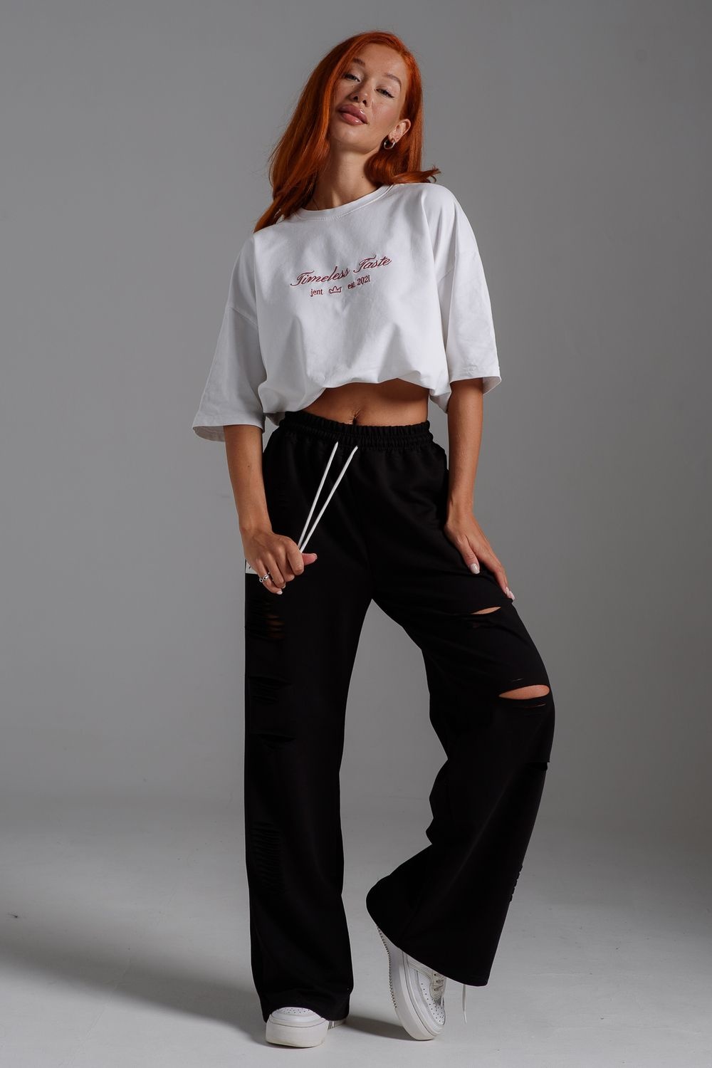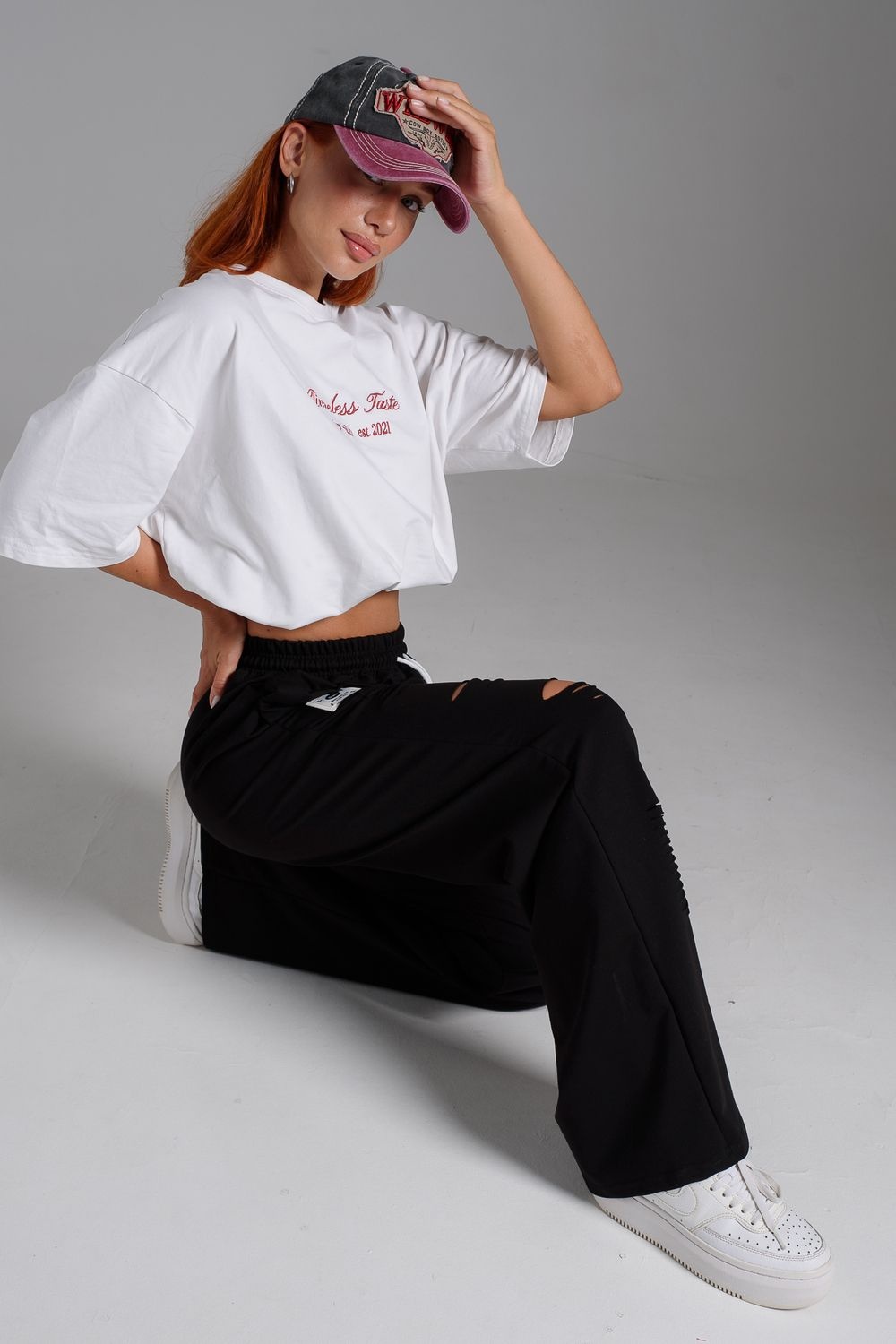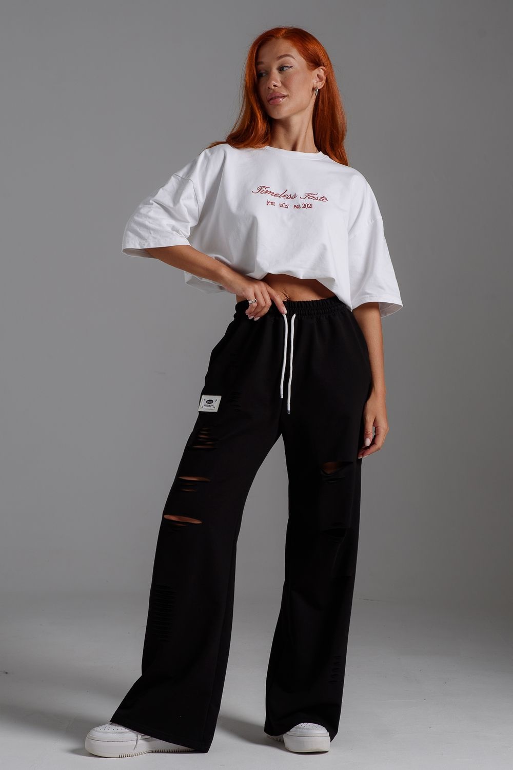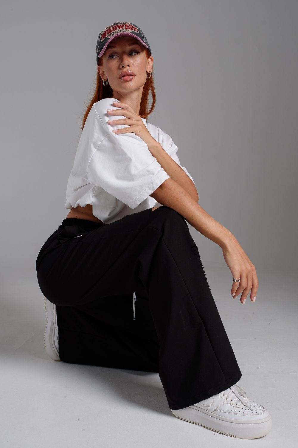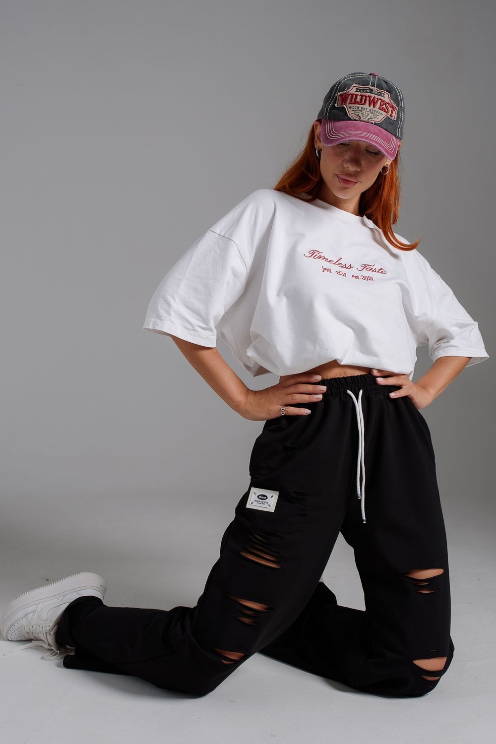 Стильные женские спортивные штаны с прорезями в уличном стиле. Штаны на резинке с комфортной посадкой созданы для ярких девушек, ценящих удобство и моду. Идеально подходят для прогулок, дома и активного отдыха. Рваные детали добавляют дерзости образу, а свободный крой гарантирует комфорт на каждый день. Карго - то, что нужно для модного гардероба! Оверсайз штаны на резинке идеально подойдут как для подростков, так и для женщин. Создай модный лук с хлопковыми кэжуал брюками. Необычные широкие дырявые джоггры с высокой талией подчеркнут твою индивидуальность. Выбери casual штаны с гранж акцентами для танцев или фитнеса — будь всегда на пике тренда. Стильная спортивка с прорезями для девушек отличный выбор для демисезона и весенних прогулок. Почувствуй свободу движения!