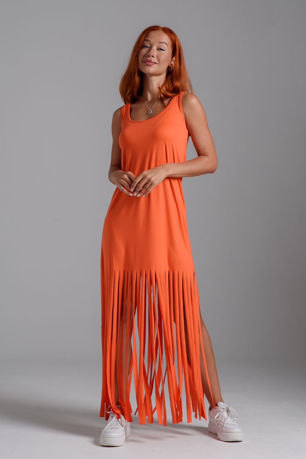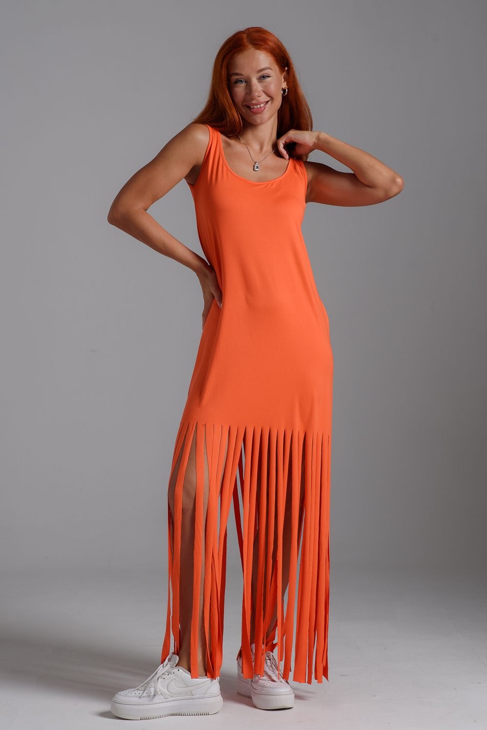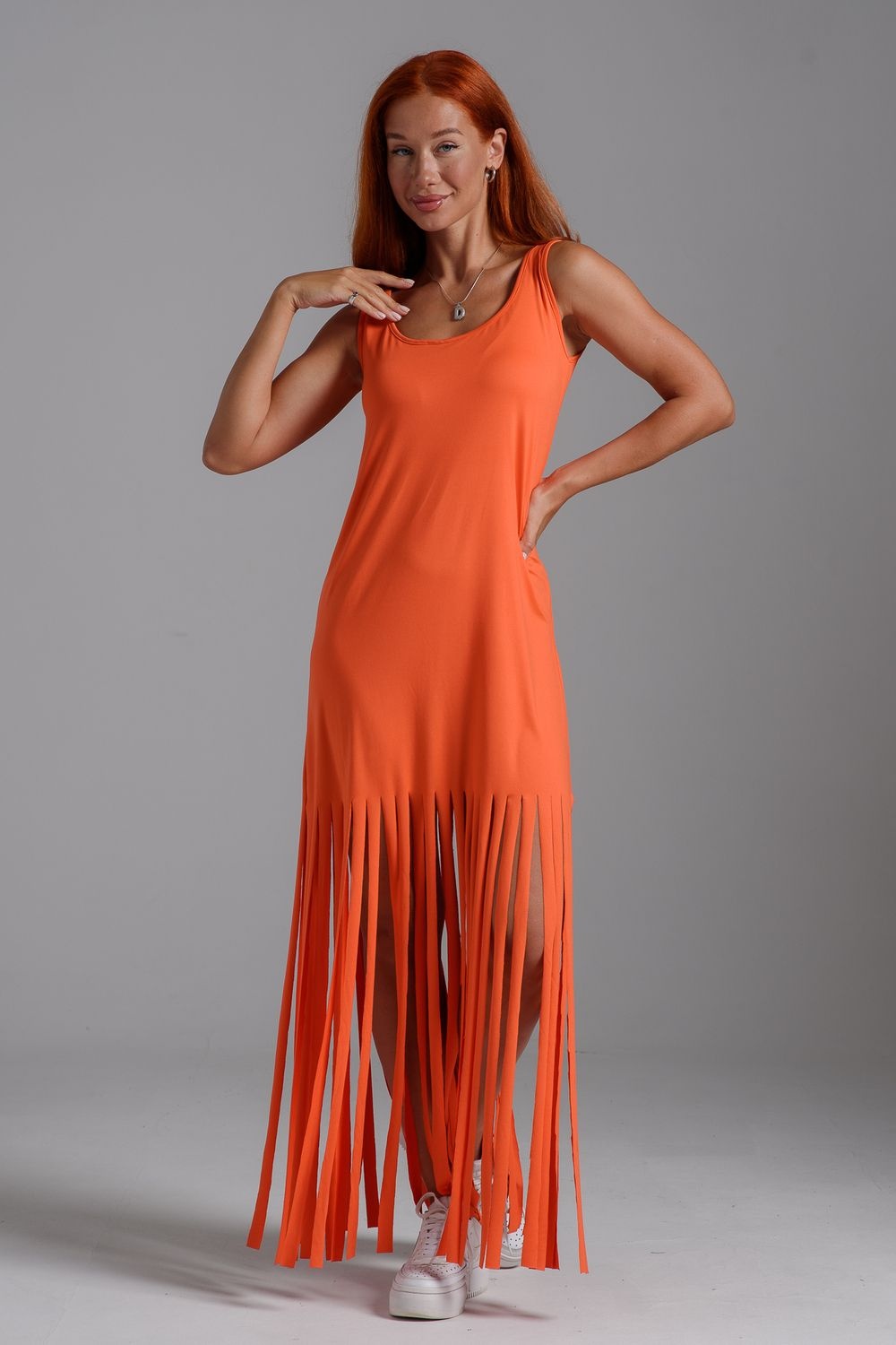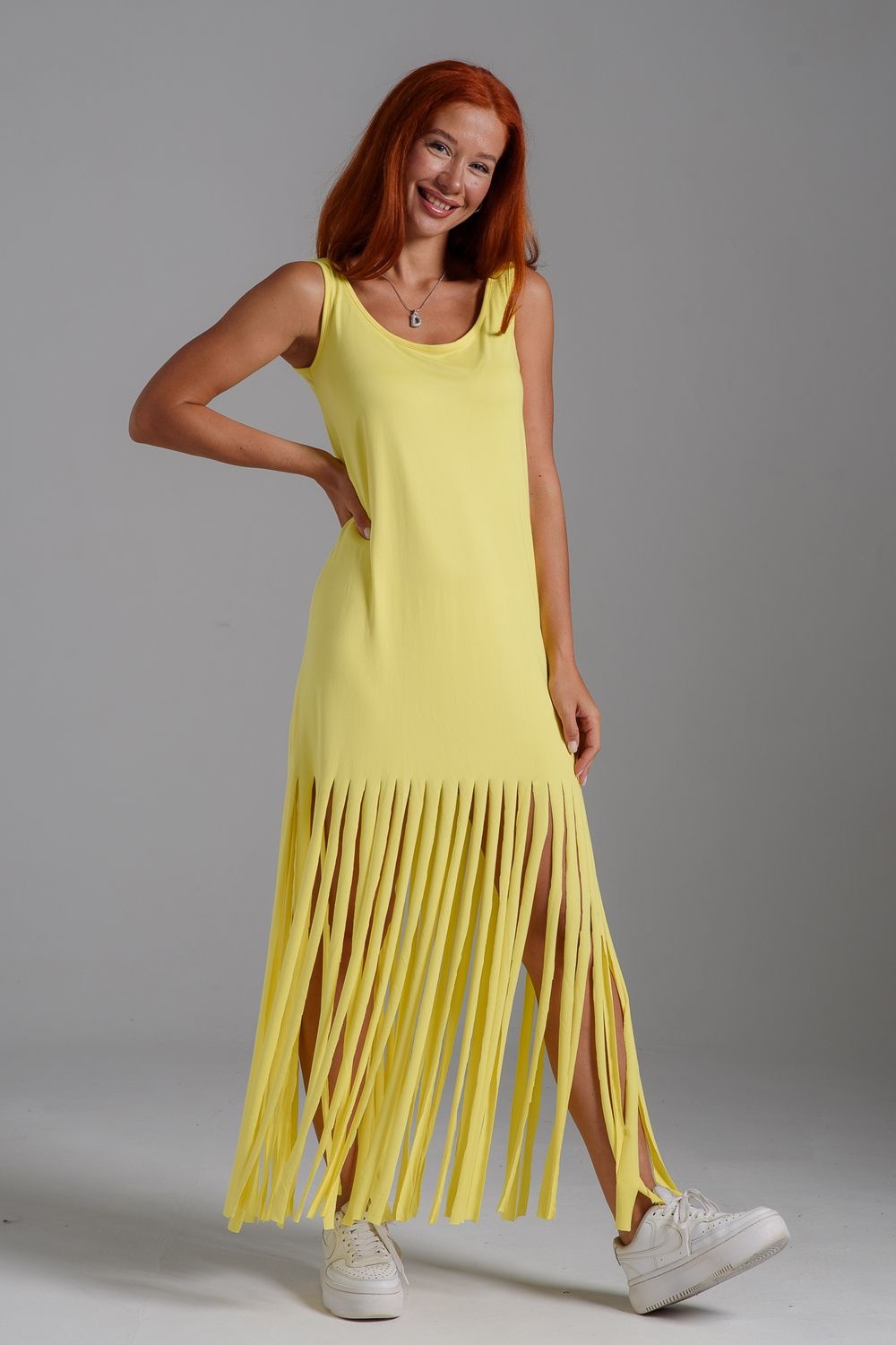 Платье с бахромой из струящейся вискозы. Лёгкое, летящее, манящее. Дарит невероятное ощущение женственности! Собираетесь на курорт? Благодаря легкости материала - отлично подойдёт как сарафан, летнее платье в отпуск. Платье с бахромой очень комфортно в жару. Это платье надо брать! Отлично впишется в Ваш гардероб! Прекрасно садится на фигуру!