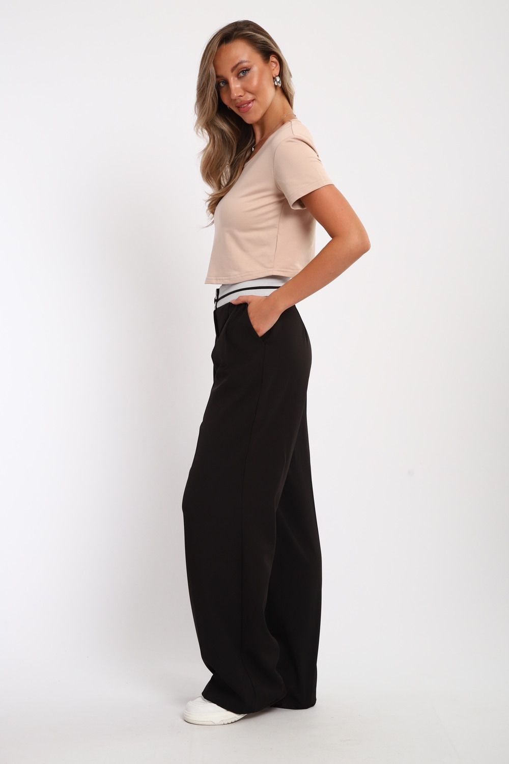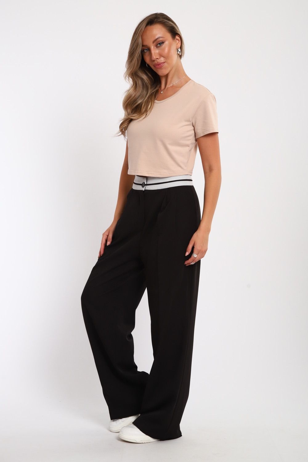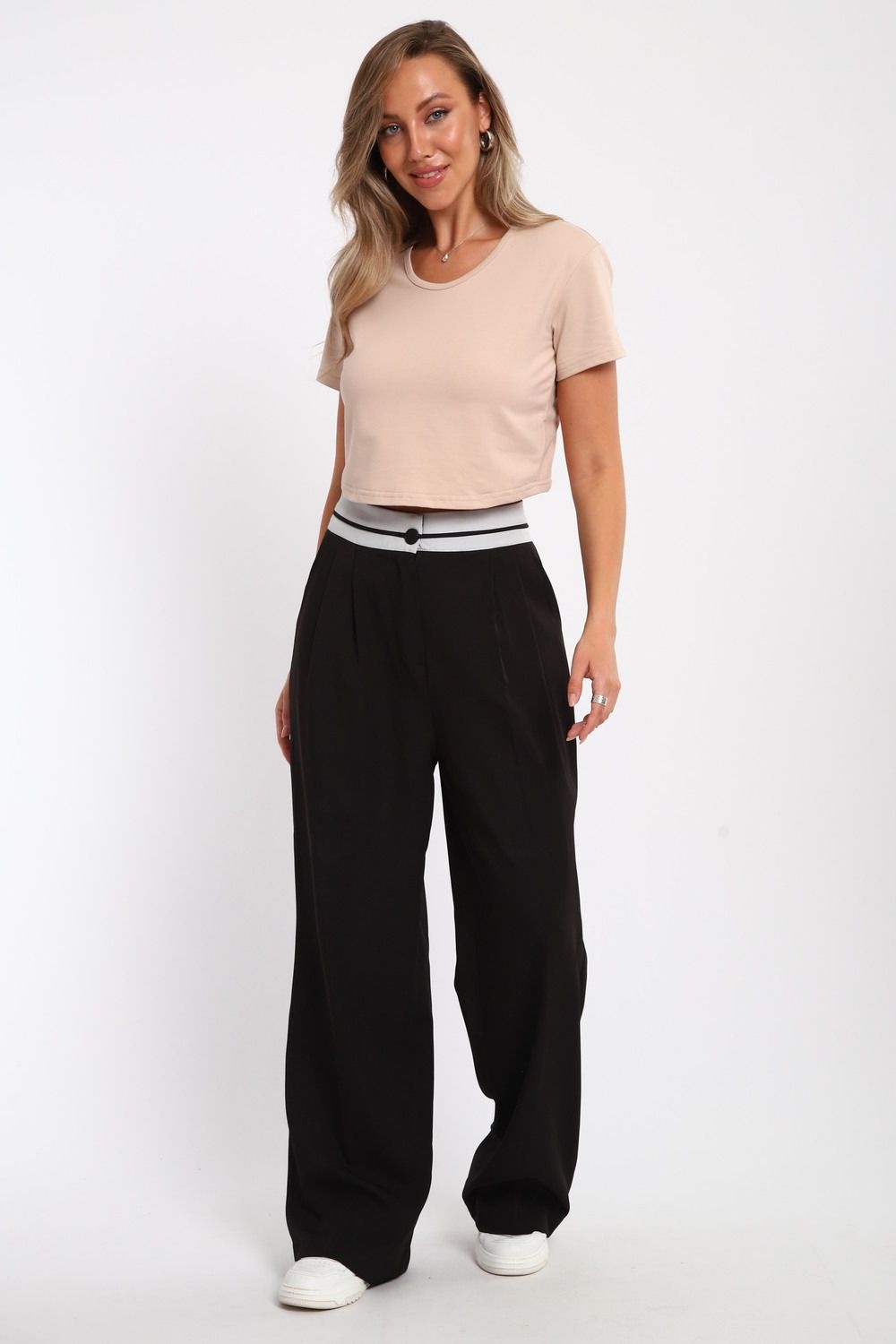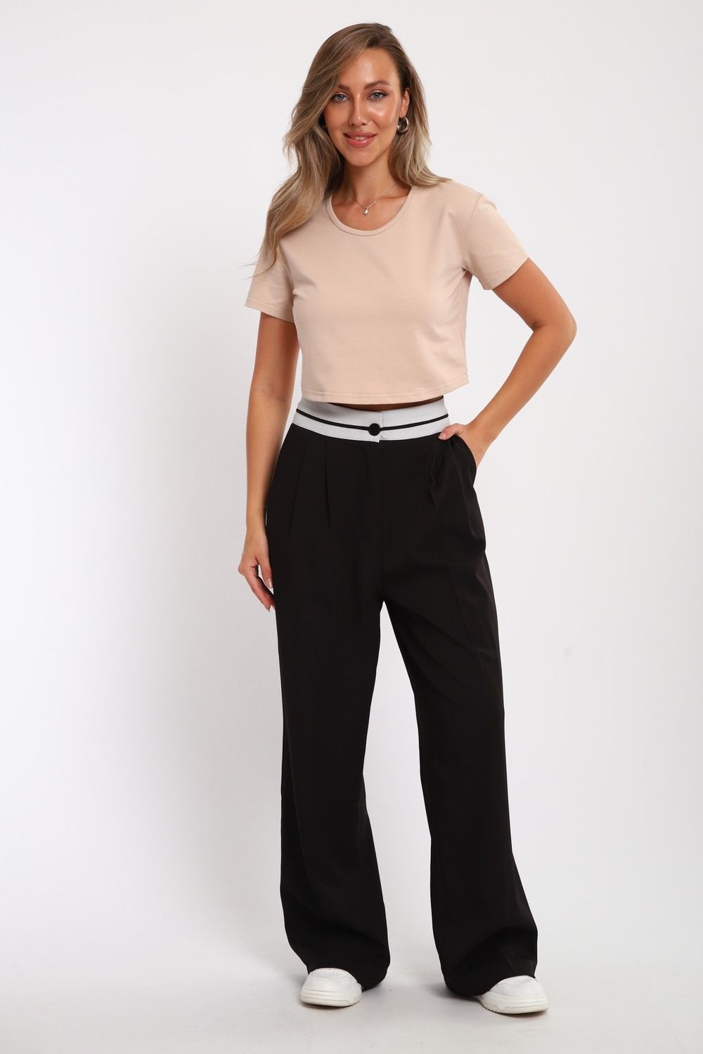 укороченная футболка женская - бежевый №Н-83908