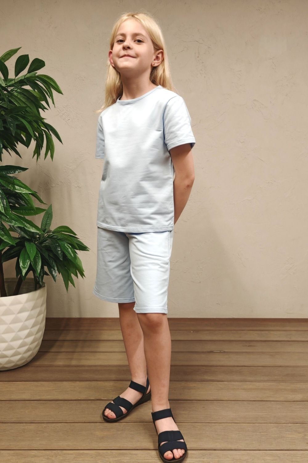 Костюм с шортами для мальчика и девочки - это универсальный и стильный комплект одежды для активных детей. Он представляет собой классический костюм, состоящий из шортов и футболки, выполненных из качественных материалов.