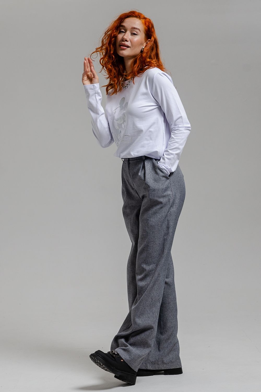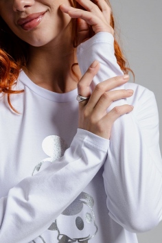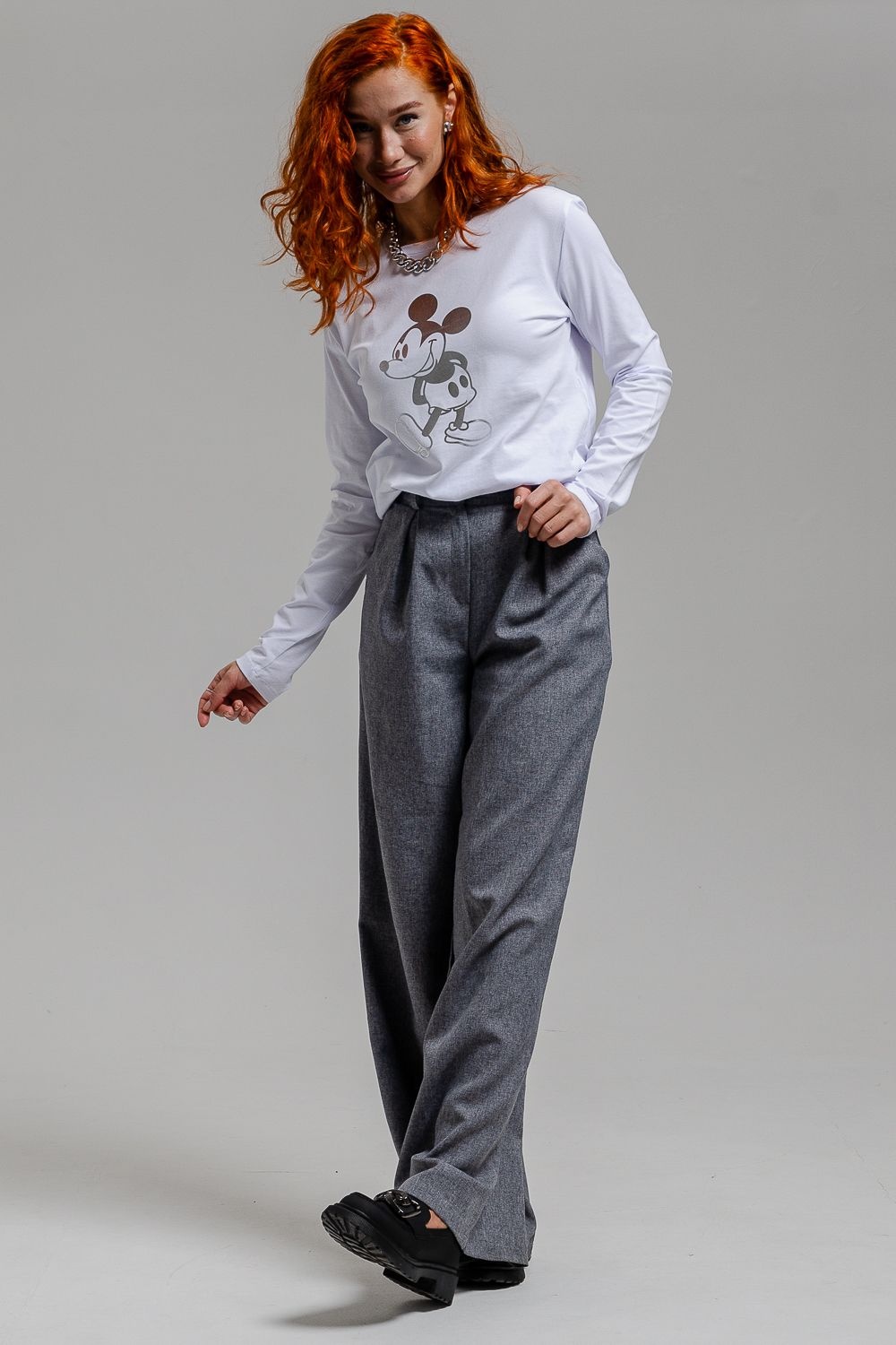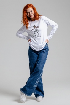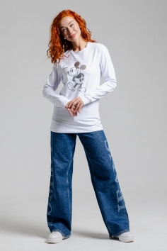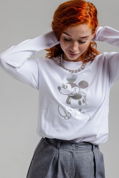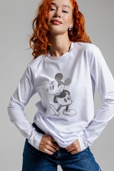 8528-1 Футболка с длинным рукавом унисекс - белый+Микки №Н-85281