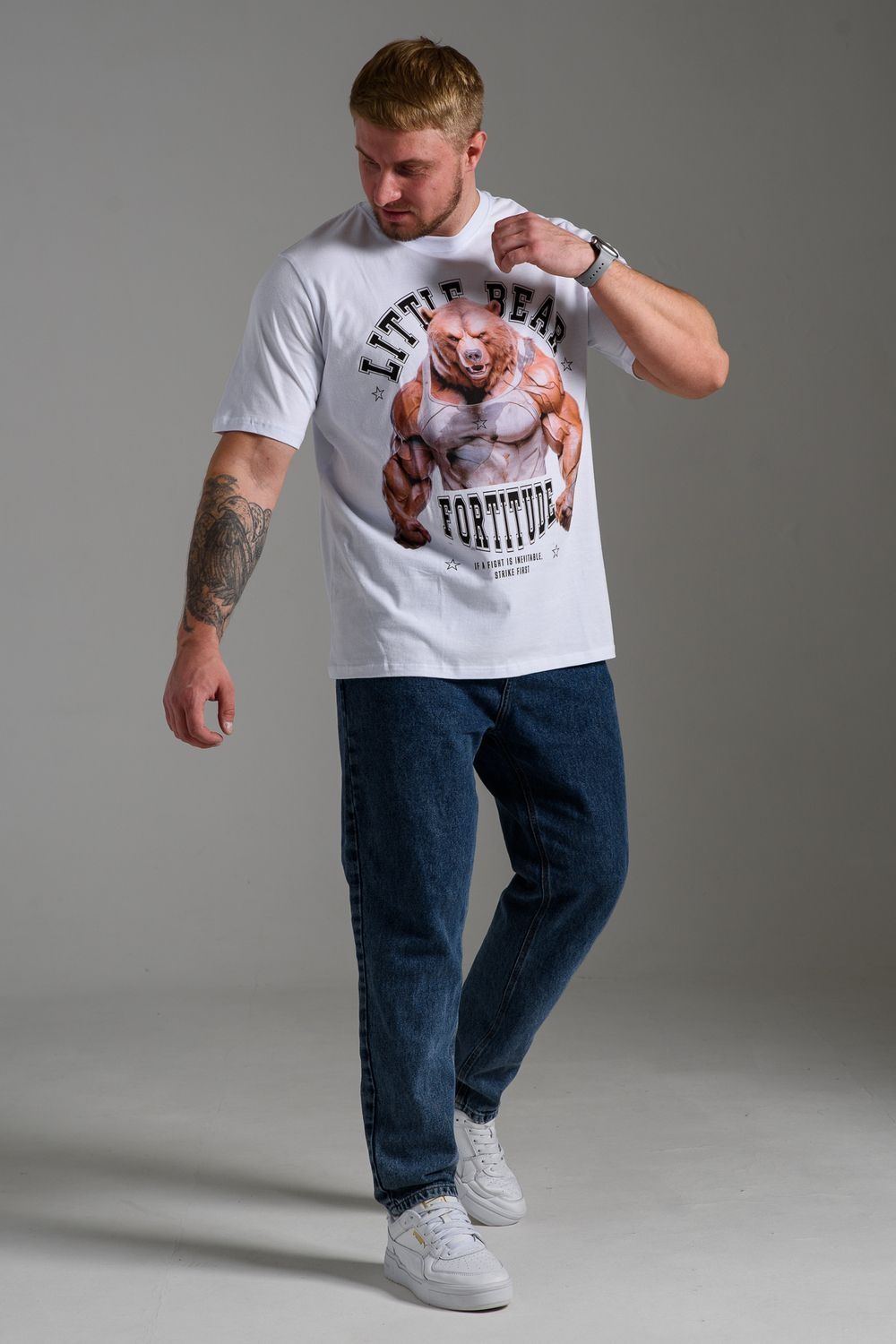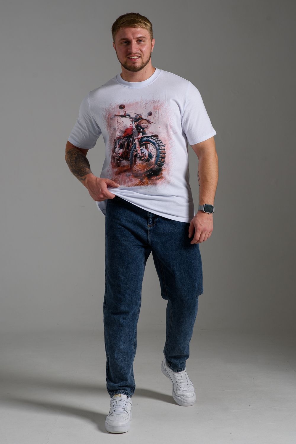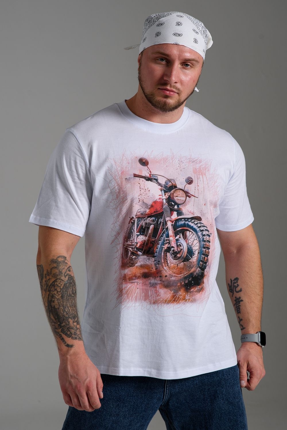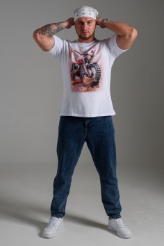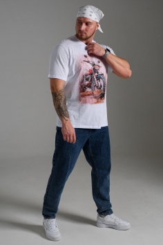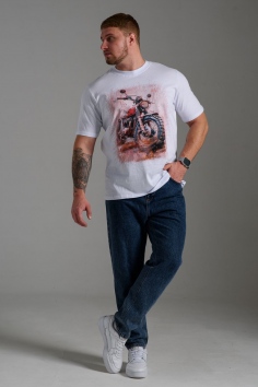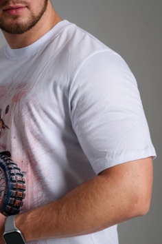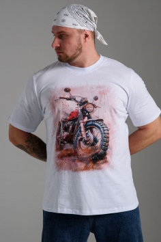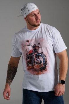 футболка мужская - белый+мото №Н-8549