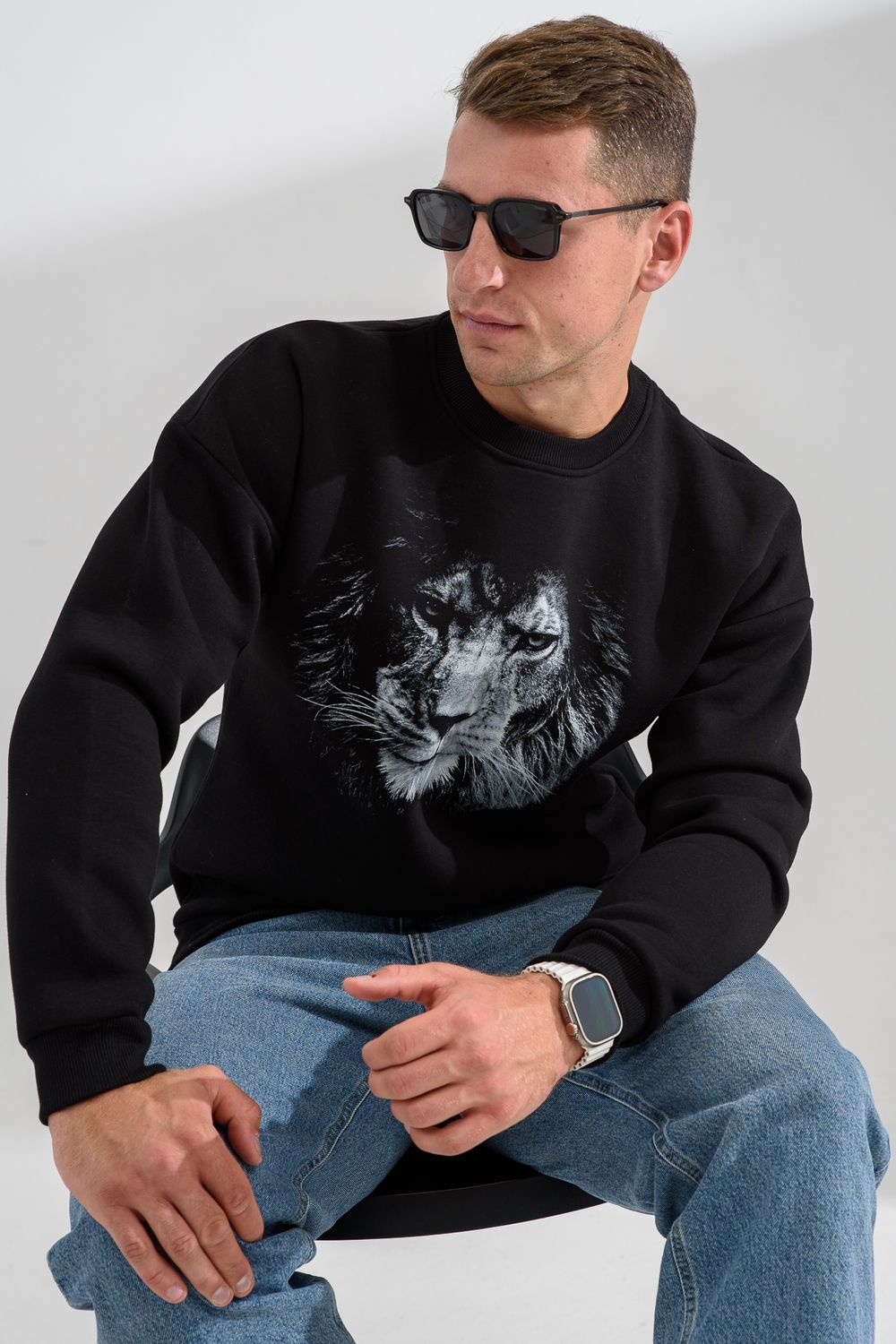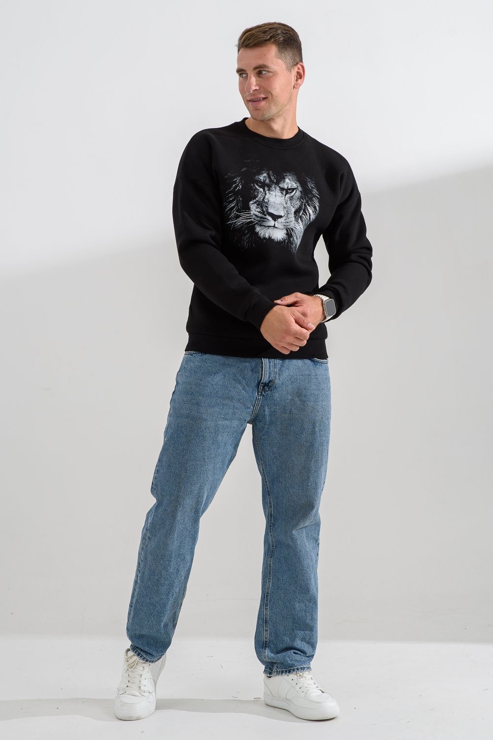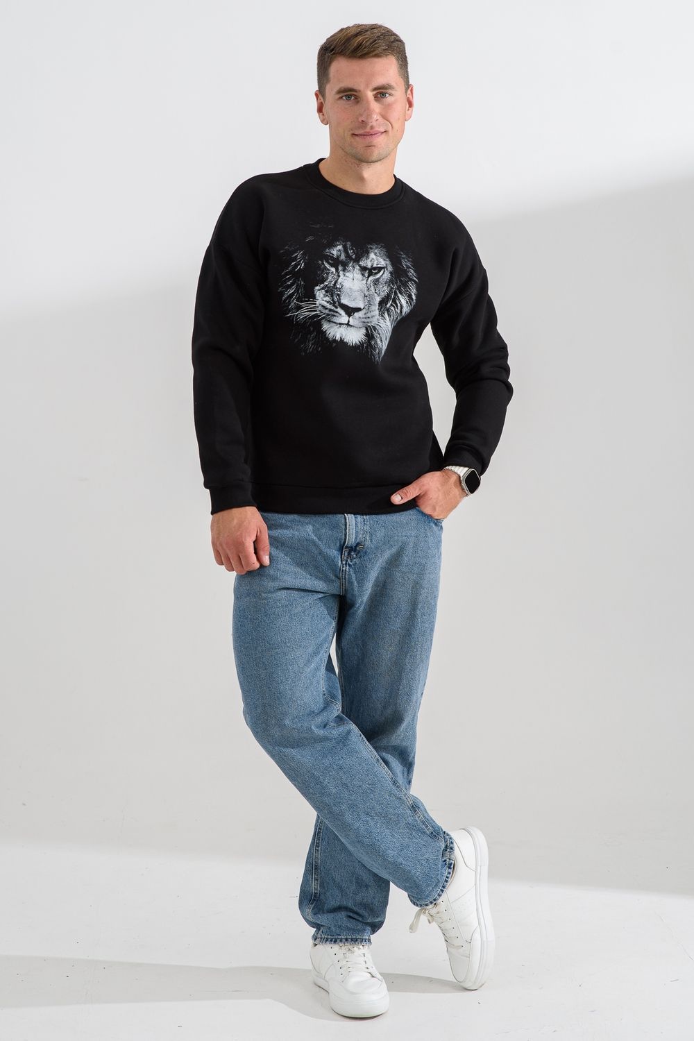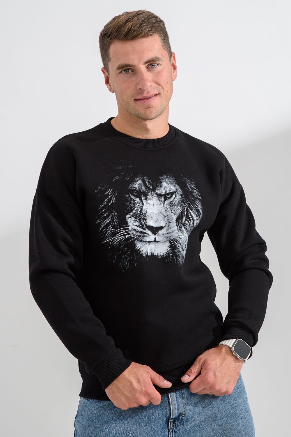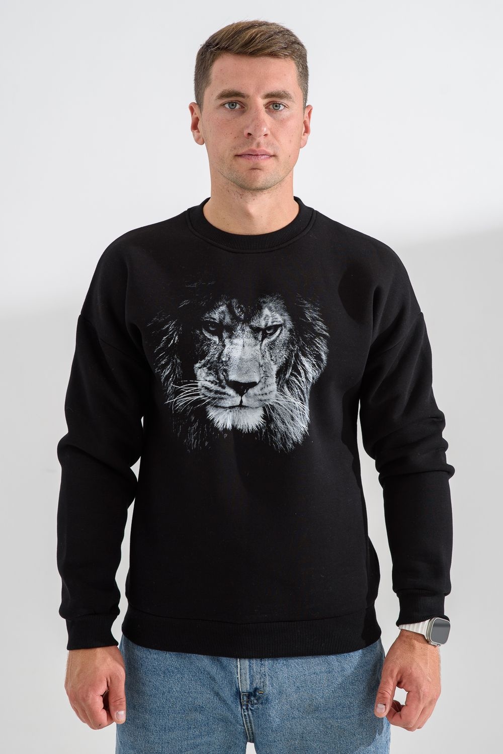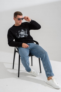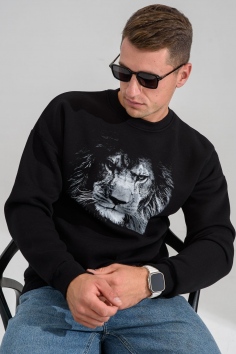 свитшот мужской - черный+лев №Н-8559