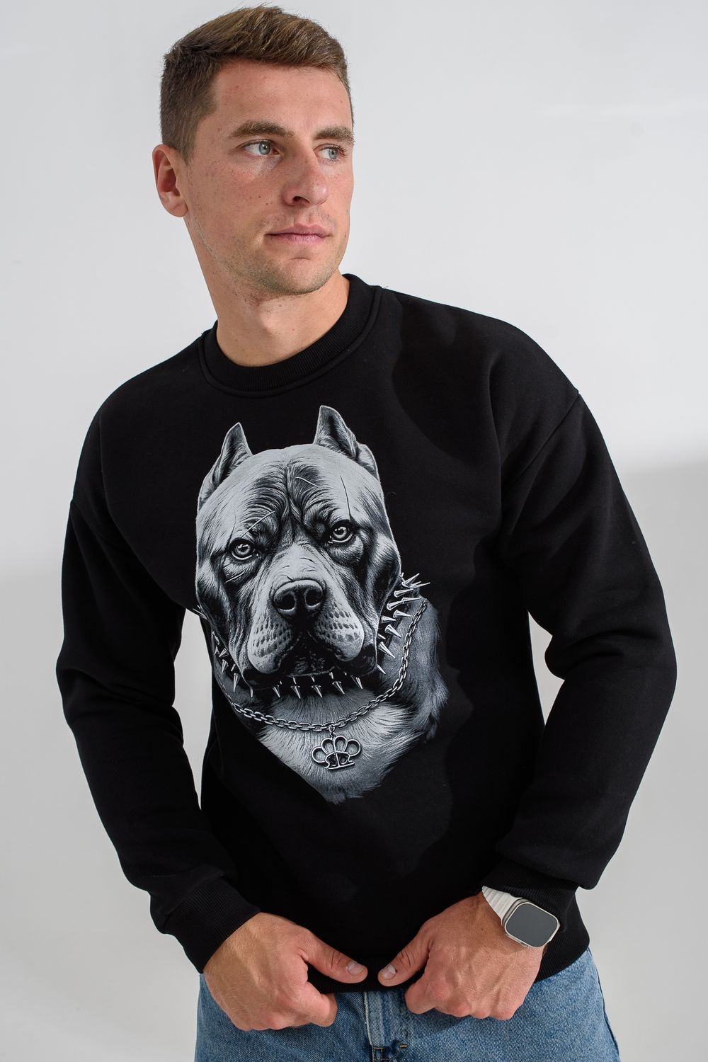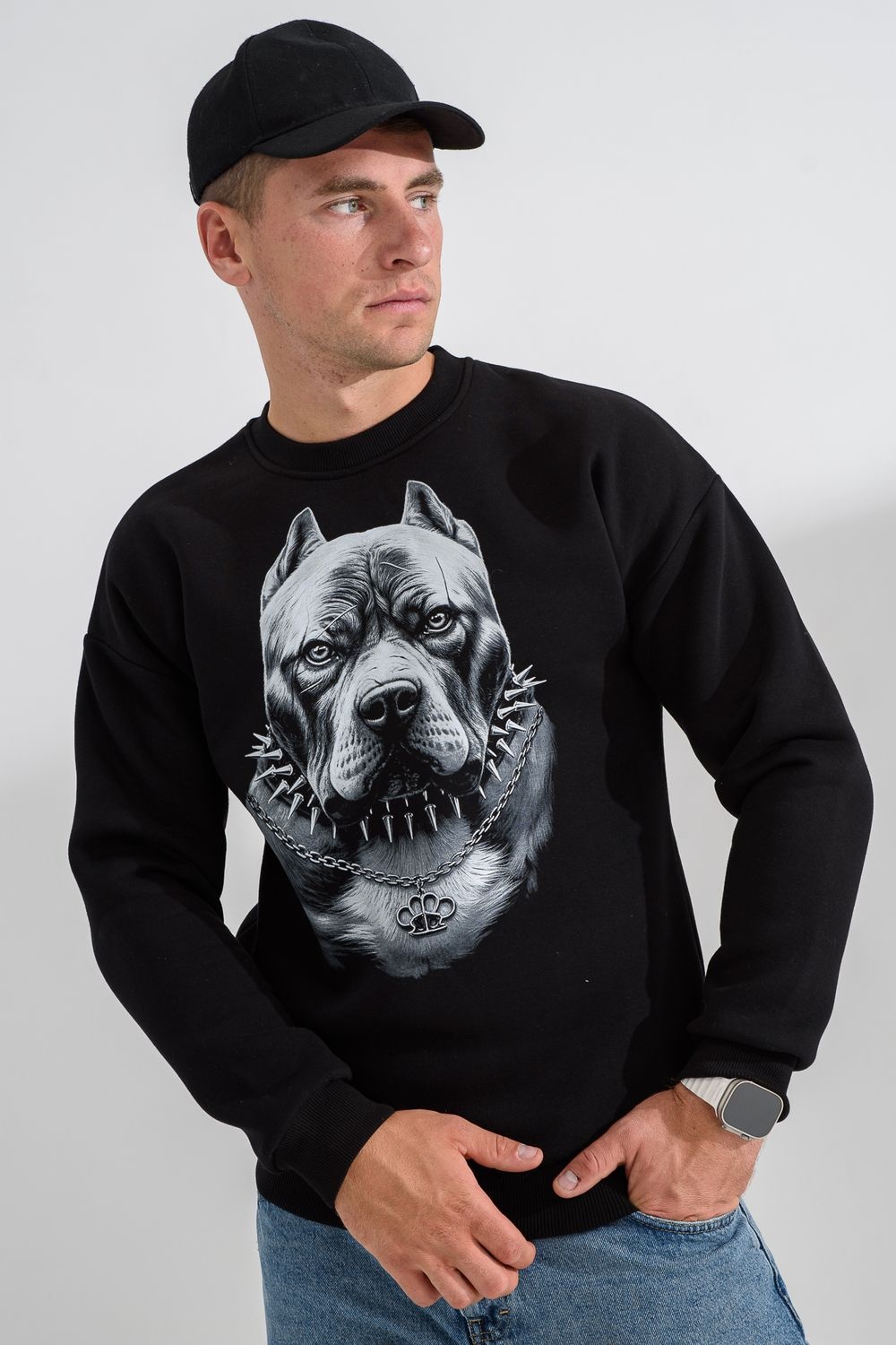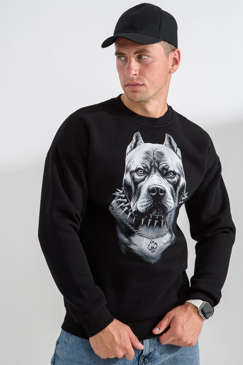 свитшот мужской - черный+питбуль №Н-8559