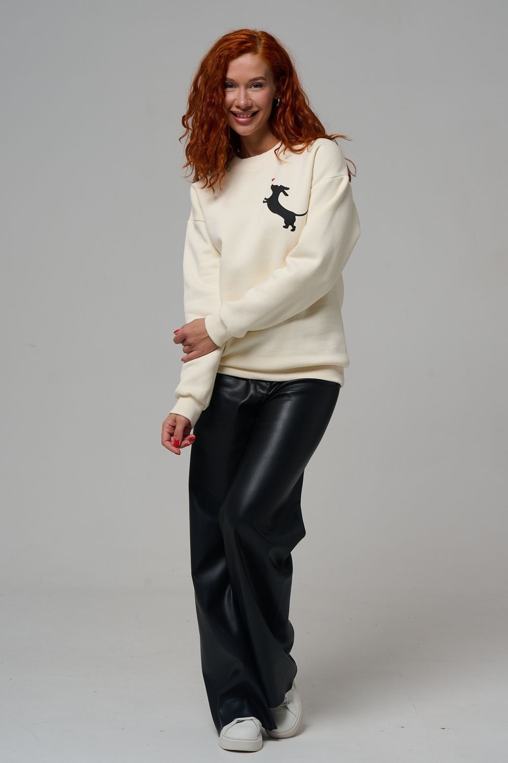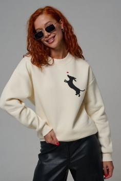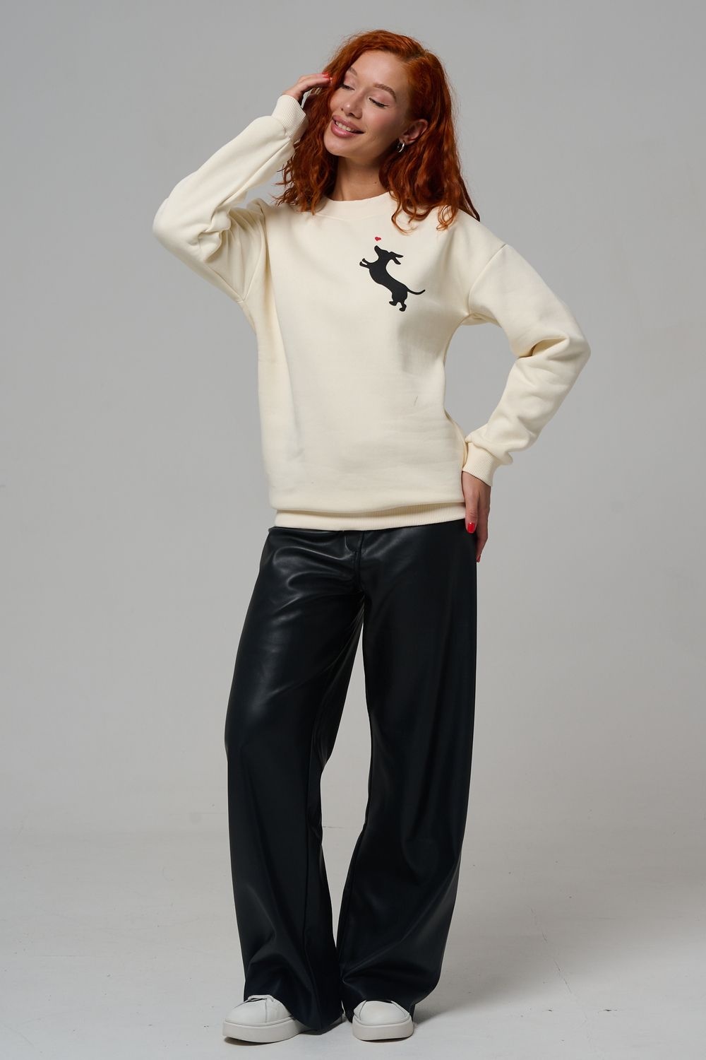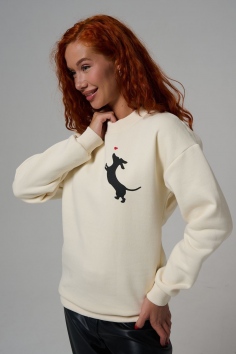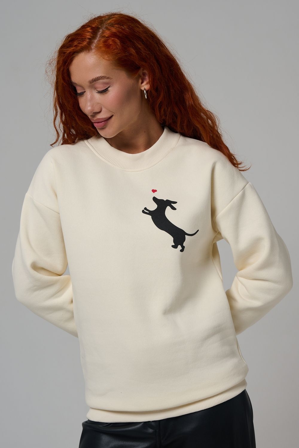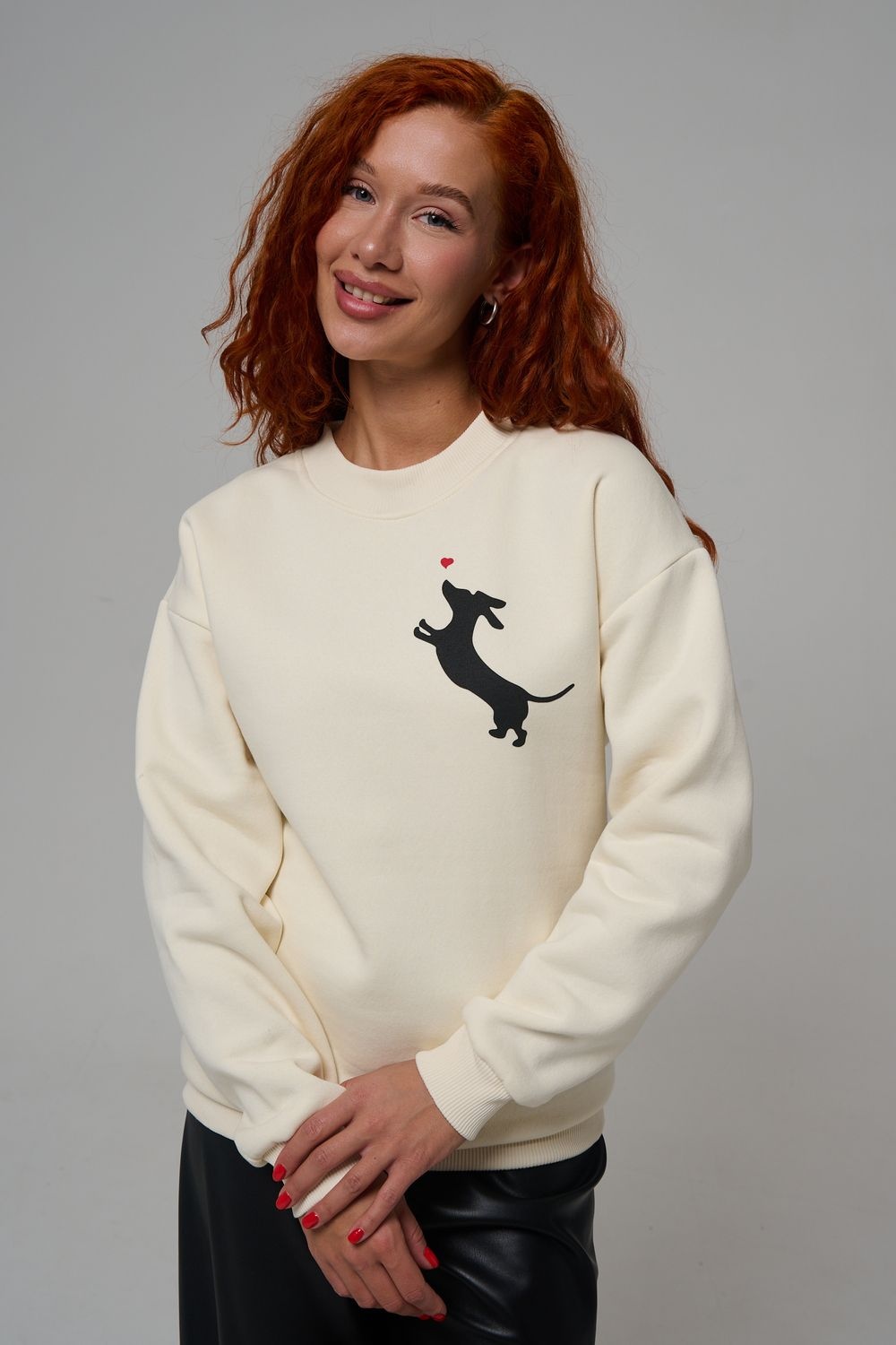 женский свитшот оверсайз - молочный+собачка с сердцем №Н-8576