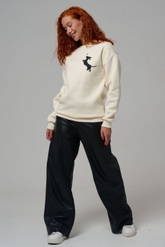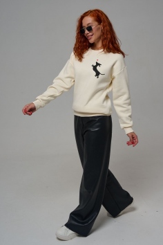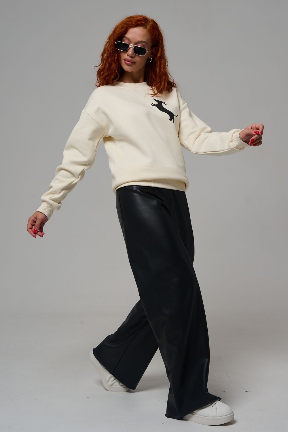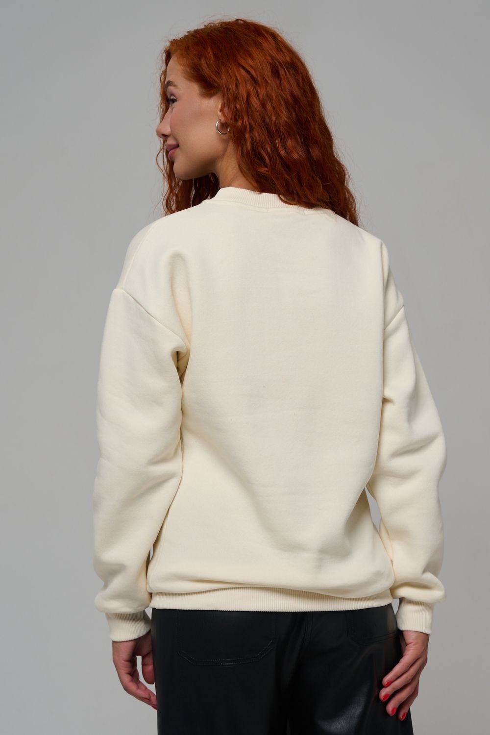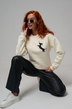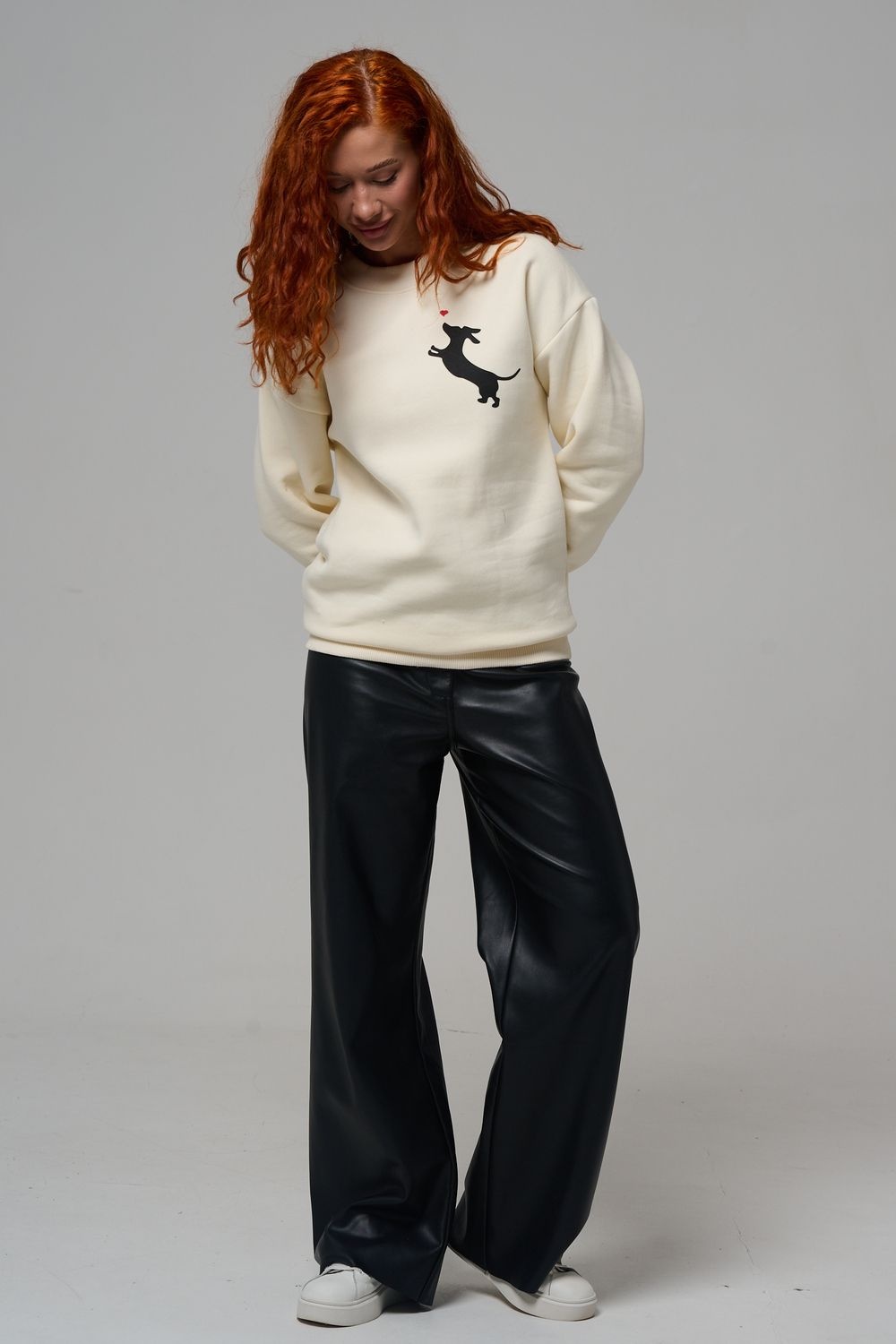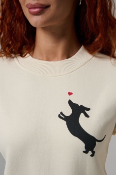 женский свитшот оверсайз - молочный+собачка с сердцем №Н-8576