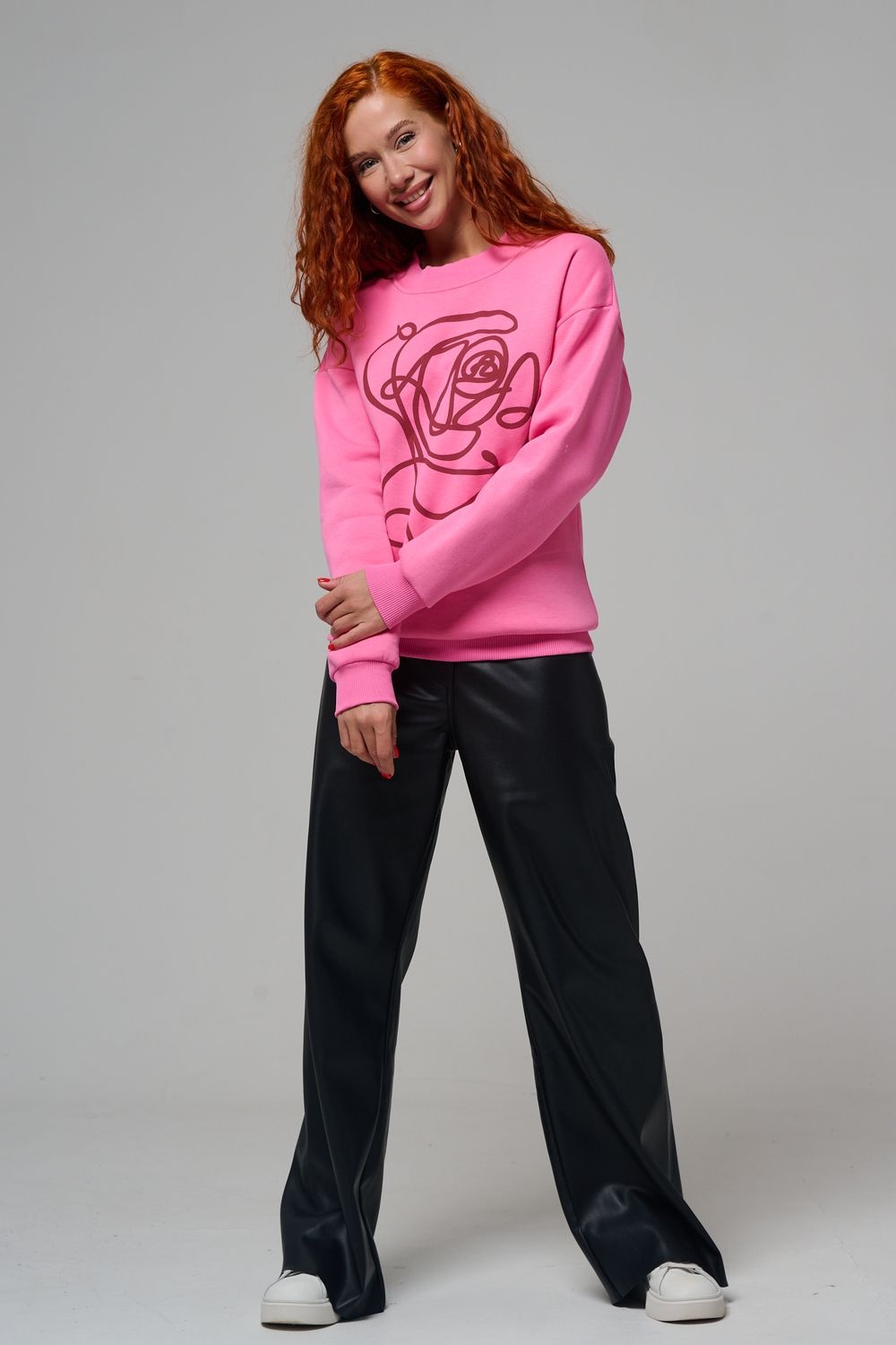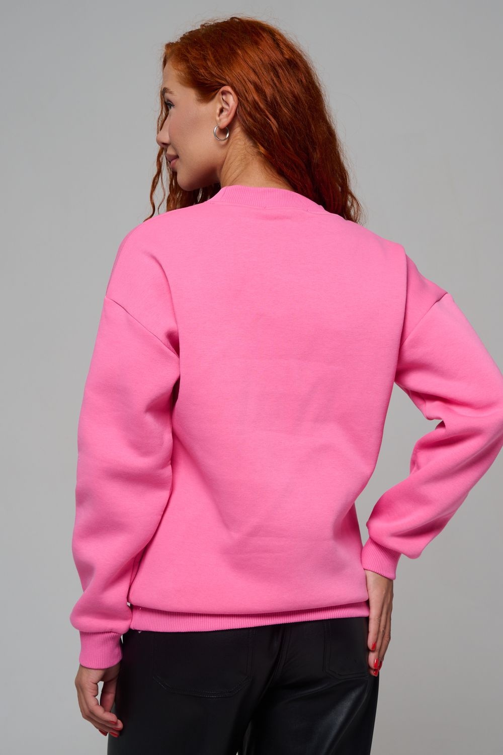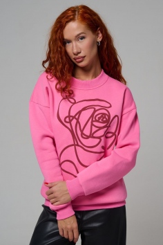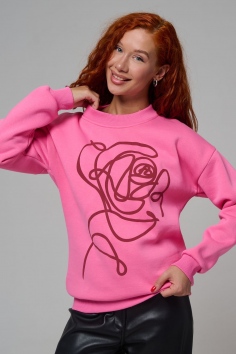 женский свитшот оверсайз - розовый+роза №Н-8577
