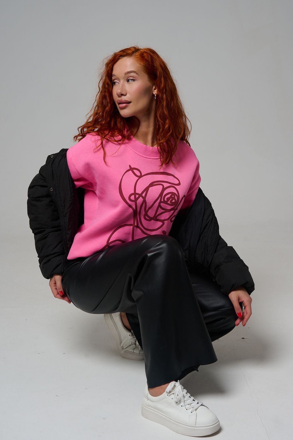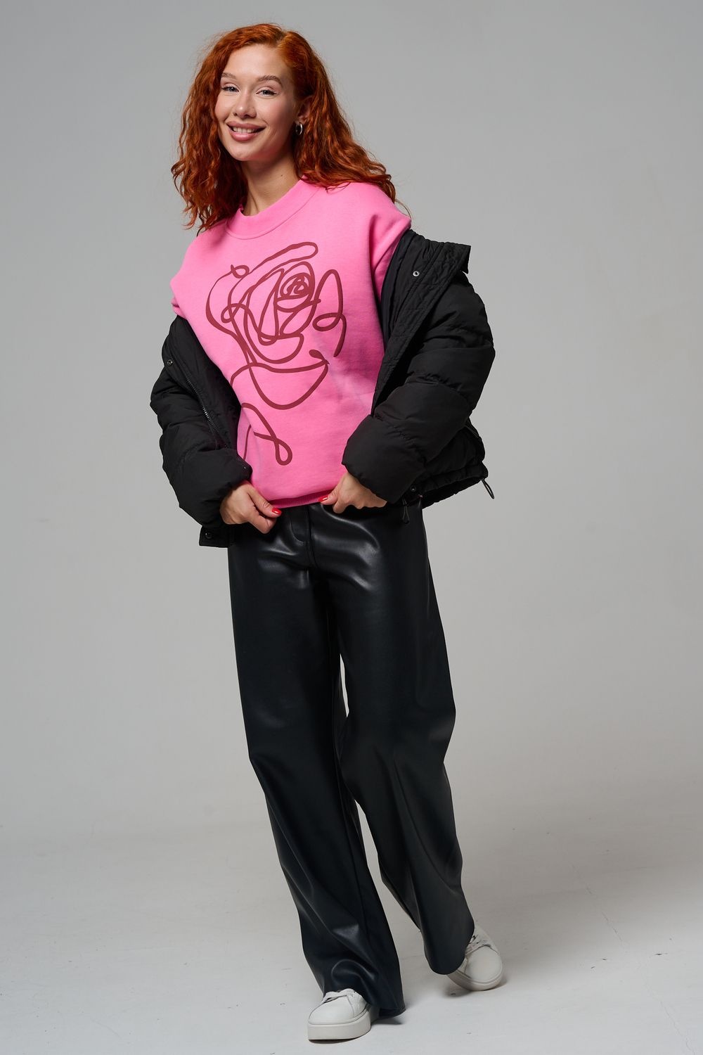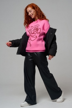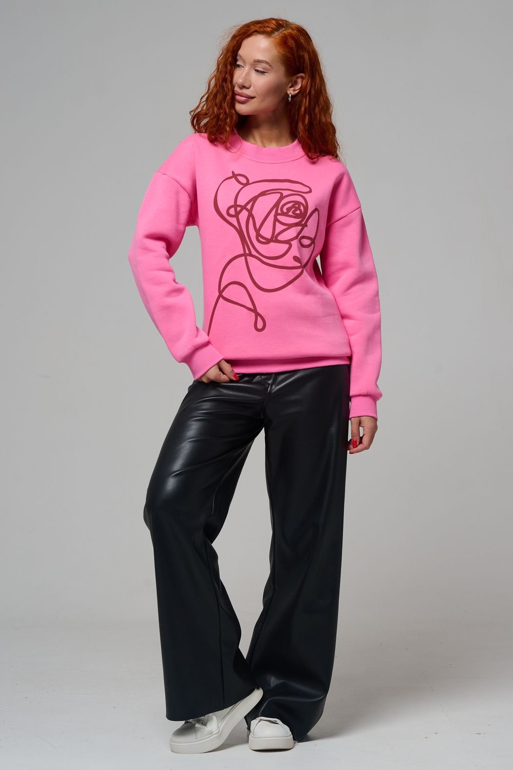 женский свитшот оверсайз - розовый+роза №Н-8577