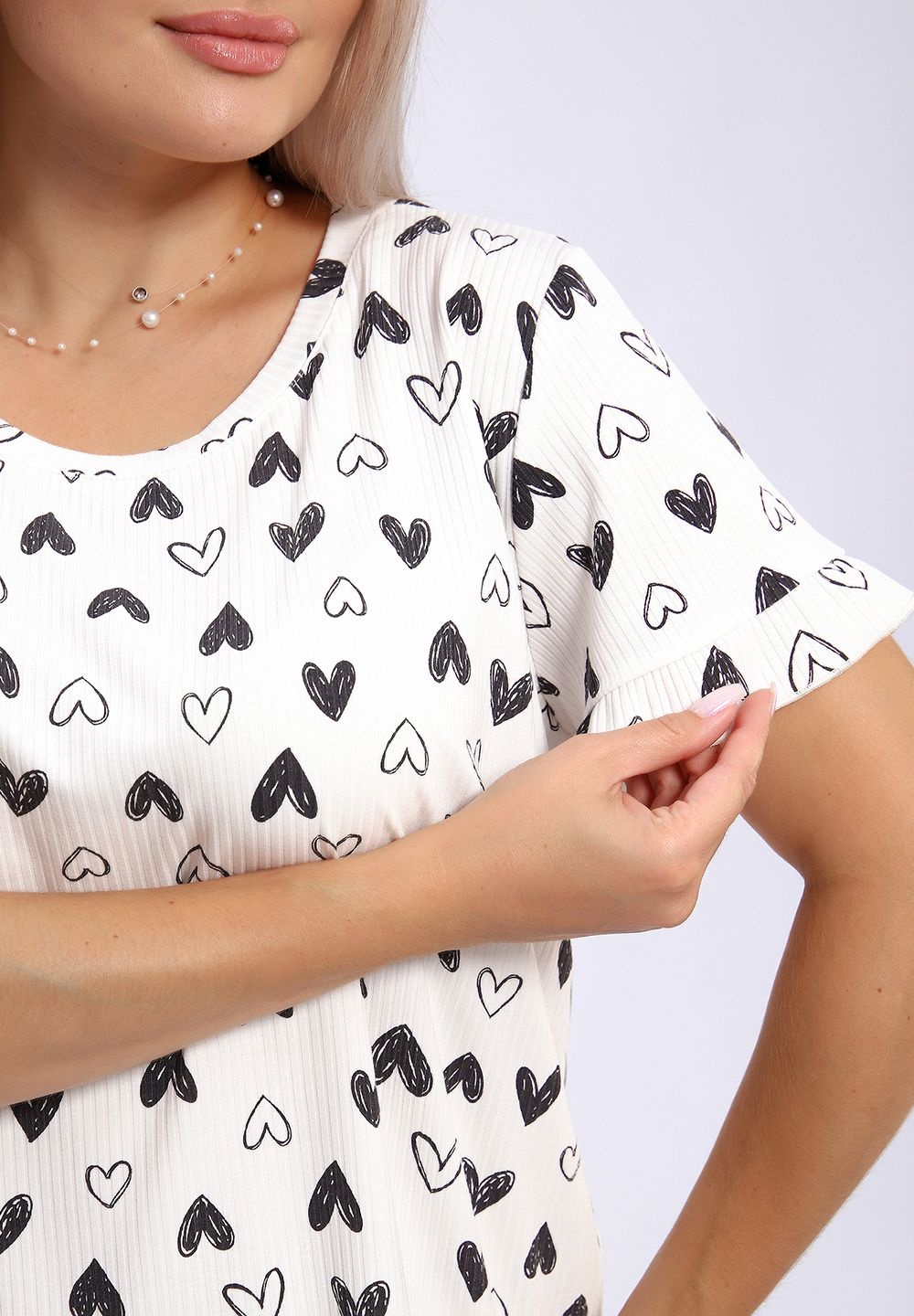 Эта уютная пижама состоит из мягкой футболки и шортов, выполненных из необычного материала, напоминающего лапшу. На принте изображены яркие красные и черные сердечки, создающие игривый и романтичный образ. Дополняет дизайн коричневый леопардовый узор, придающий комплекту стильный и дерзкий вид. Идеальный выбор для комфортных ночных и домашних образов, сочетая оригинальность и уют.