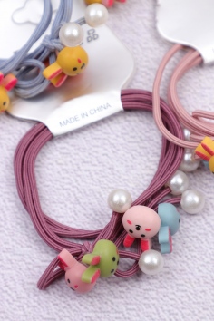 Набор резинок для волос состоит из двух штук одного цвета. Эластичная резинка плотно закрепит волосы, но не перетянет их. Резинка для волос украшена мордочками зайчиков и бусинами.