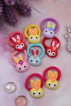 Набор детских резинок для волос состоит из двух штук одного цвета. Резинка украшена зайчиком. Эластичная резинка плотно закрепит волосы, но не перетянет их.