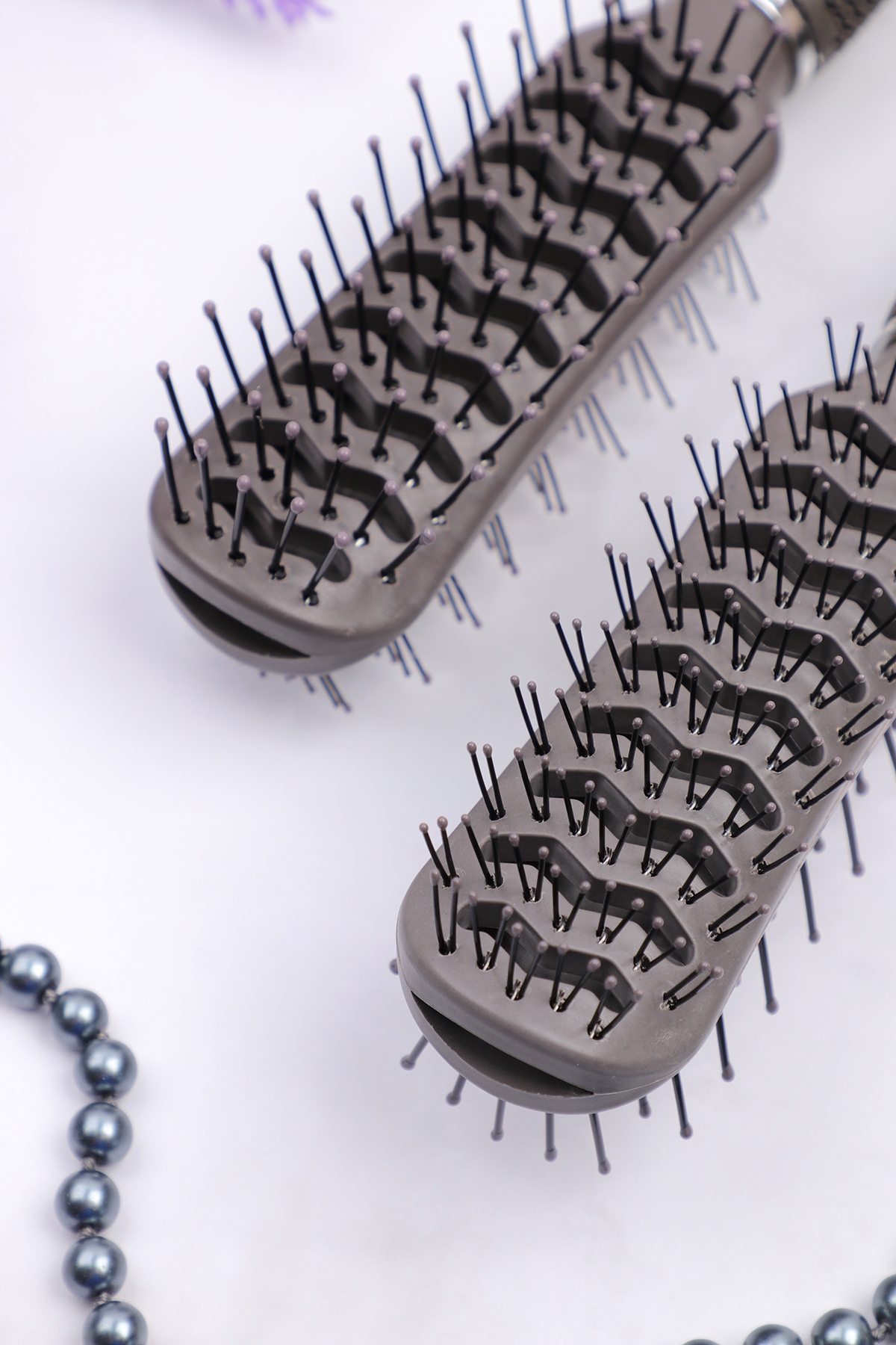 Скелетная двухсторонняя расчёска используется для придания объёма волосам. С одной стороны она имеет длинные зубчики, которые предназначены для расчёсывания волос, а с другой стороны короткие, для поднятия волос у корней, чтобы добиться максимального их объёма или добавить последние завершающие штрихи причёске. Данный вид расчёски помогает распутывать волосы (особенно после мытья), выделить рельефные пряди после завершения укладки, а также разделить волосы на равные по объёму и толщине пряди. Вентиляционный корпус делает продувную расчёску хорошим выбором для всех типов волос, позволяя поддерживать оптимальную температуру и защищать кожу головы от перегрева. Удобная нескользящая прорезиненная ручка, щетина пластиковая с защитными шариками на кончиках зубьев.