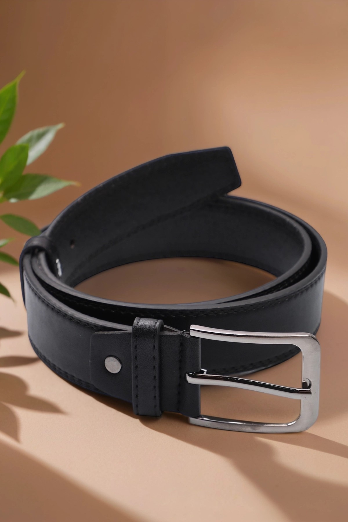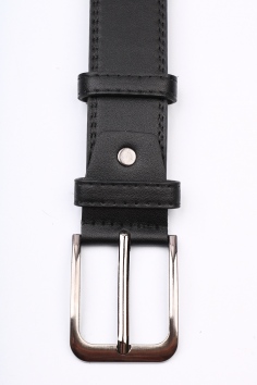 Чёрный мужской ремень из искусственной кожи. Съёмный винт позволяет уменьшить длину ремня, благодаря чему, он отлично сядет на любую фигуру.