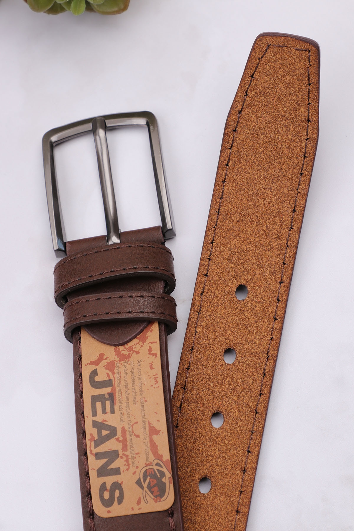 Коричневый мужской ремень из искусственной кожи. Съёмный винт позволяет уменьшить длину ремня, благодаря чему, он отлично сядет на любую фигуру.