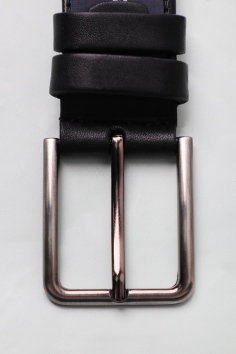 Чёрный мужской ремень из эко-кожи. Съёмный винт позволяет уменьшить длину ремня, благодаря чему, он отлично сядет на любую фигуру.
