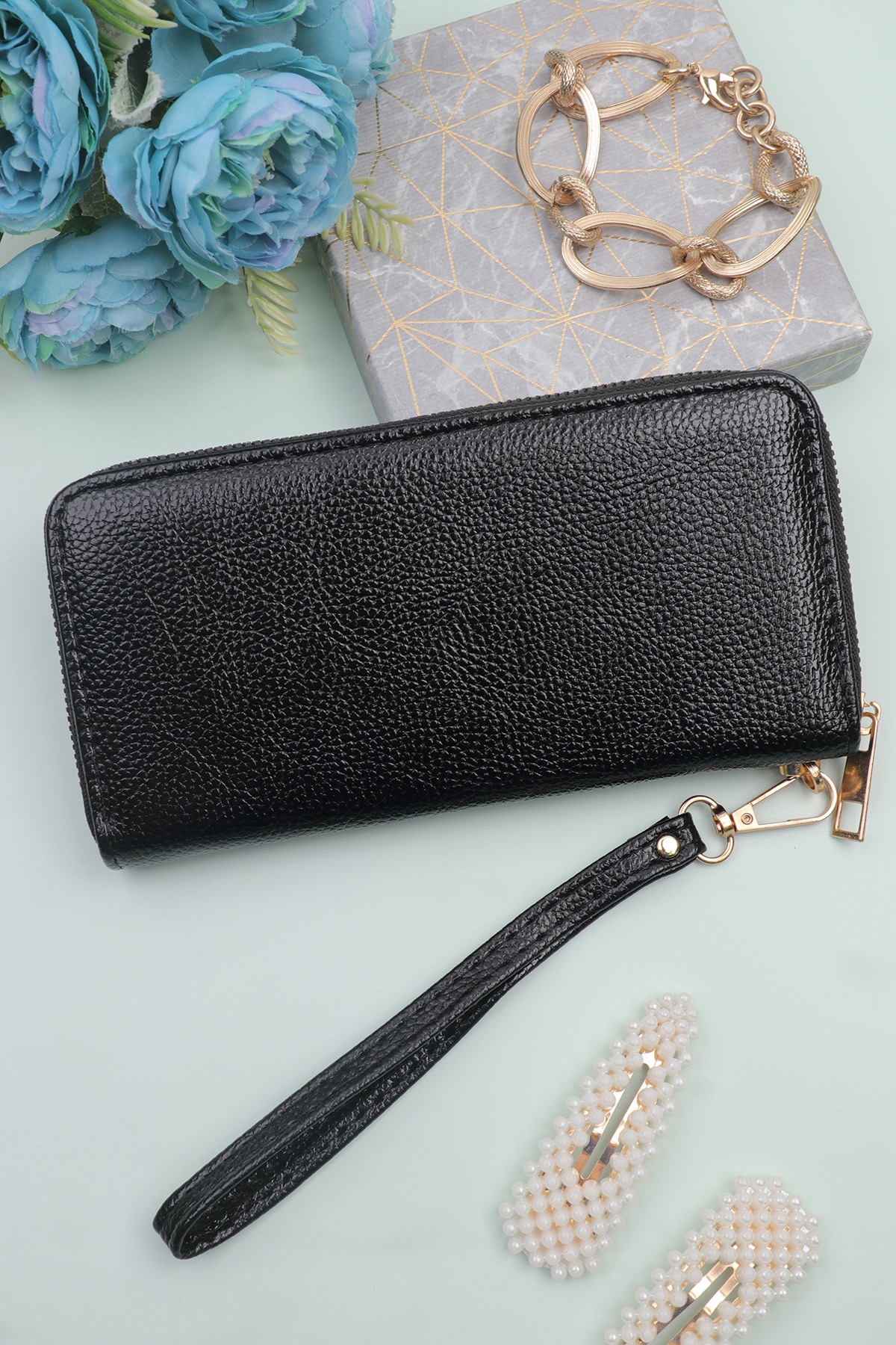 Кошелёк - это отличный аксессуар для хранения карточек, документов, монет и бумажных денег. Кошелёк женский на молнии имеет один отдел и три отделения. Внутри карман на молнии и отделения под визитные карточки. Имеется ремешок на руку.