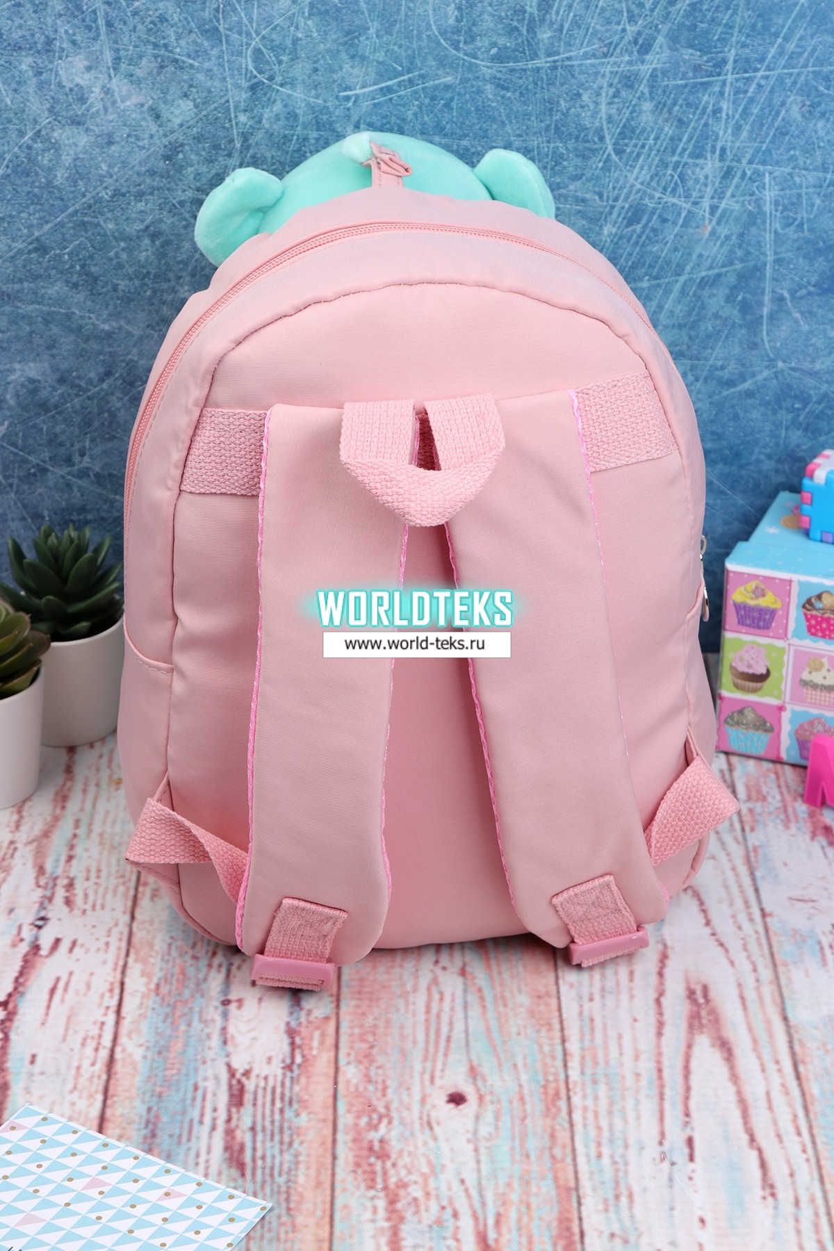 Регулируемые лямки, мягкая спинка. Съёмная игрушка.