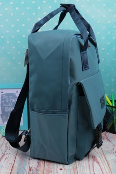 Лямки легко регулируются. Один вместительный основной отдел. Внутри большой карман. Спереди карман на защёлках. Сзади карман на молнии.
