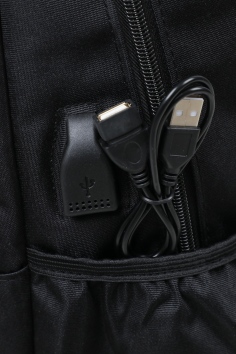 Рюкзак на молнии с двумя отделами. Внутри основного отдела большой карман. Спереди два кармана на молнии. Сзади карман на молнии. По бокам карманы. Предусмотрена дополнительная петля и ручка, чтобы носить рюкзак в руке или вешать на крючок. Лямки легко регулируются. Обычная спинка. Имеются USB провод и USB разъём.