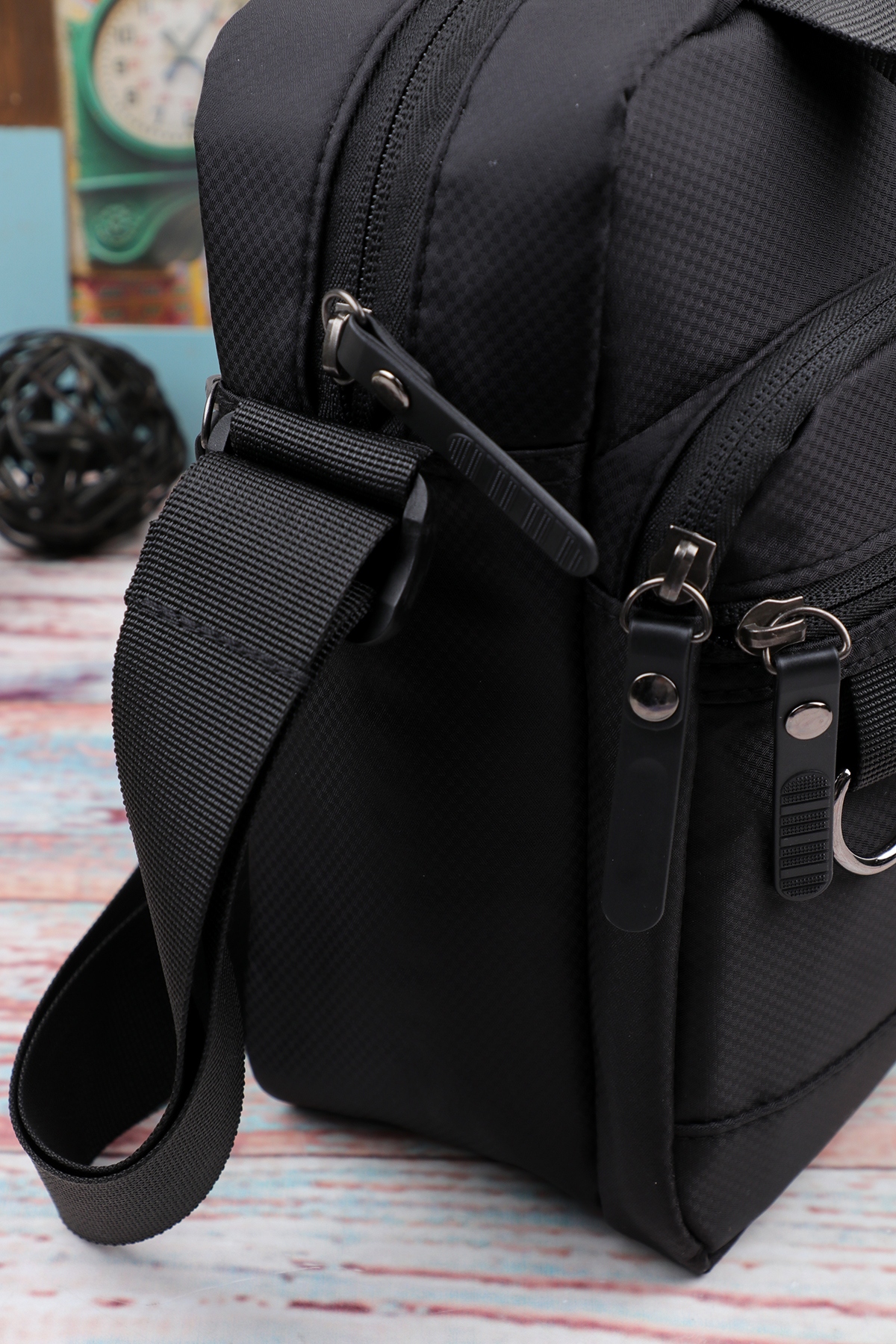 Внутри большой карман на молнии. Спереди два кармана на молнии. Сзади карман на молнии. На сумке несъёмный регулируемый ремешок.