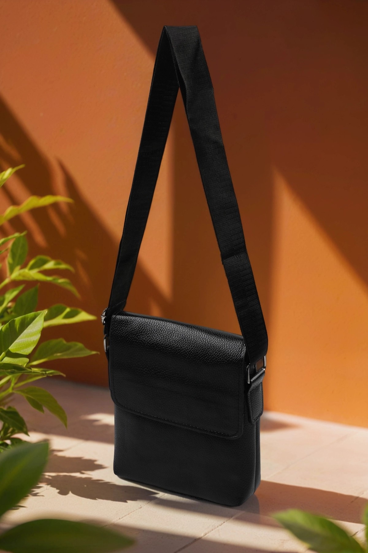 Сумка мужская из искусственной кожи имеет один отдел на магнитах и молнии. Внутри потайной карман на молнии. Сзади карман на молнии. В комплекте несъёмный регулируемый ремешок.