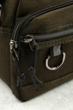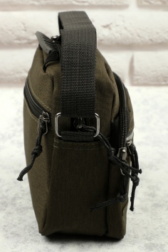 Сумка имеет два отдела. Внутри потайной карман на молнии. Спереди два кармана (на молнии). На сумке несъёмный регулируемый ремешок.