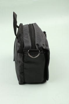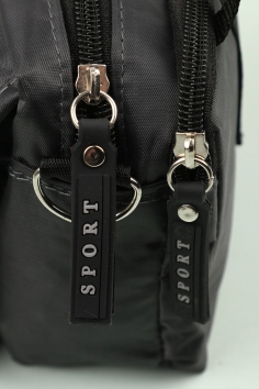 Сумка мужская имеет два отдела на молнии. Спереди два кармана (один на молнии и один на липучке и молнии). Имеется ручка, чтобы носить сумку в руке или вешать на крючок и съёмный регулируемый ремешок.