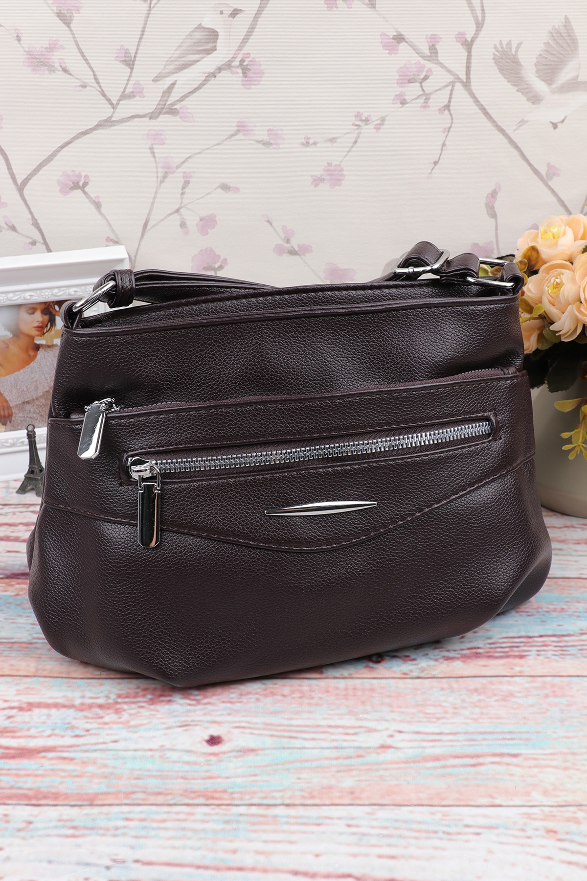 Сумка женская из искусственной кожи имеет один отдел и два отделения. Внутри большой и потайной карманы на молнии, карман под телефон и всякую мелочь.