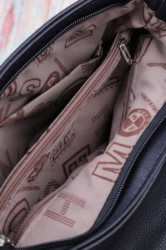 Внутри большой и потайной карманы на молнии, карман под телефон и всякую мелочь. Спереди два кармана на молнии. Сзади карман на молнии. В комплекте несъёмный регулируемый ремешок.
