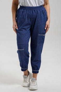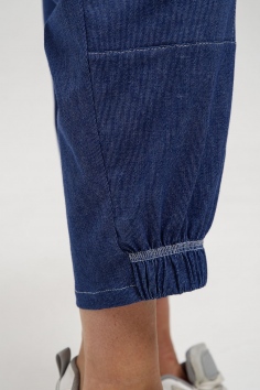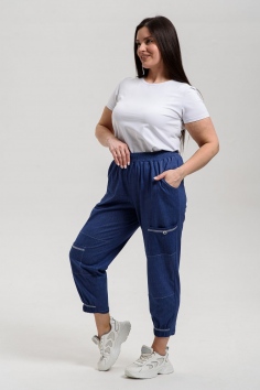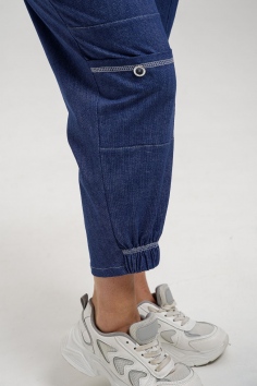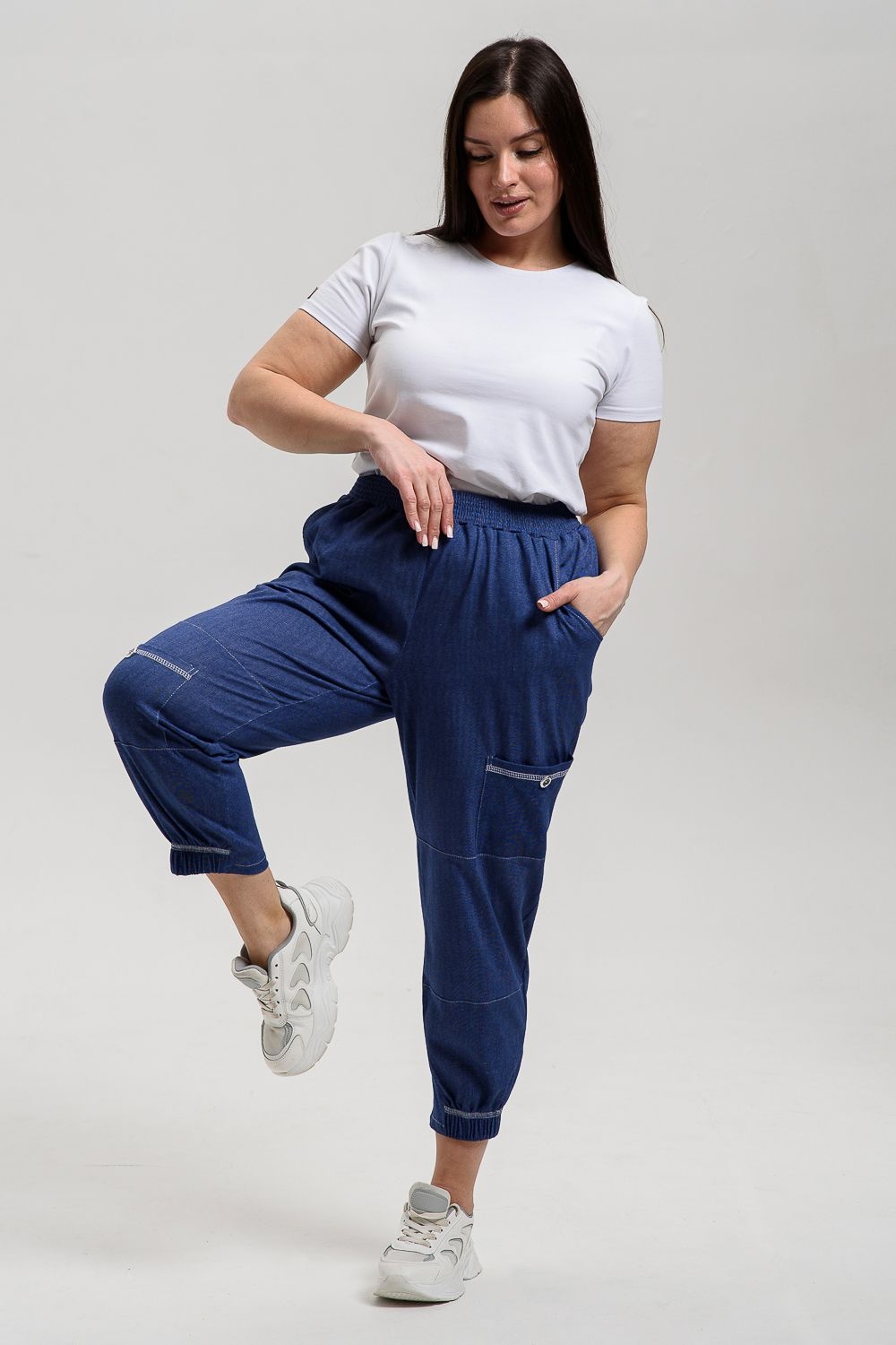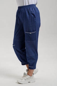 Брюки женские, 'бананы'. На передней части брюк внутренние карманы. Также имеются два накладных кармана с пуговицей, Один в верхней части брюк, другой на средней части брюк. Низ передней половинки брюк на резинке. Пояс прострочен на многоигольной машине.