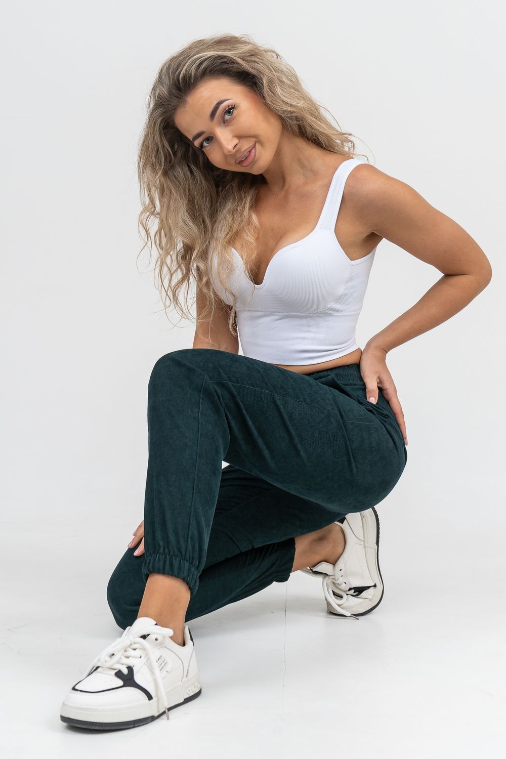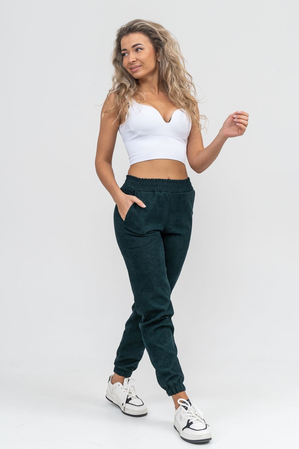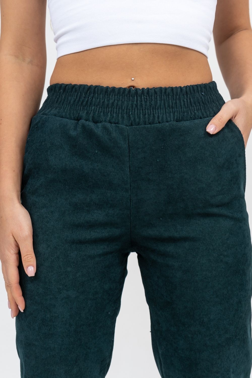 Женские стильные брюки - бананы выполнены из качественного вельвета, что увеличивает долговечность изделия, придавая ему прочность. Вельвет практичен, прост в уходе и использовании. Обладает высокой износоустойчивостью, прочностью, не деформируется и не вытягивается, приятен к телу, не мнётся и не выцветает. Материал гигроскопичен, хорошо пропускает воздух и сохраняет тепло. Высокая посадка, вместительные боковые карманы, удобный и качественно обработанный на специальной машине пояс - резинка позволит Вам чувствовать себя максимально комфортно. Такой фасон брюк формирует выразительный женственный силуэт, скрывает мелкие недостатки фигуры и гармонизирует пропорции. Всё это образует идеальное решение для лука на каждый день, проведённый вами дома, на работе, в школе и на отдыхе.